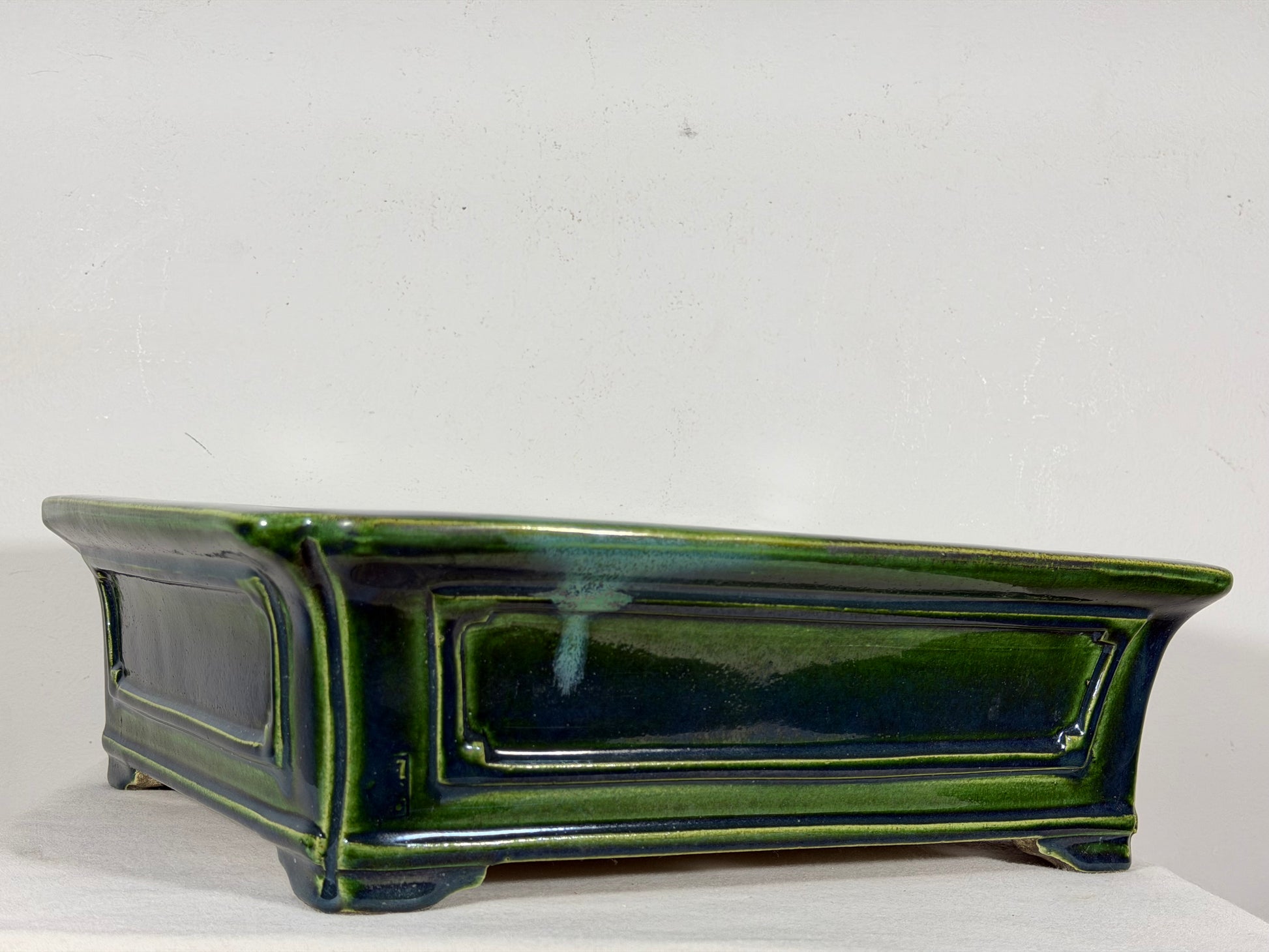 New Japanese Tokoname Glazed Rectangular Bonsai Pot Mazan Terahata - has corner cut