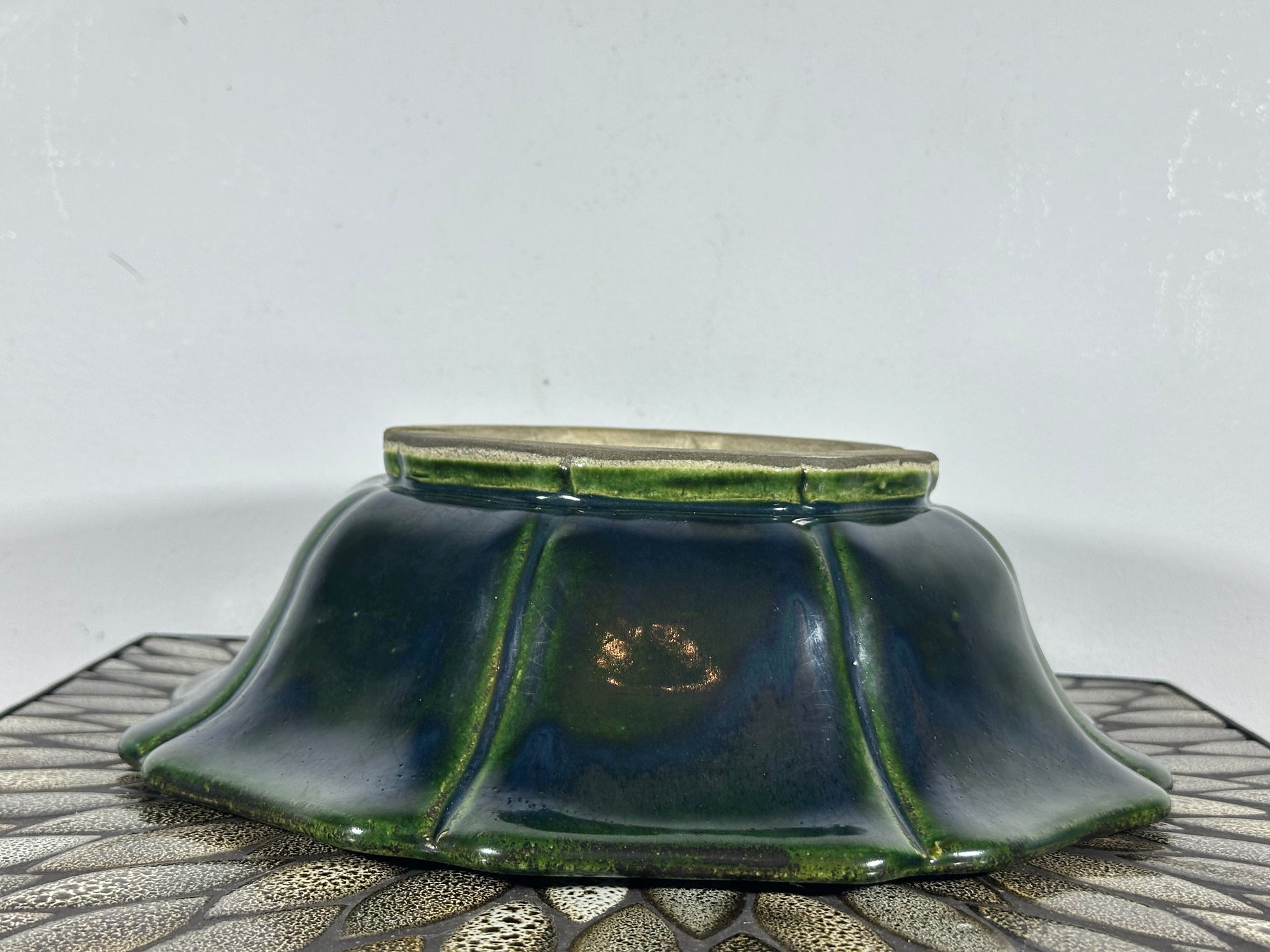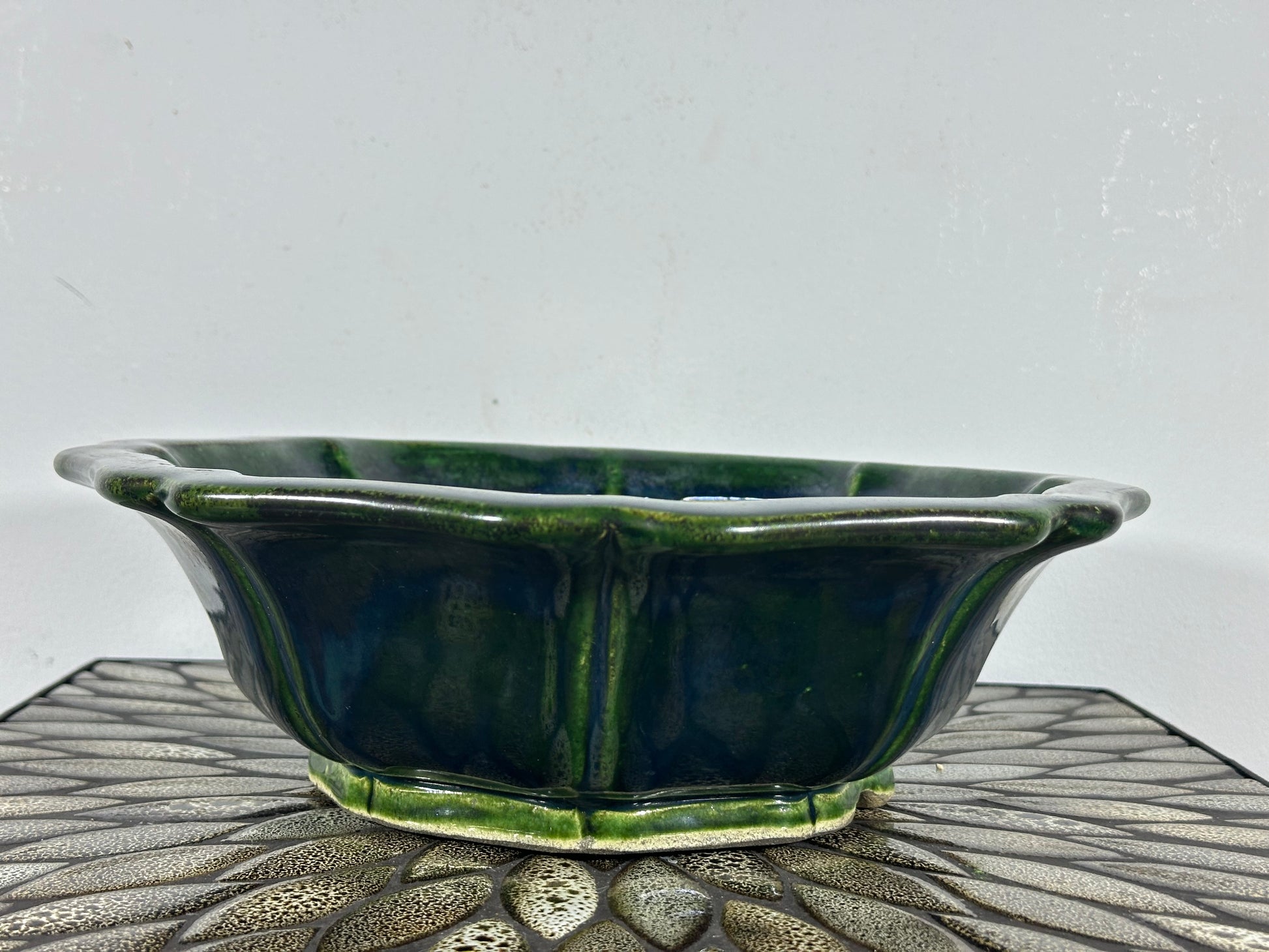 New Japanese Tokoname Bonsai Pot Rinka Style Mazan Terahata - Nice Green Glazed
