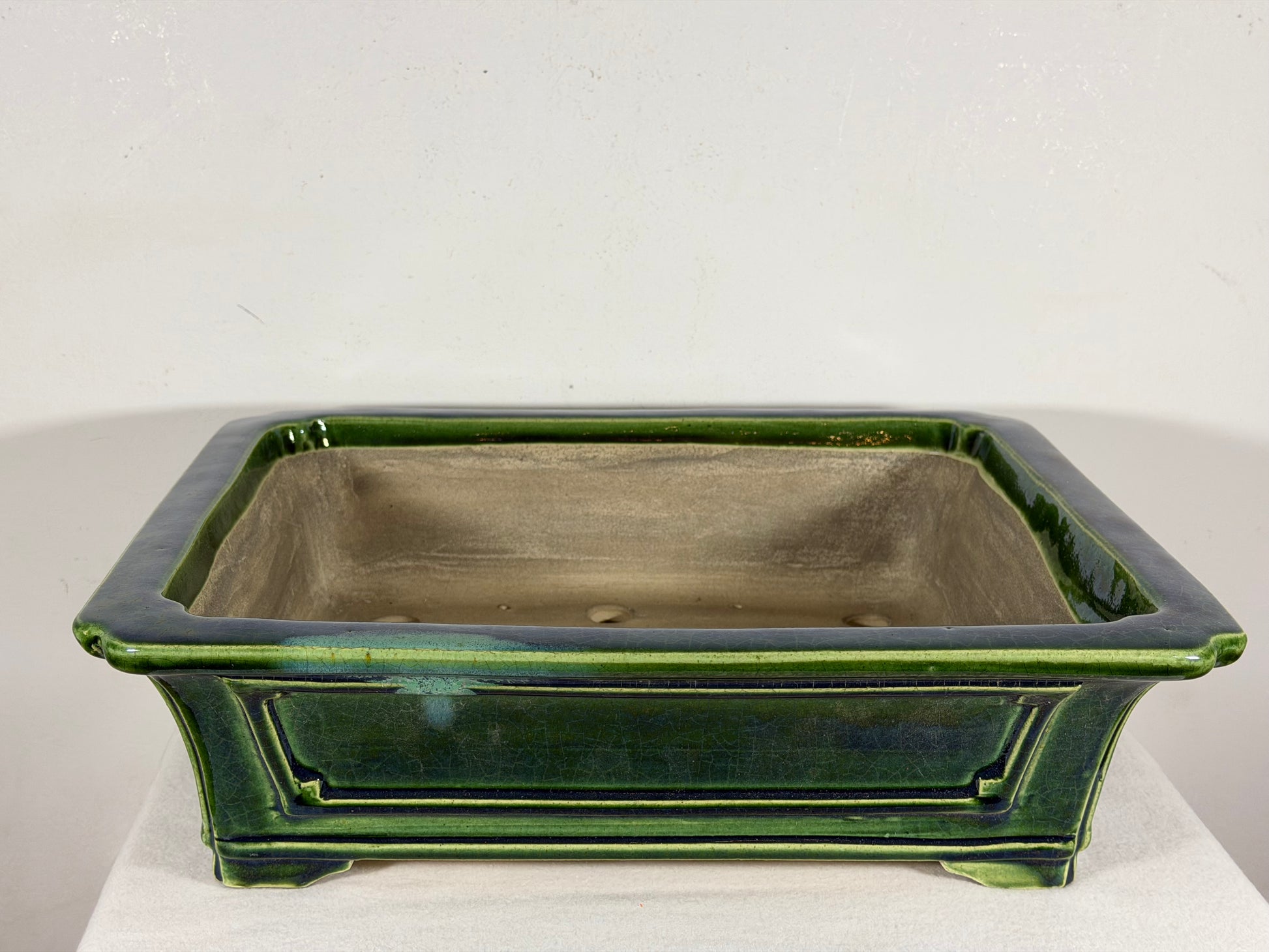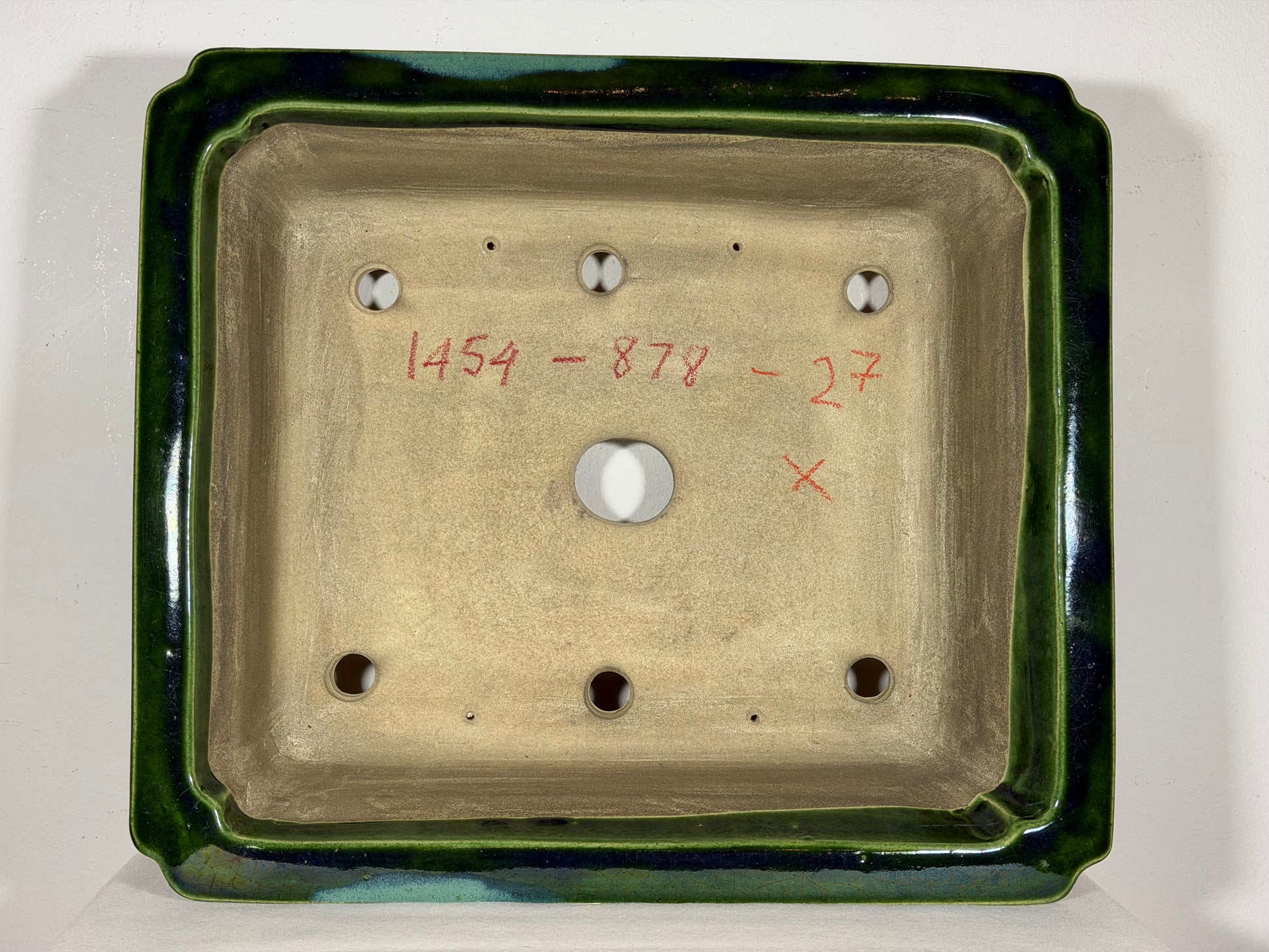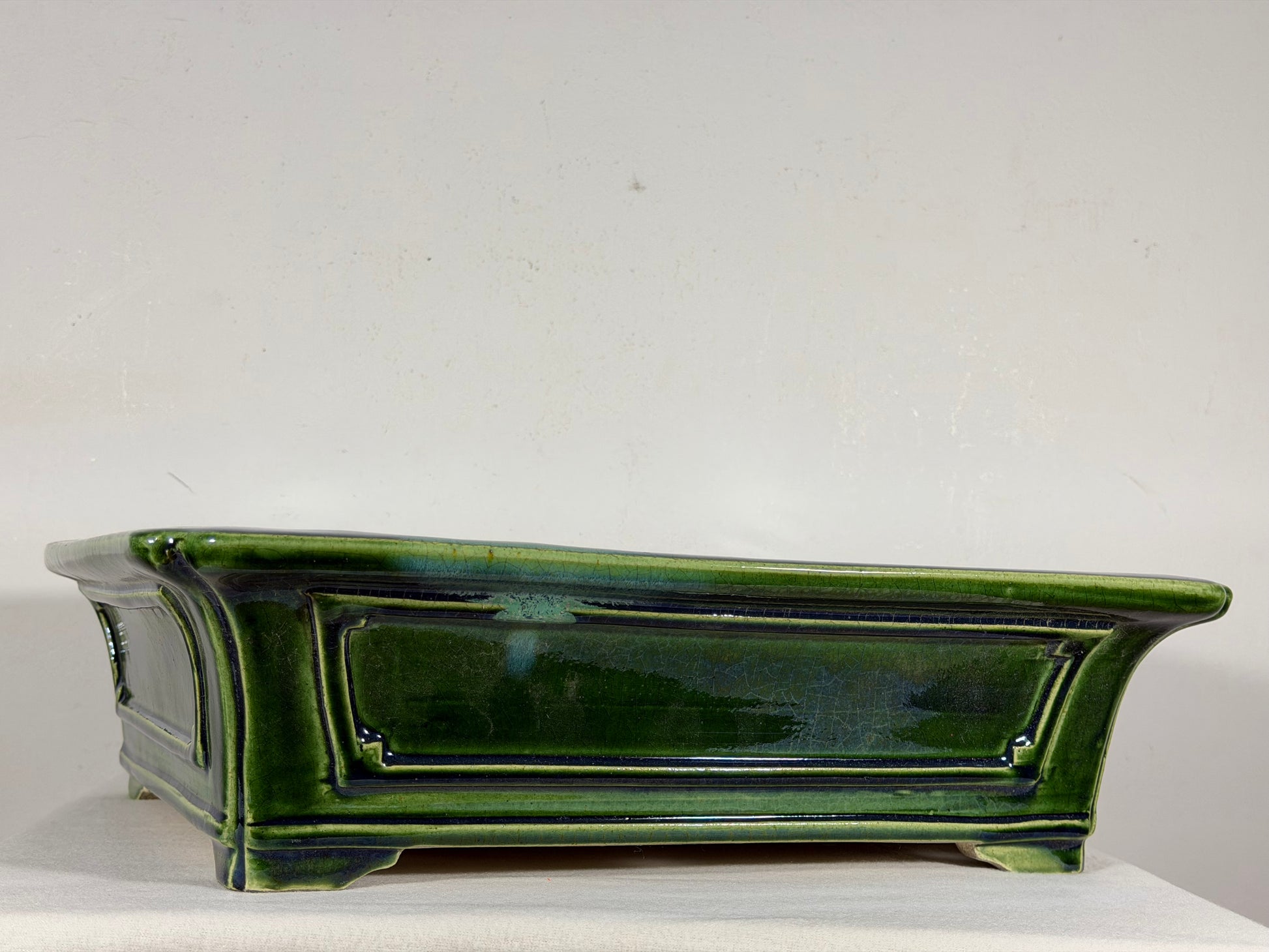 New Japanese Tokoname Glazed Rectangular Bonsai Pot Mazan Terahata - 15.5” By 13.5”