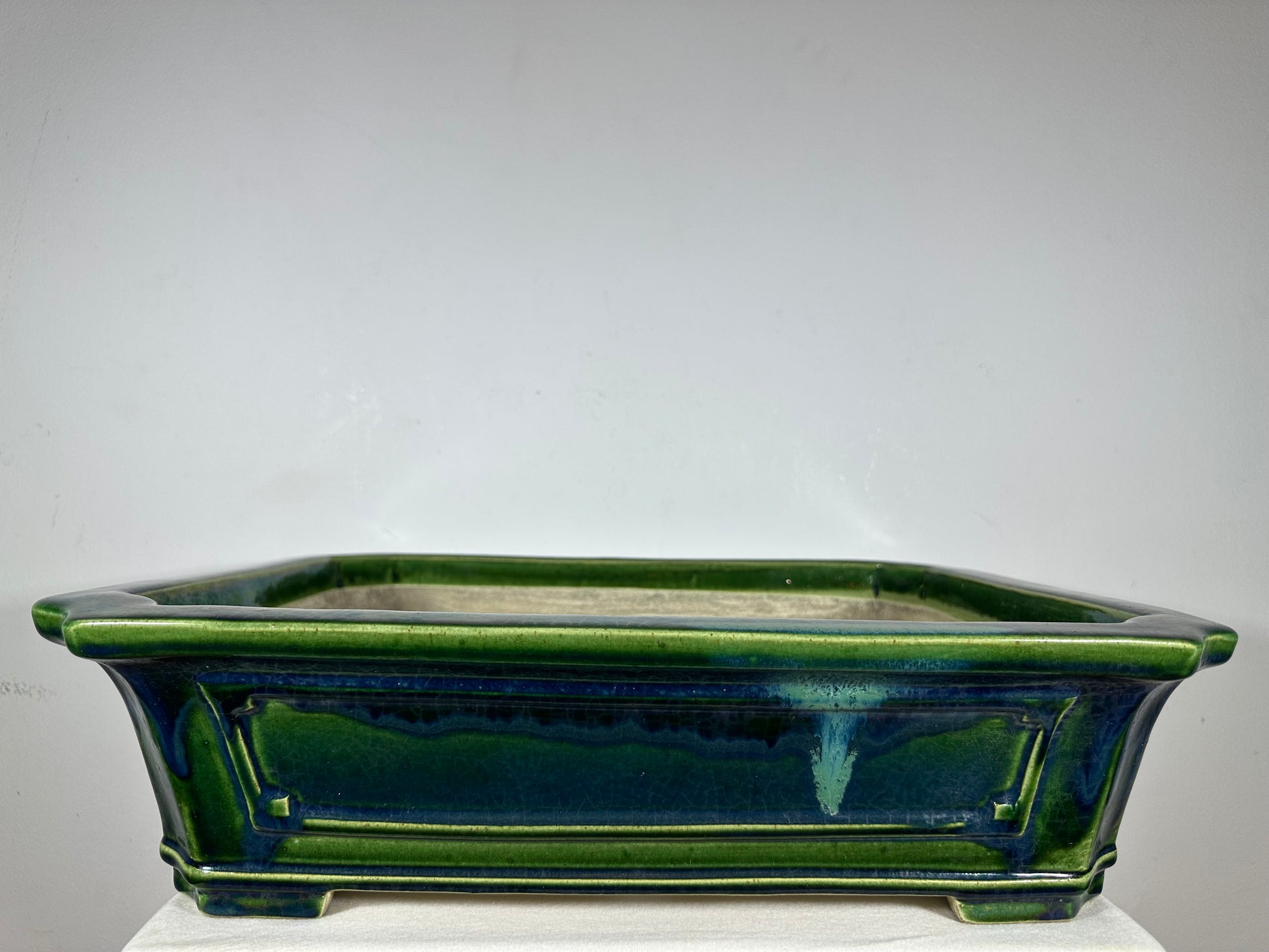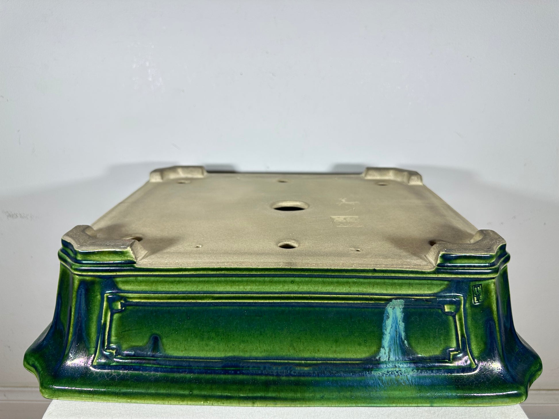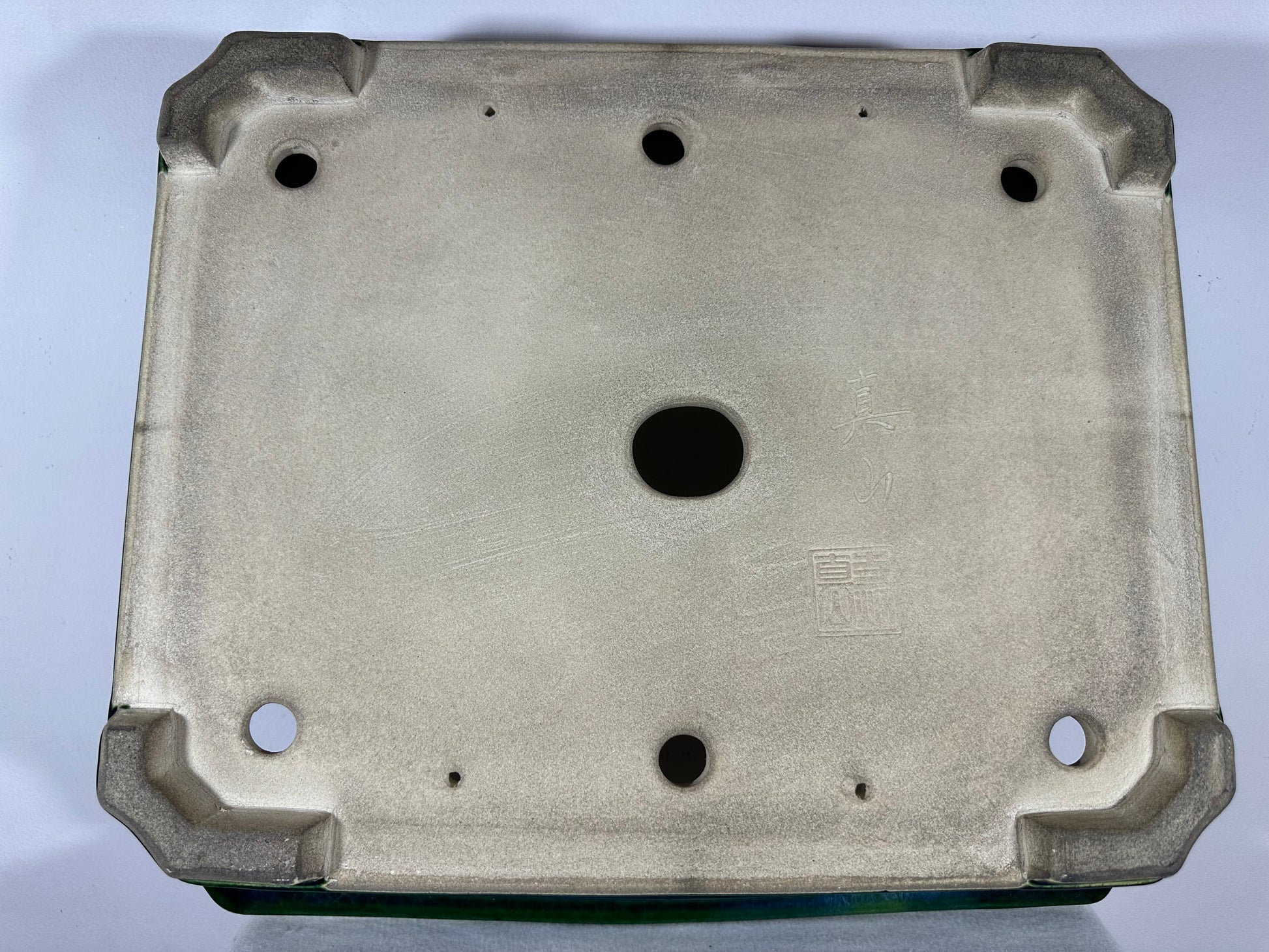 New Japanese Tokoname Glazed Rectangular Bonsai Pot Mazan Terahata - 20.25” By 17”
