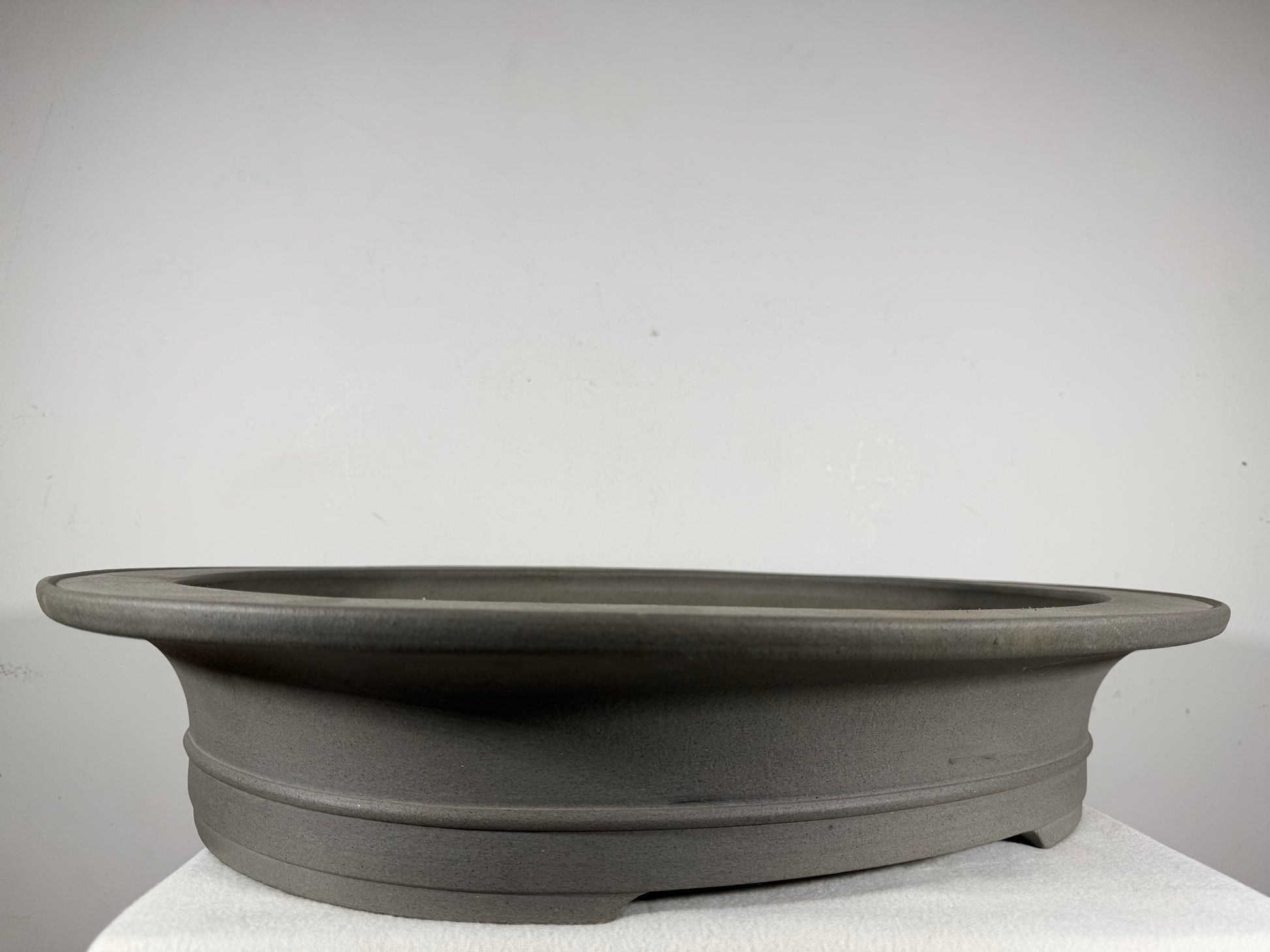 New Japanese Tokoname Unglazed Oval Bonsai Pot Kisen - has thick lip.