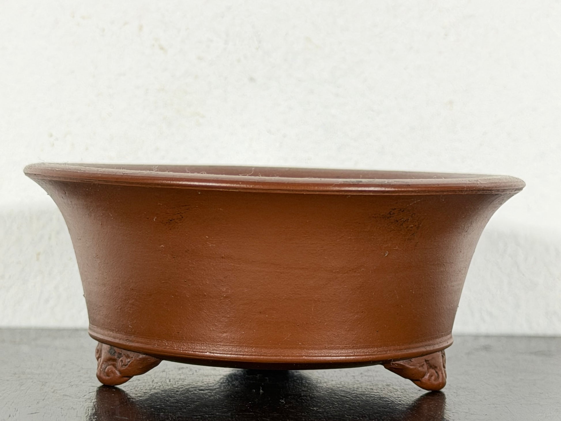 New Japanese Tokoname Unglazed Round Bonsai Pot Bigei by Mr. HIRATA ATSUMI - has cloud foot
