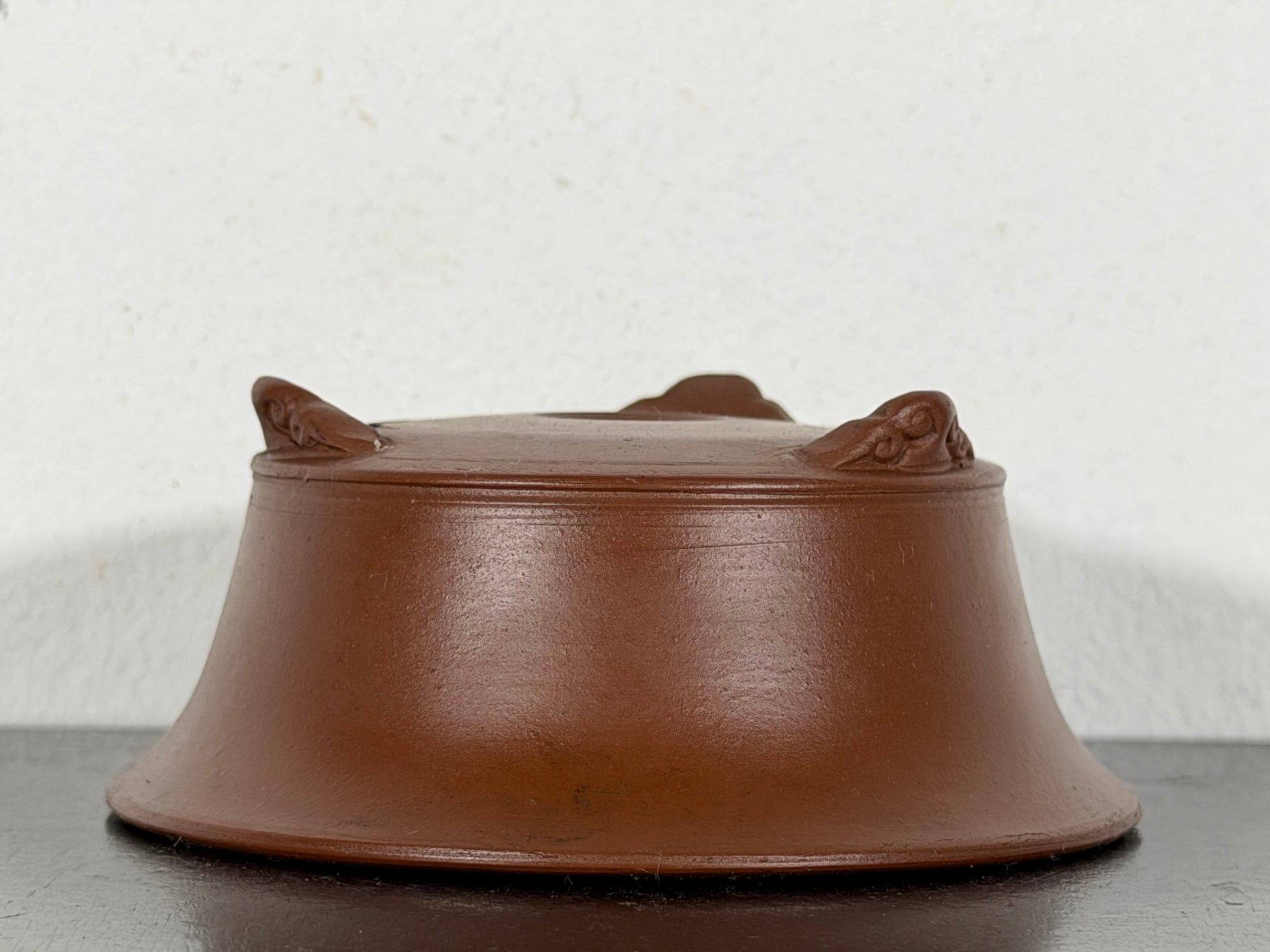 New Japanese Tokoname Unglazed Round Bonsai Pot Bigei by Mr. HIRATA ATSUMI - has cloud foot