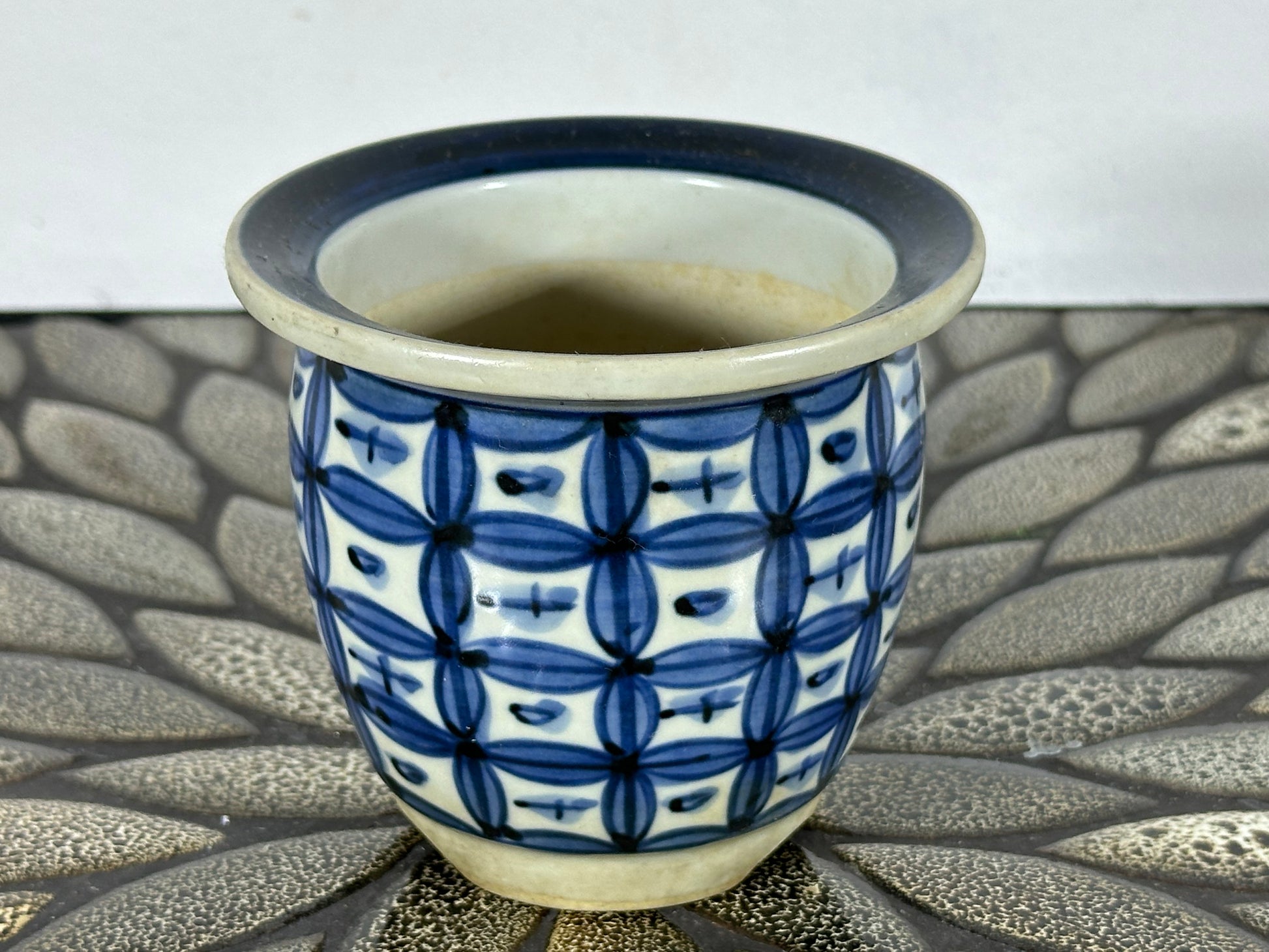 Preowned Japanese Tokoname Glazed Cascade Round Bonsai Pot Katu - 4” By 3.5”
