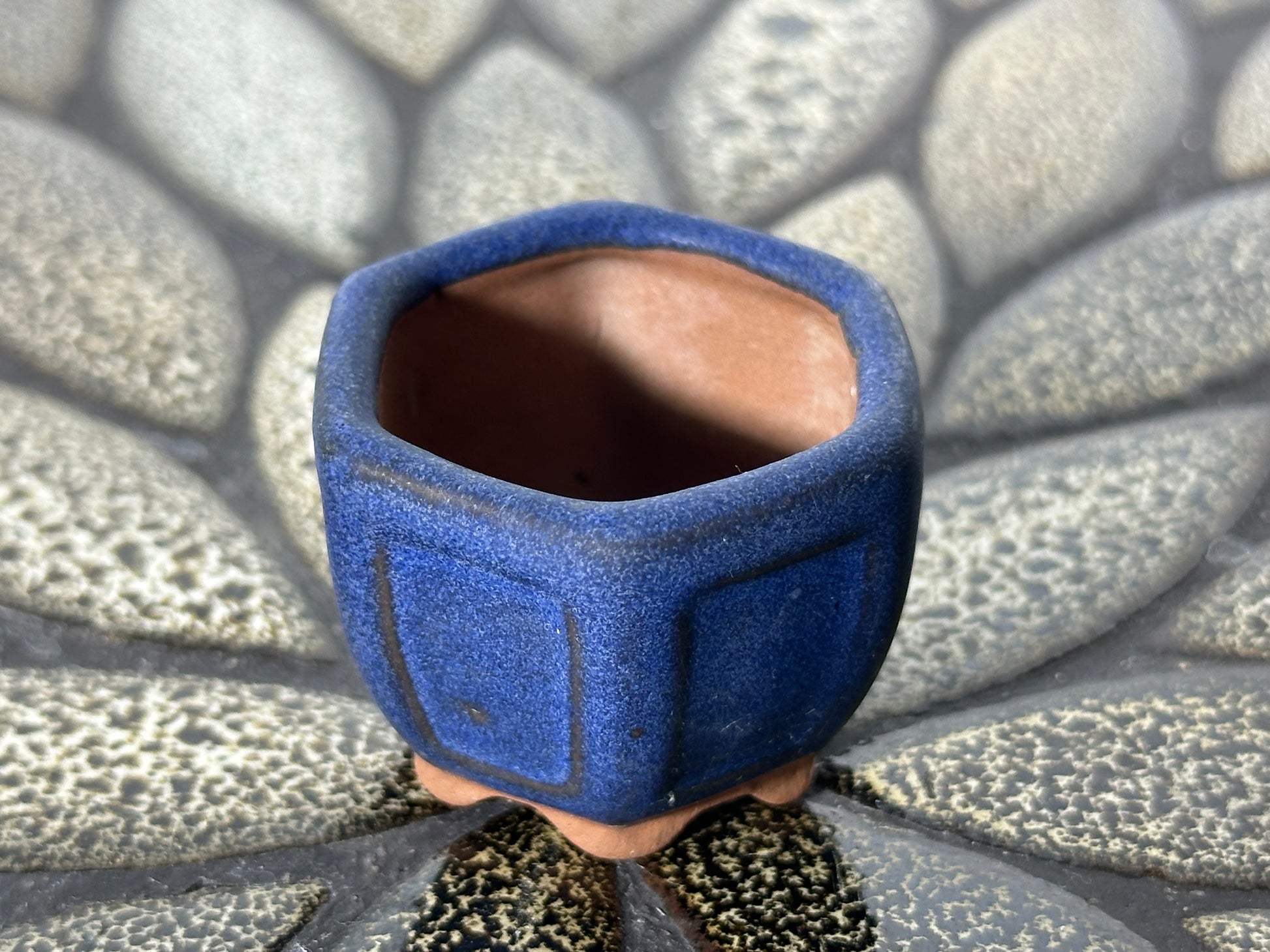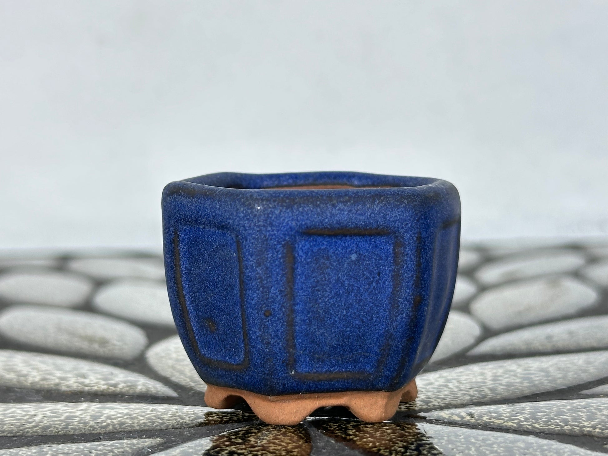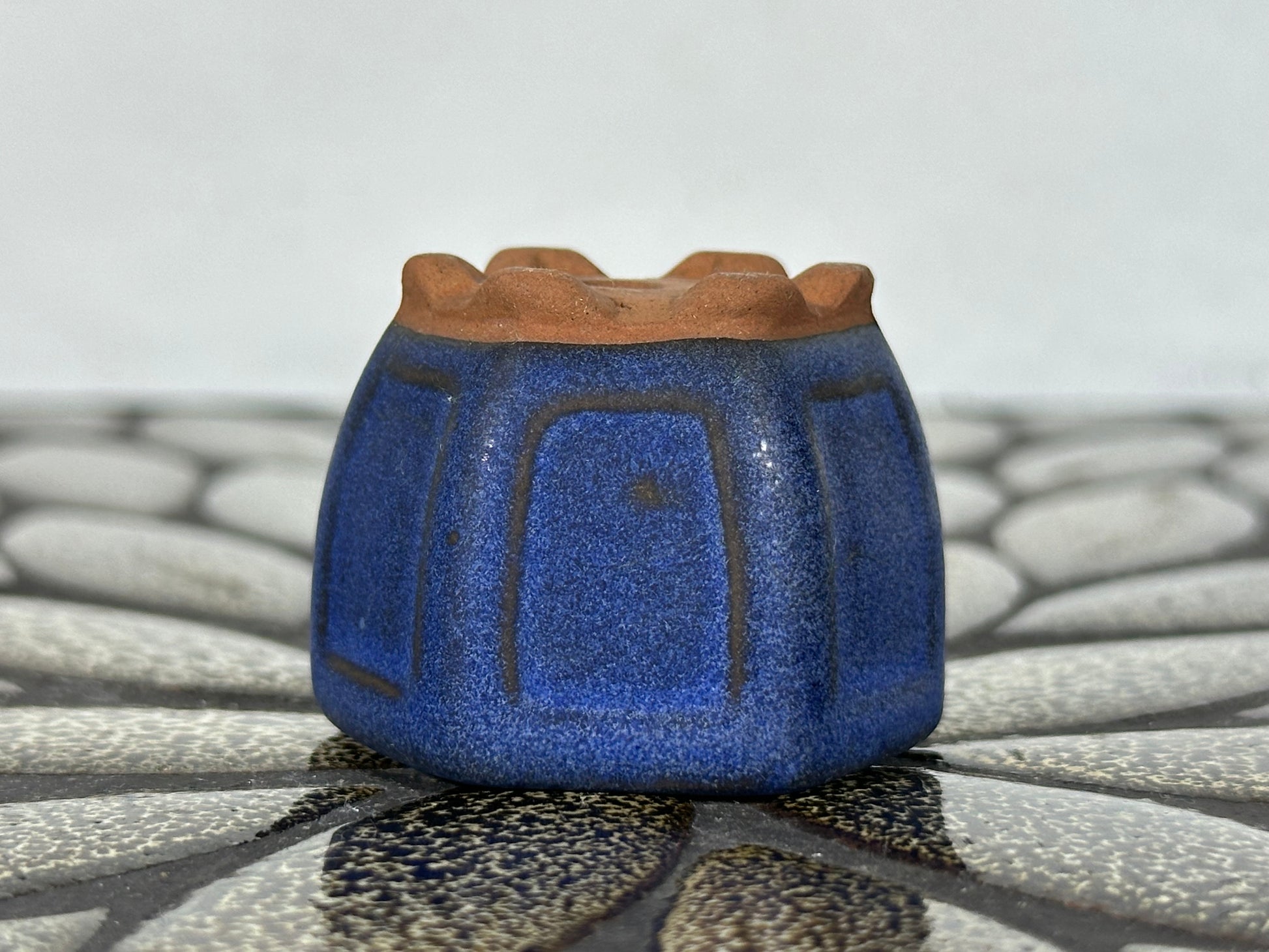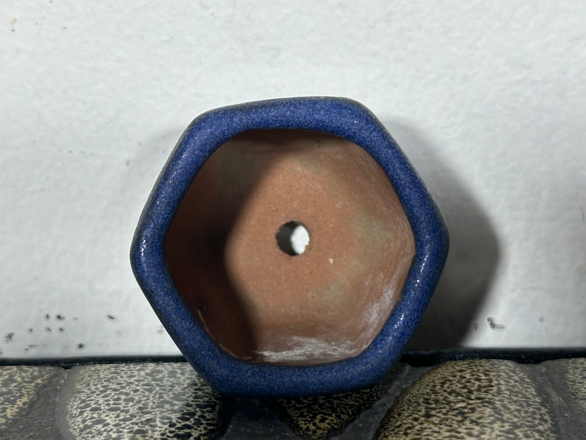Preowned Japanese Tokoname Glazed Hexagon Bonsai Pot - 1 5/8” By 1.25”