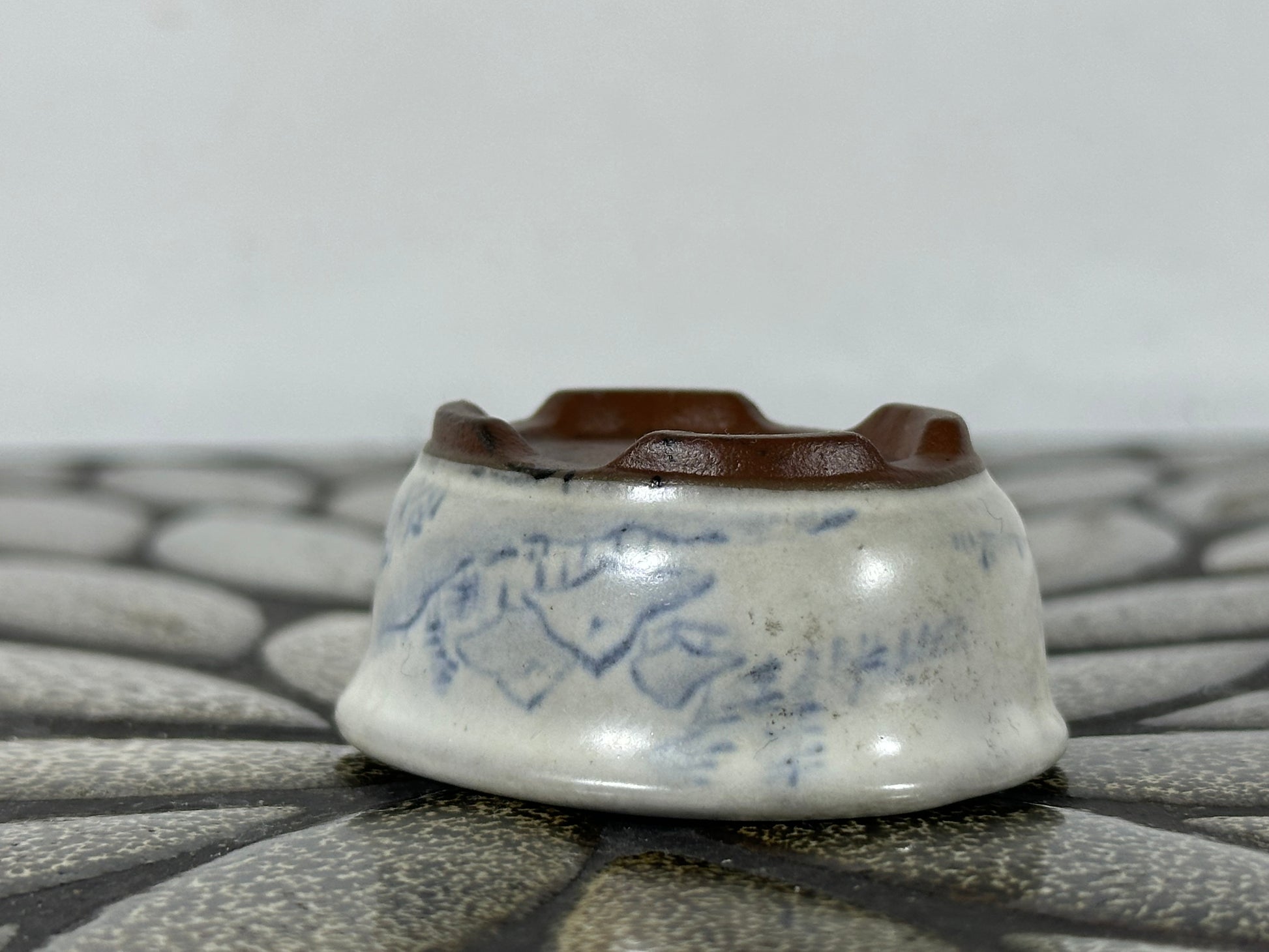 Preowned Japanese Tokoname Glazed Oval Bonsai Pot with Stamp - 2” By 1.75”