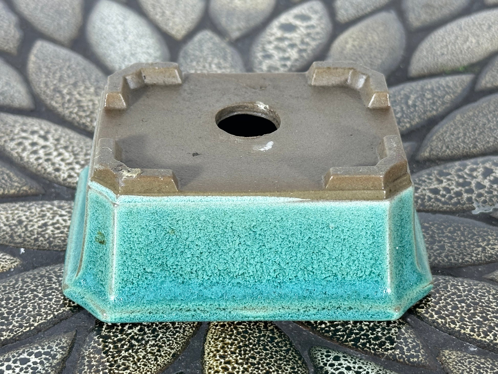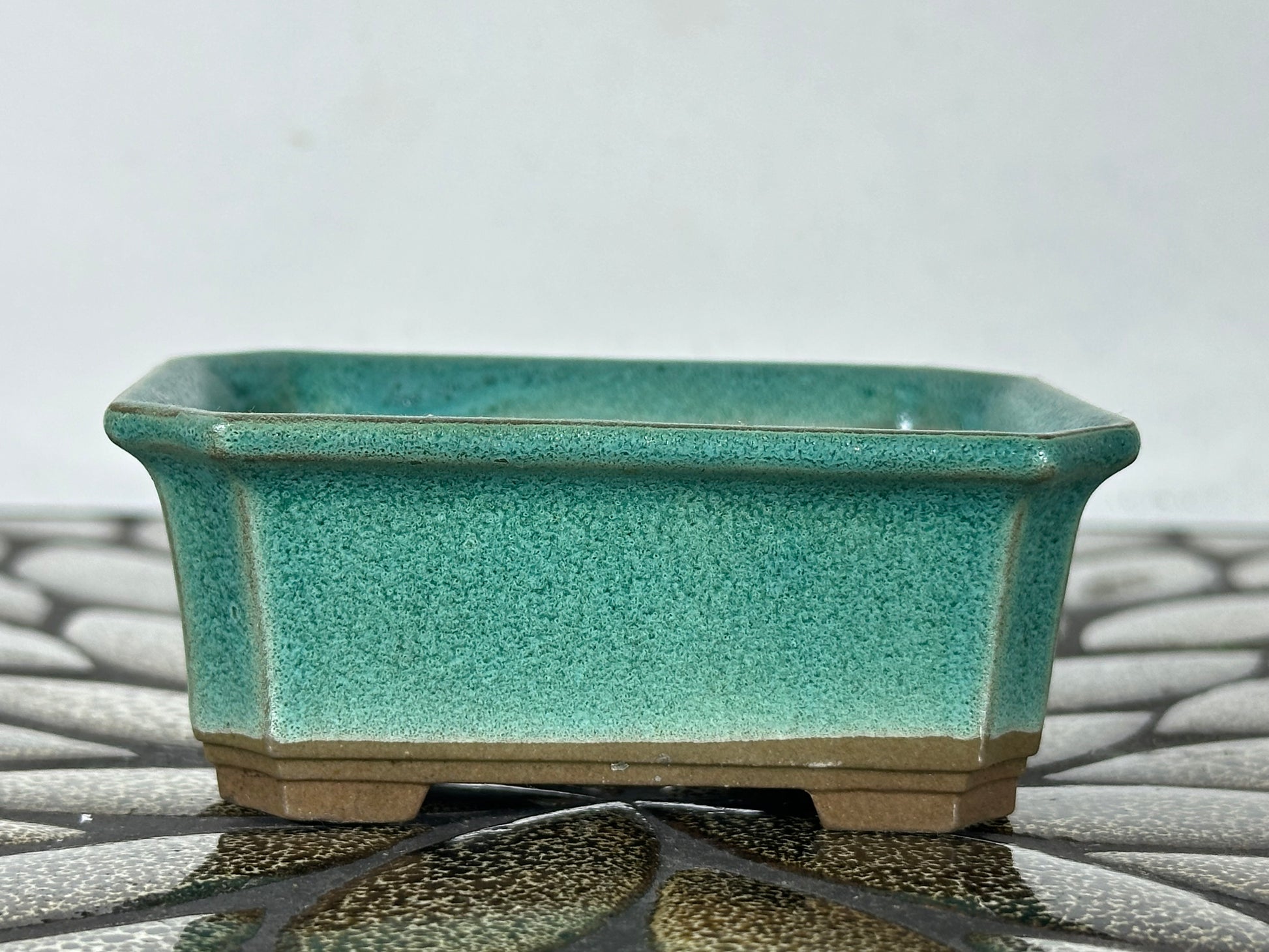 Preowned Japanese Tokoname Glazed Rectangular Bonsai Pot - 3.5” By 2.75”