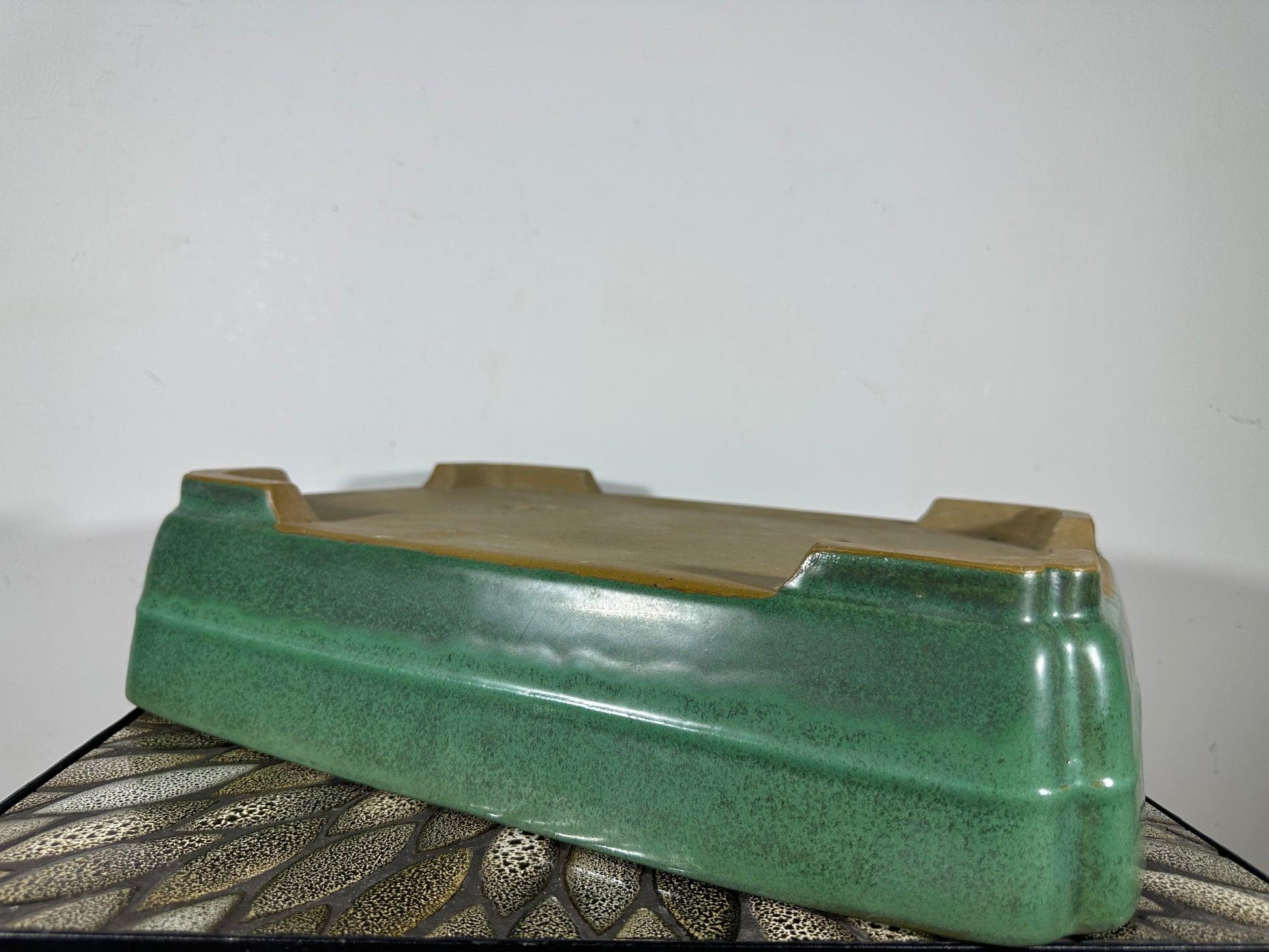 Preowned Japanese Tokoname Glazed Rectangular Bonsai Pot Yamafusa - 16.75” By 12.5”