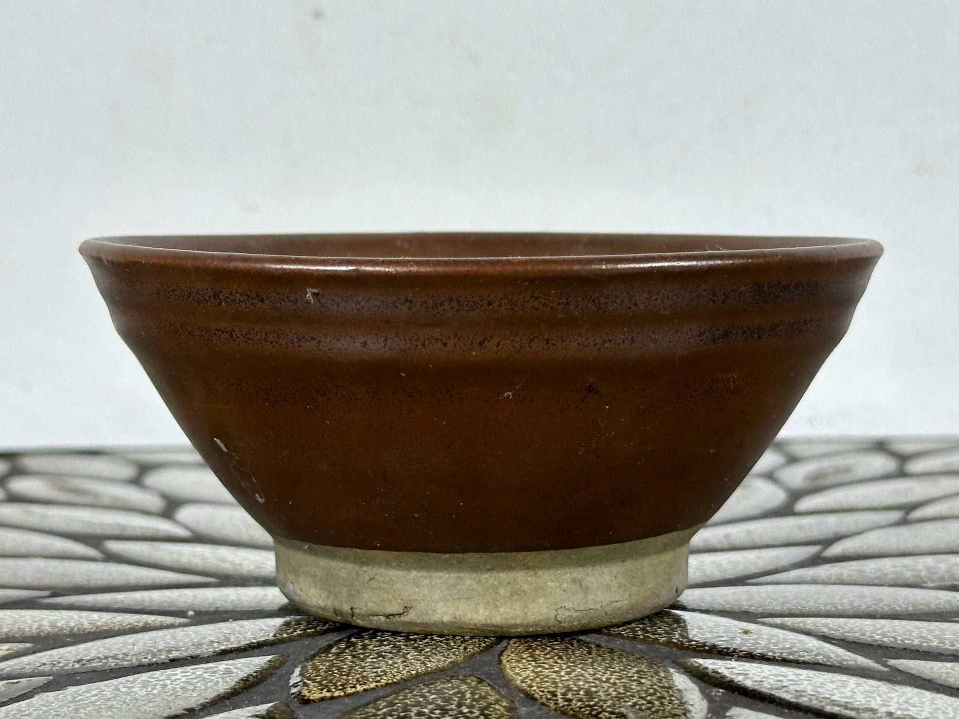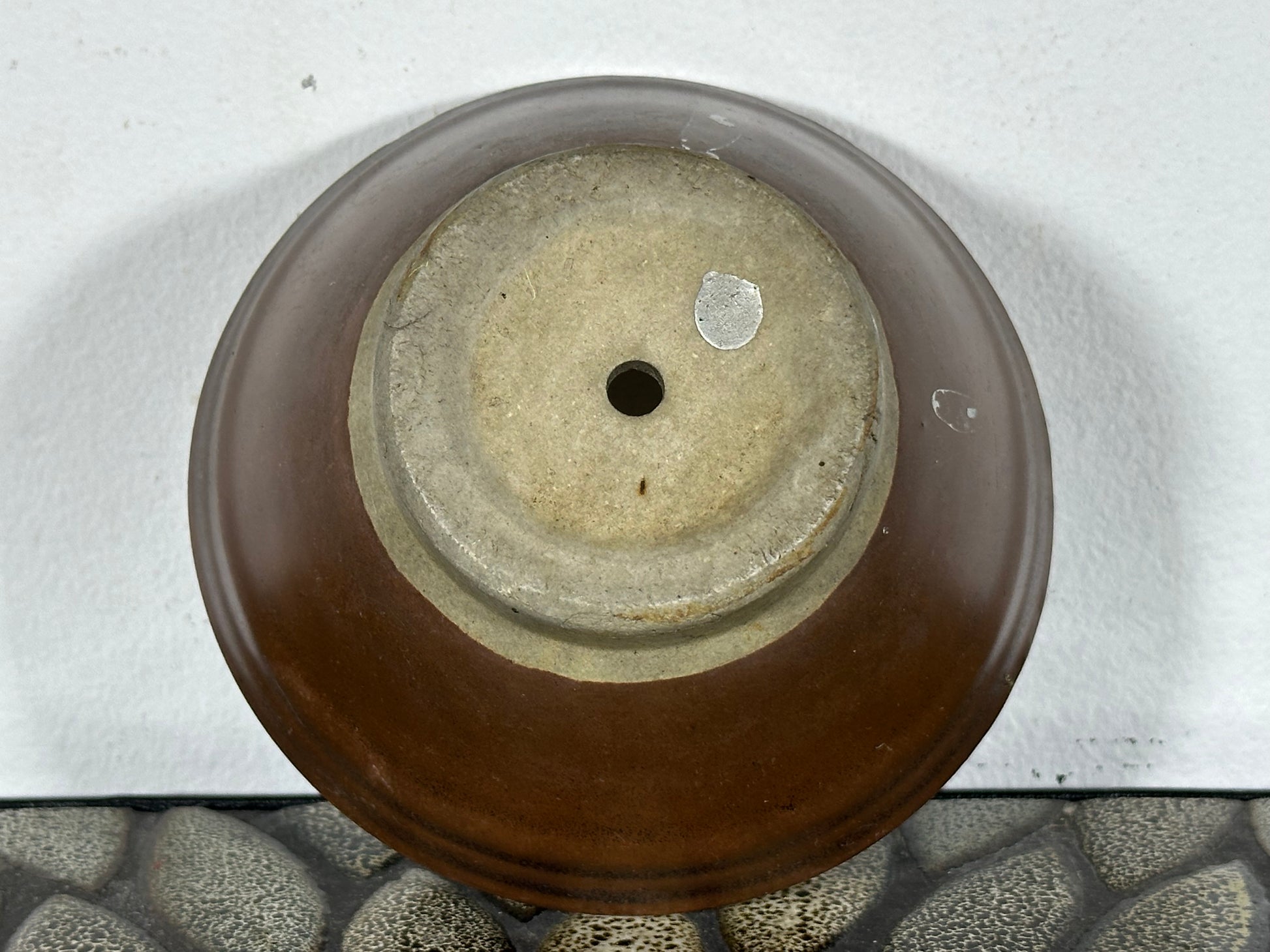 Preowned Japanese Tokoname Glazed Round Bonsai Pot - 4.75” By 2 1/8”
