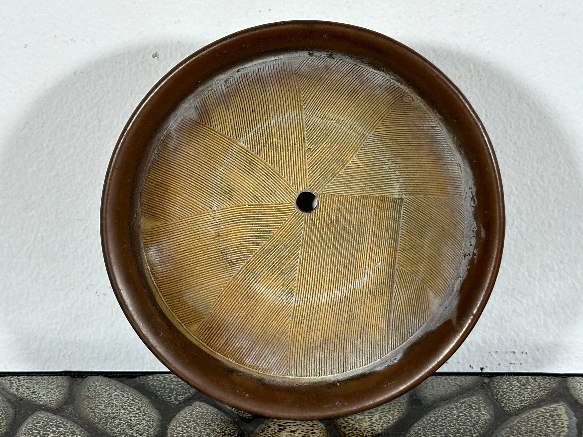 Preowned Japanese Tokoname Glazed Round Bonsai Pot - has patina