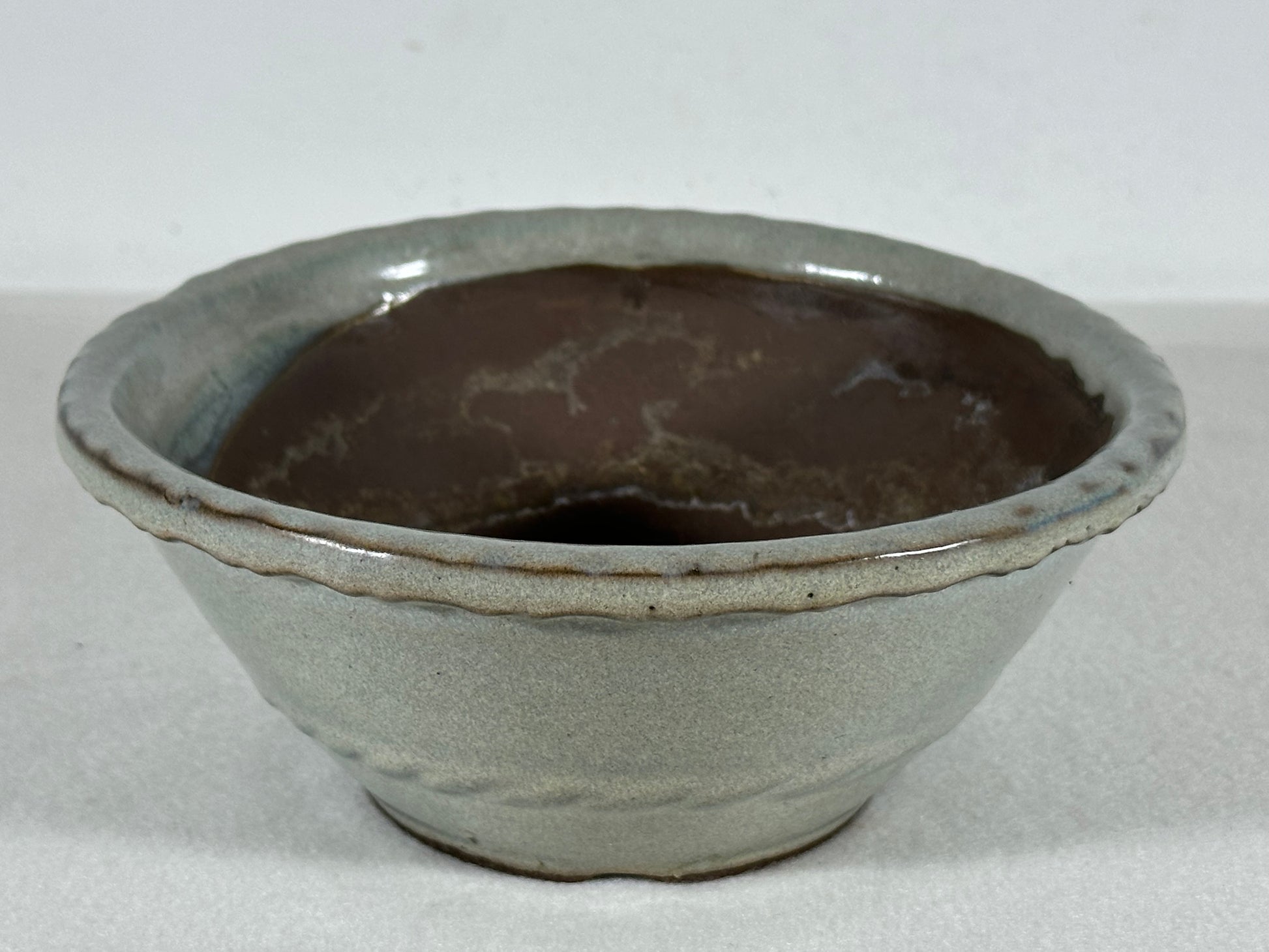 Preowned Japanese Tokoname Glazed Round Bonsai Pot with Patina - 6.5” By 2.75”
