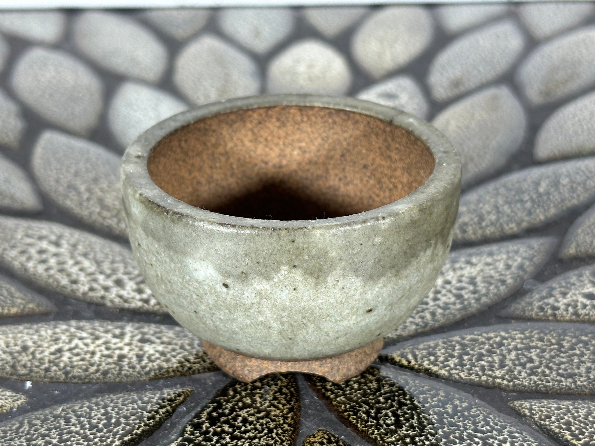 Preowned Japanese Tokoname Glazed Round Bonsai Pot with Stamps - 2.25” By 1.5”