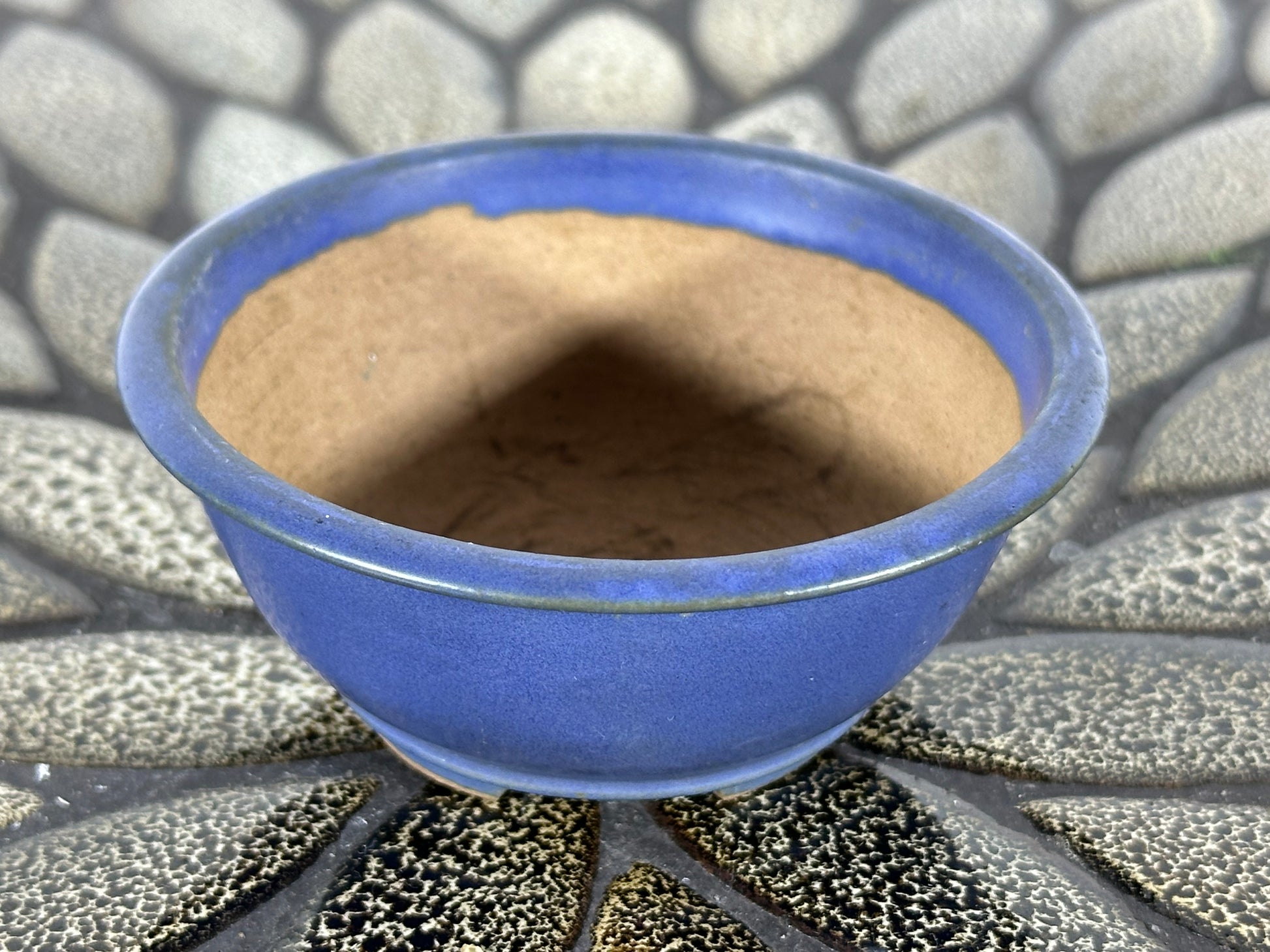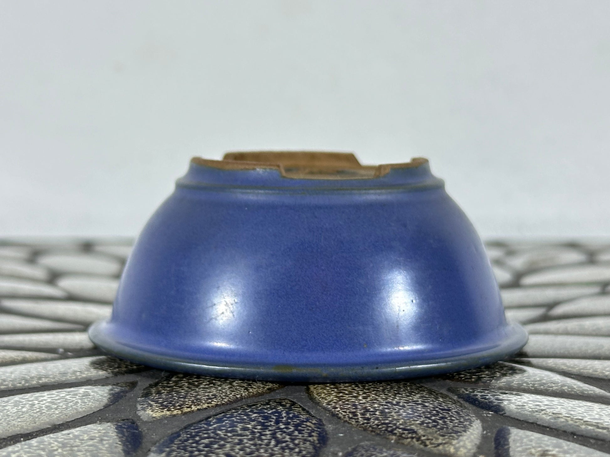 Preowned Japanese Tokoname Glazed Round Bonsai Pot with Stamps - has patina
