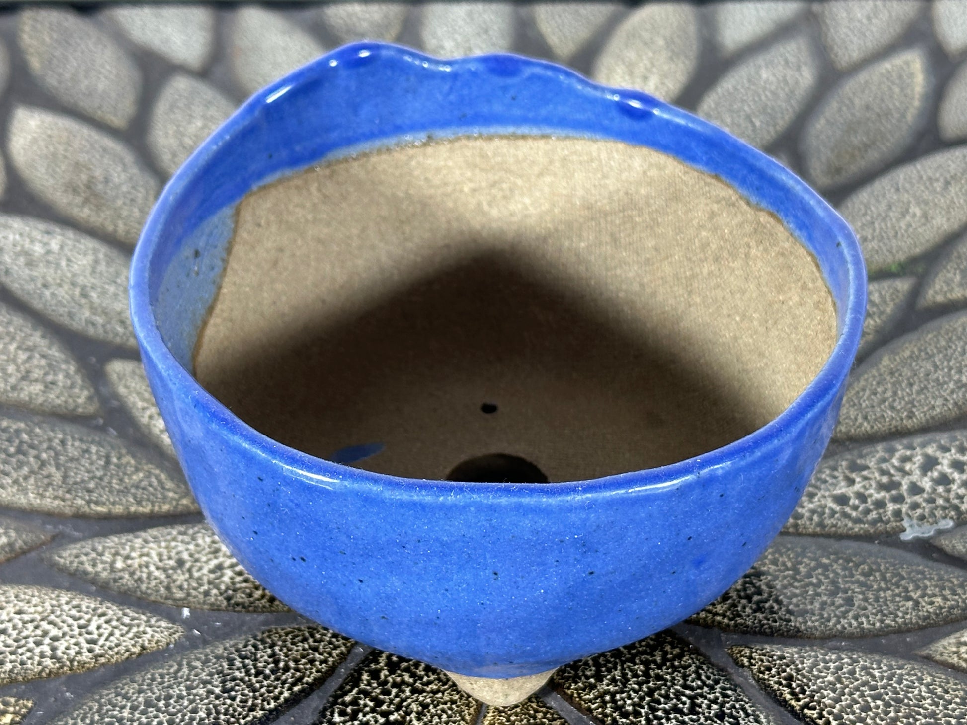Preowned Japanese Tokoname Glazed Round Bonsai Pot with Stamps - has patina