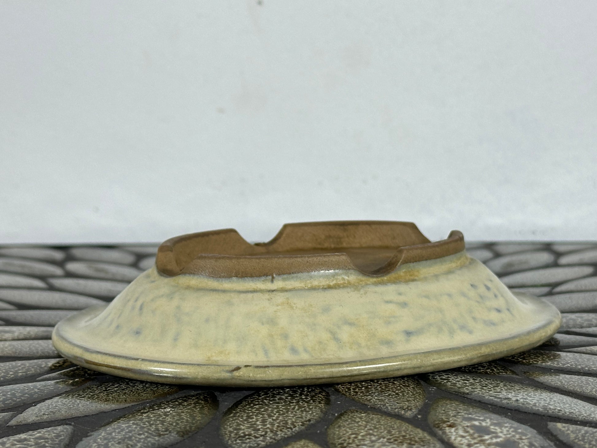 Preowned Japanese Tokoname Glazed Shallow Oval Bonsai Pot - 6 1/8” By 4 7/8”