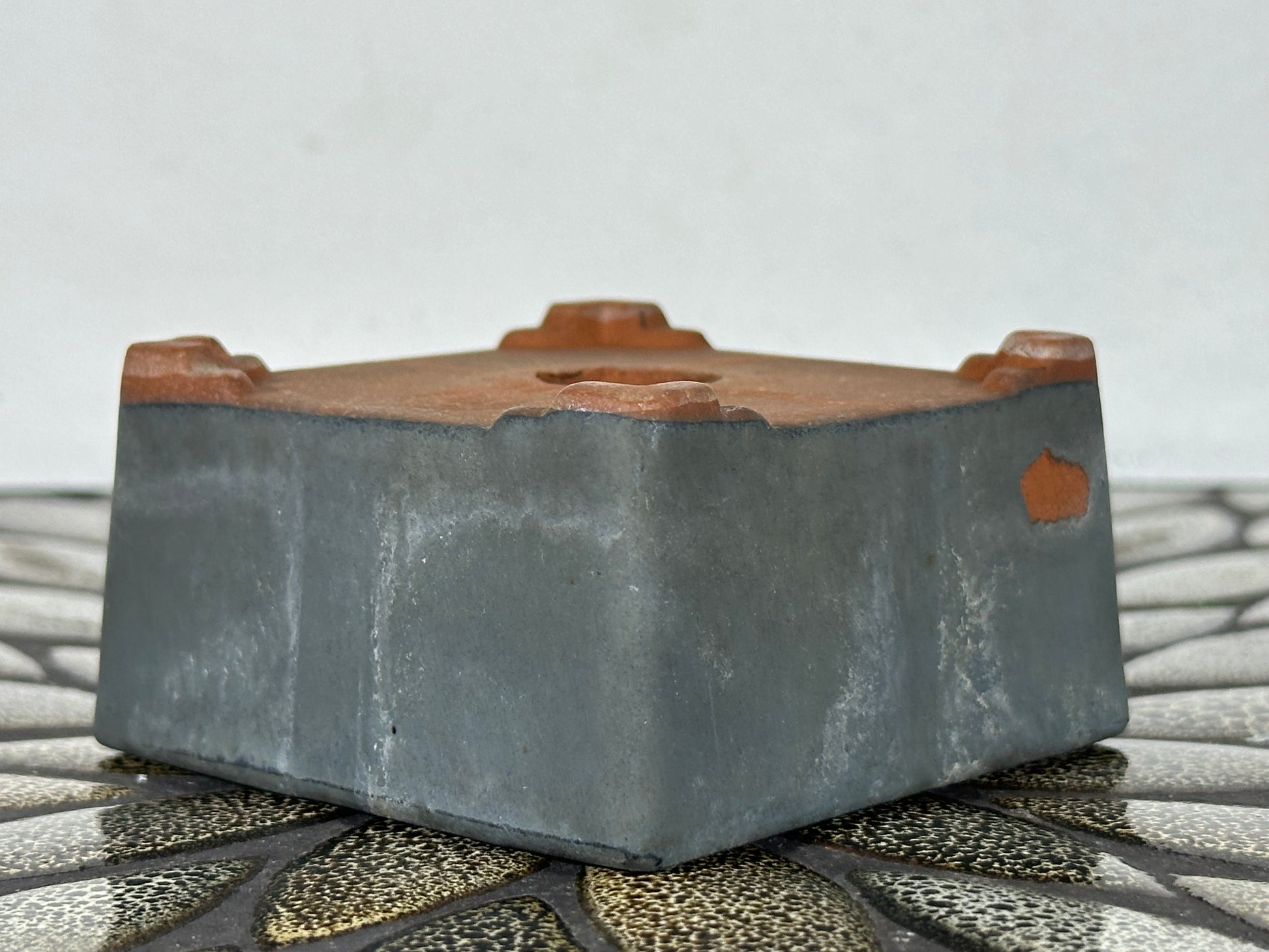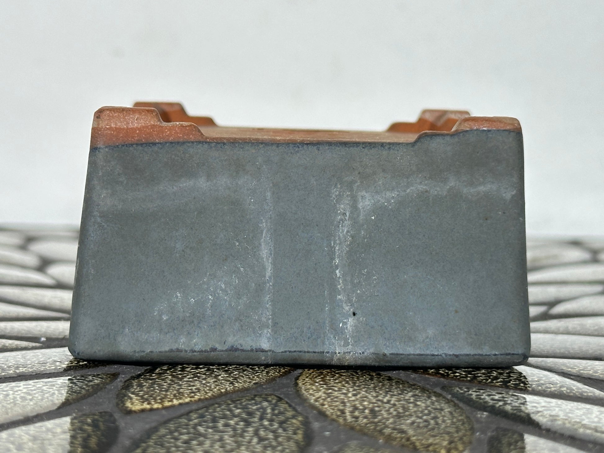 Preowned Japanese Tokoname Glazed Square Bonsai Pot with Stamp - 3.35” By 1 5/8”