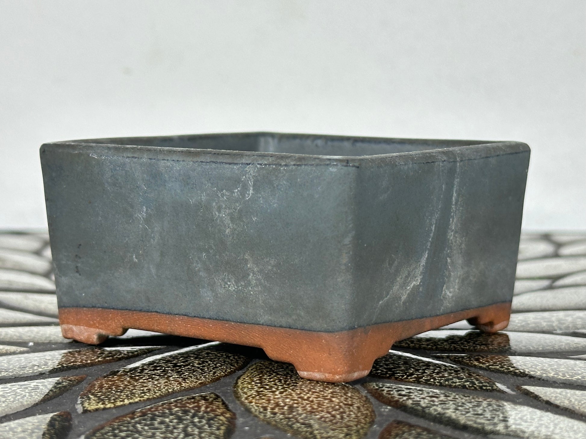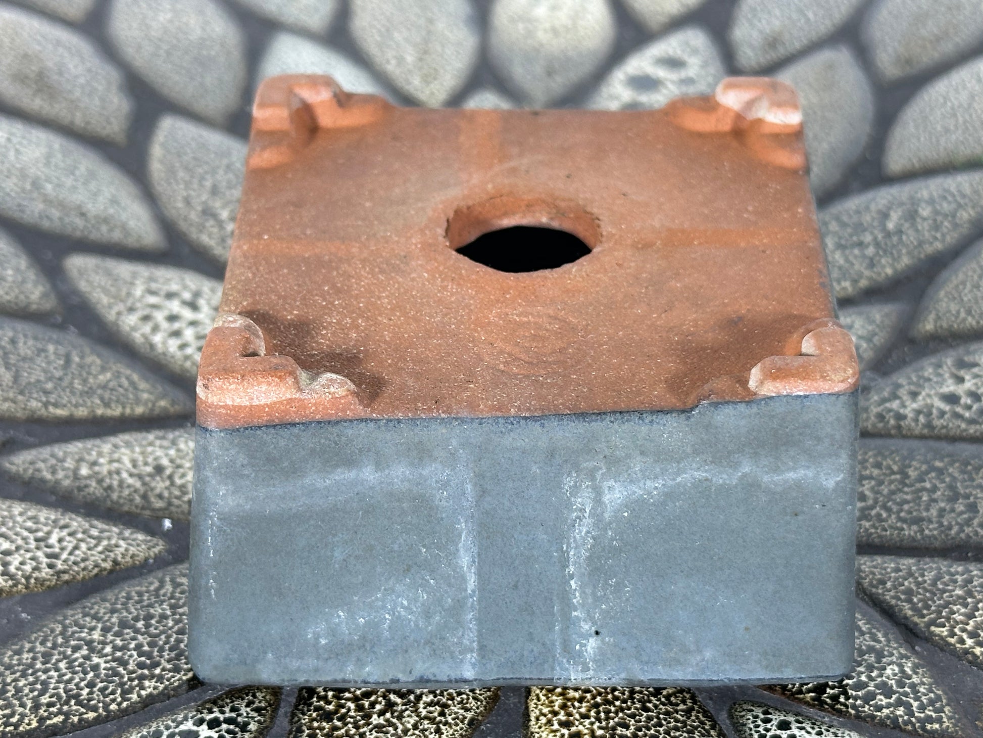Preowned Japanese Tokoname Glazed Square Bonsai Pot with Stamp - has patina