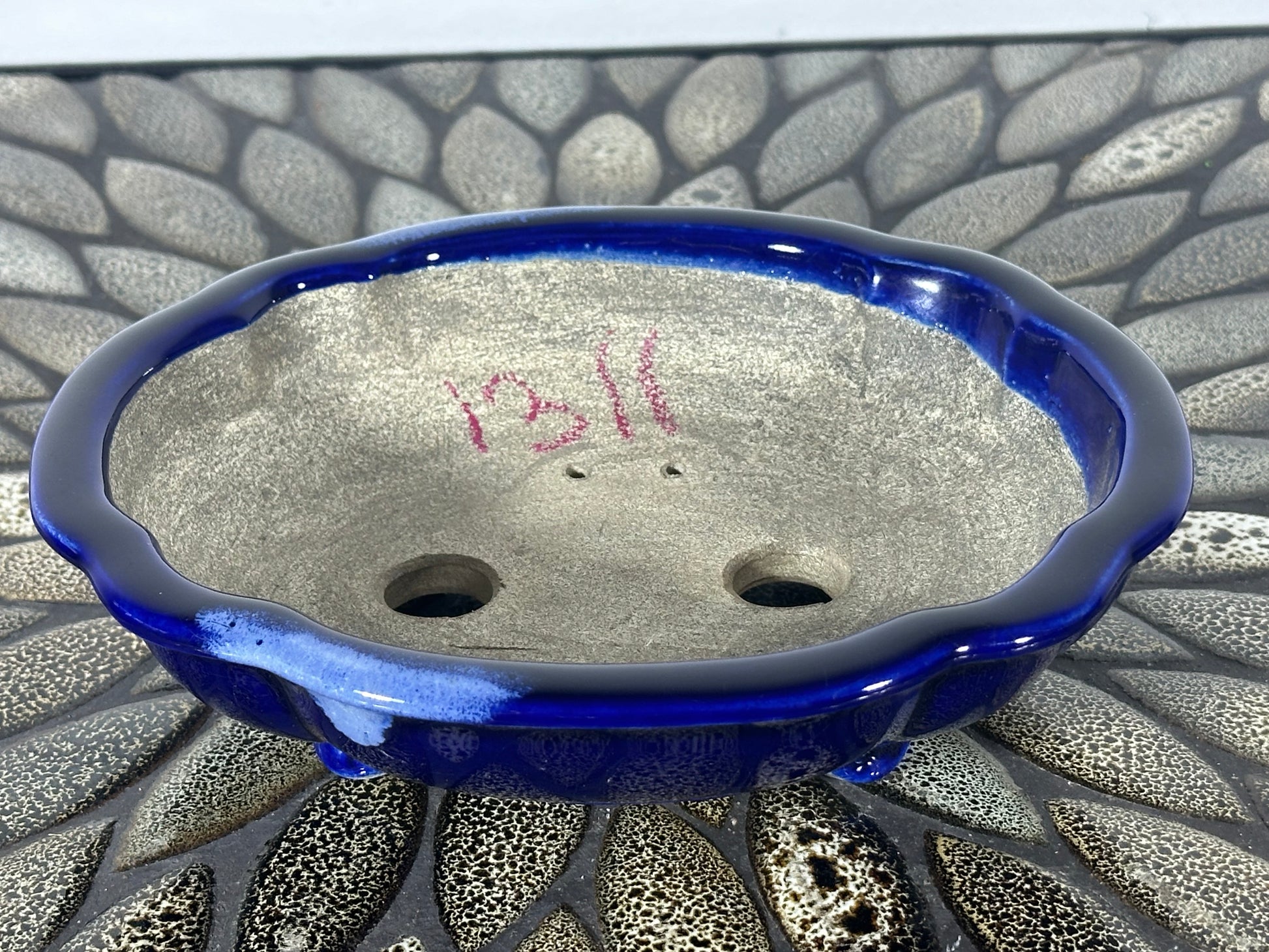 Preowned Japanese Tokoname Mokko Style Glazed Bonsai Pot Satomi - Nice Blue
