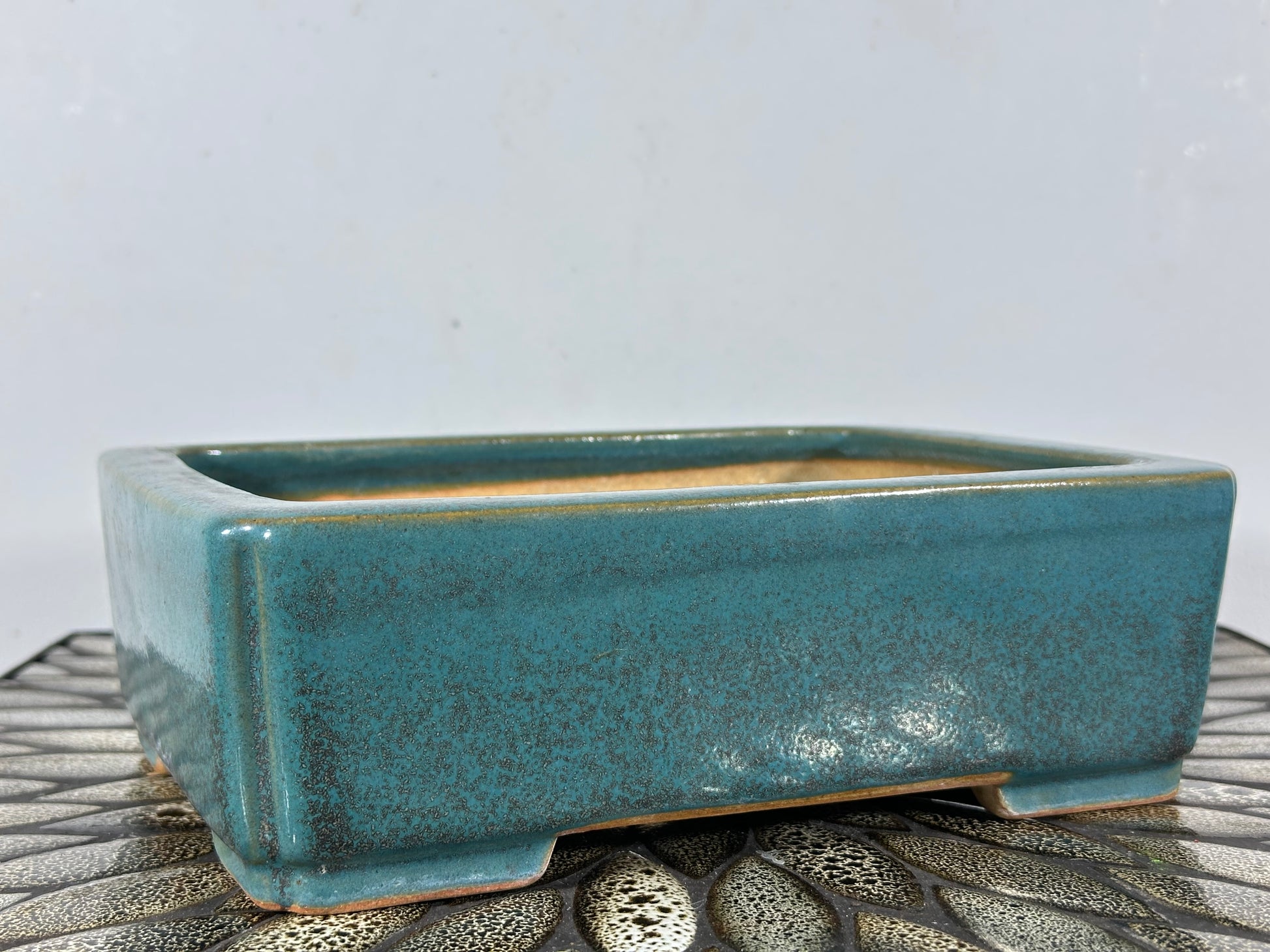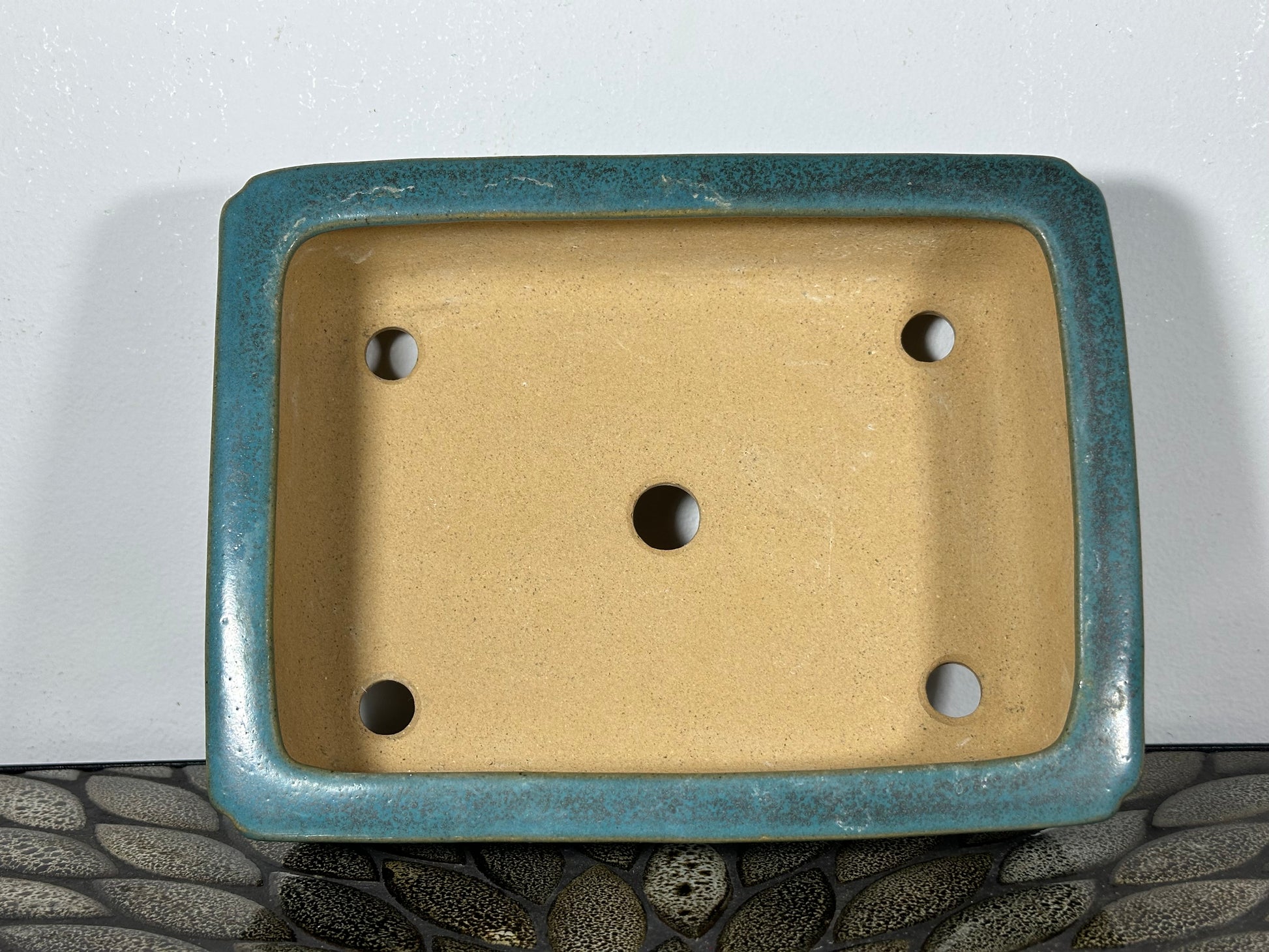 Preowned Japanese Tokoname Rectangular Bonsai Pot Reiho with soft corner cut.
