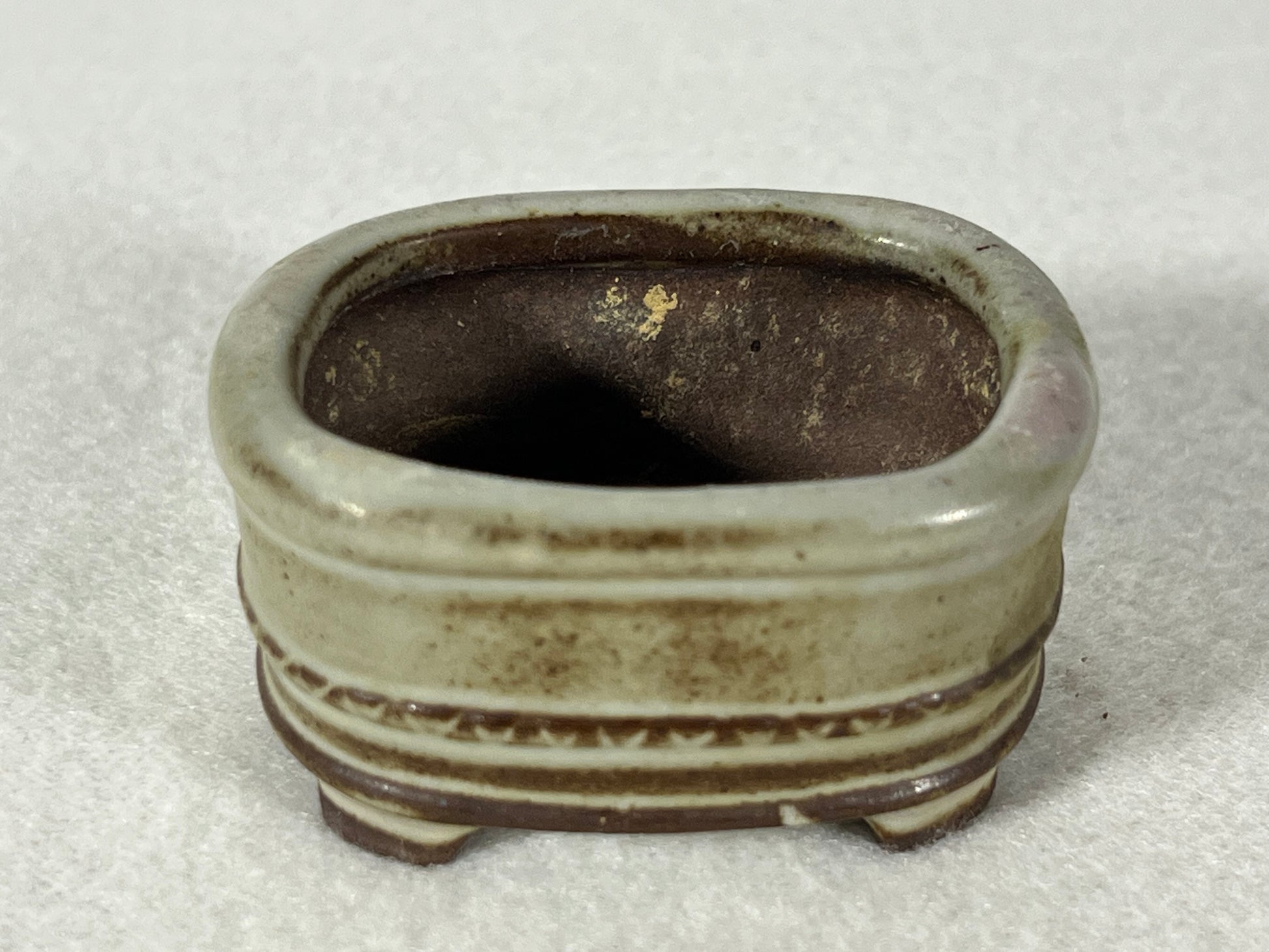 Preowned Japanese Tokoname Rectangular Bonsai Pot Tosui - 2 1/8” By 1.75”