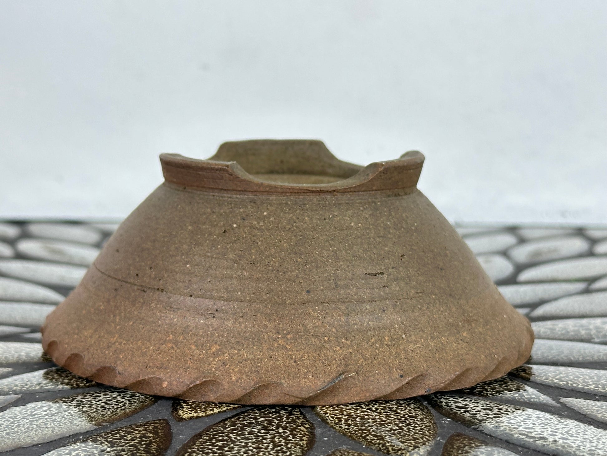 Preowned Japanese Tokoname Unglazed Round Bonsai Pot with Stamps