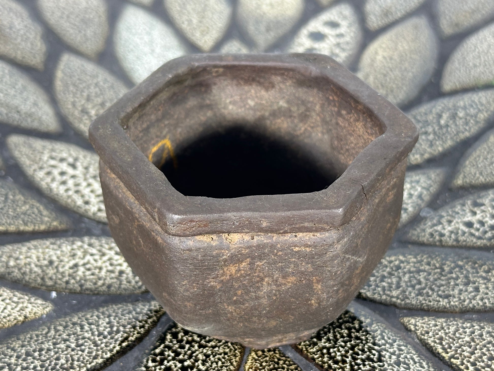Preowned Japanese Tokoname Unglazed Hexagon Shape Bonsai Pot - 2.75” By 2.5”
