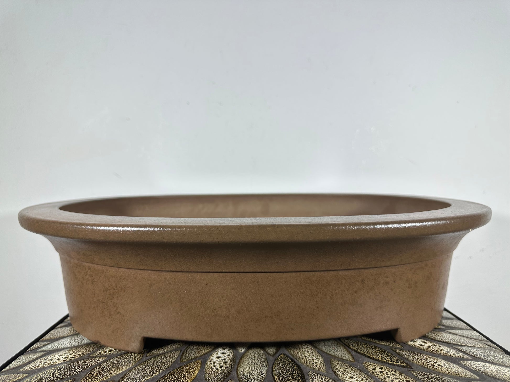 Preowned Japanese Tokoname Unglazed Oval Bonsai Pot Keizan - 19.5” By 15.5”