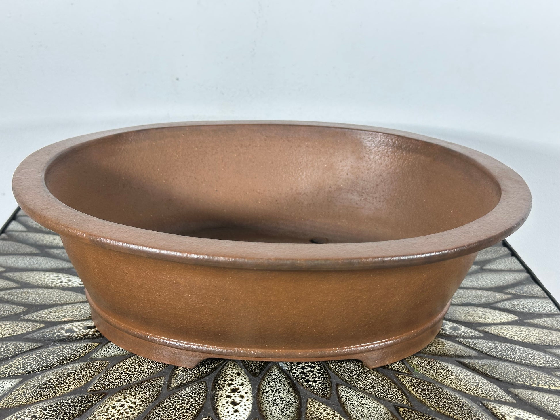 Preowned Japanese Tokoname Unglazed Oval Bonsai Pot Seizan - 12.5” By 10.5”