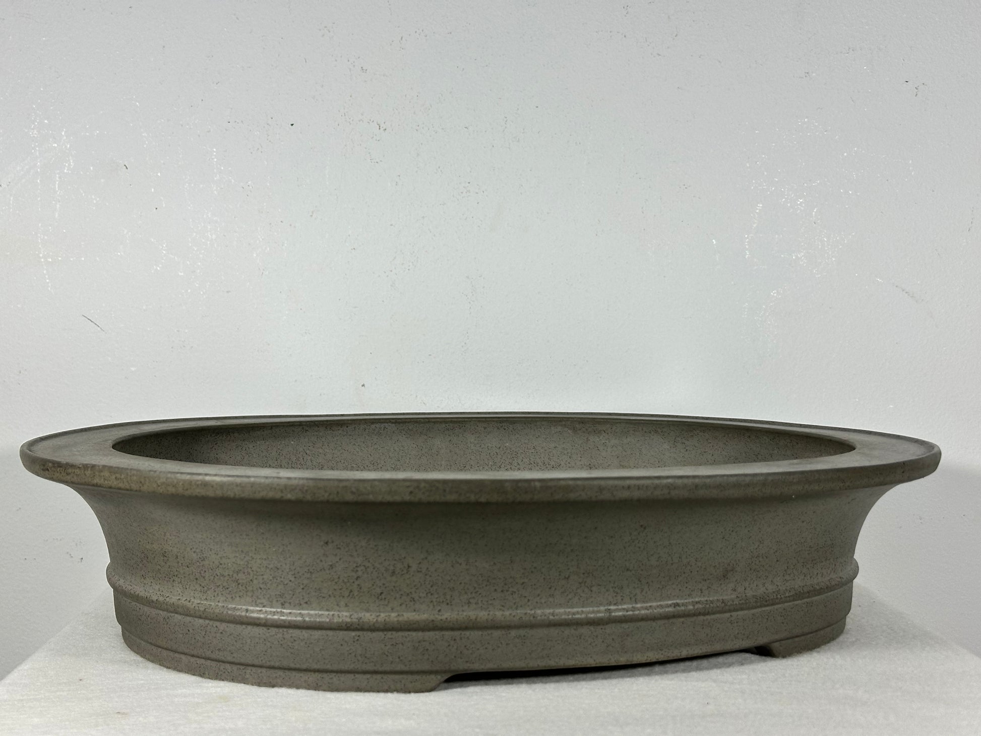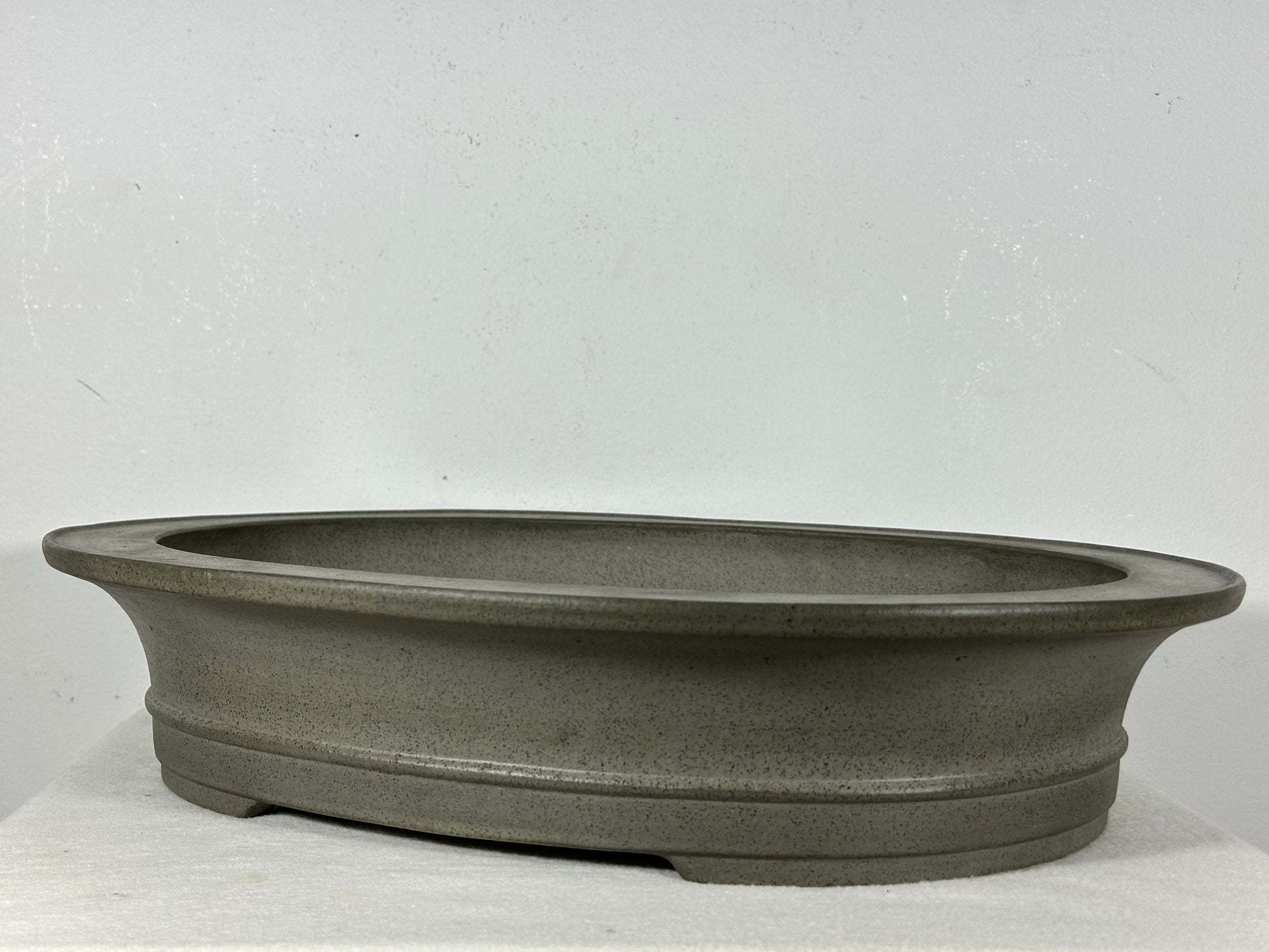 Preowned Japanese Tokoname Unglazed Oval Bonsai Pot Seizan - 17.25” By 14.25”