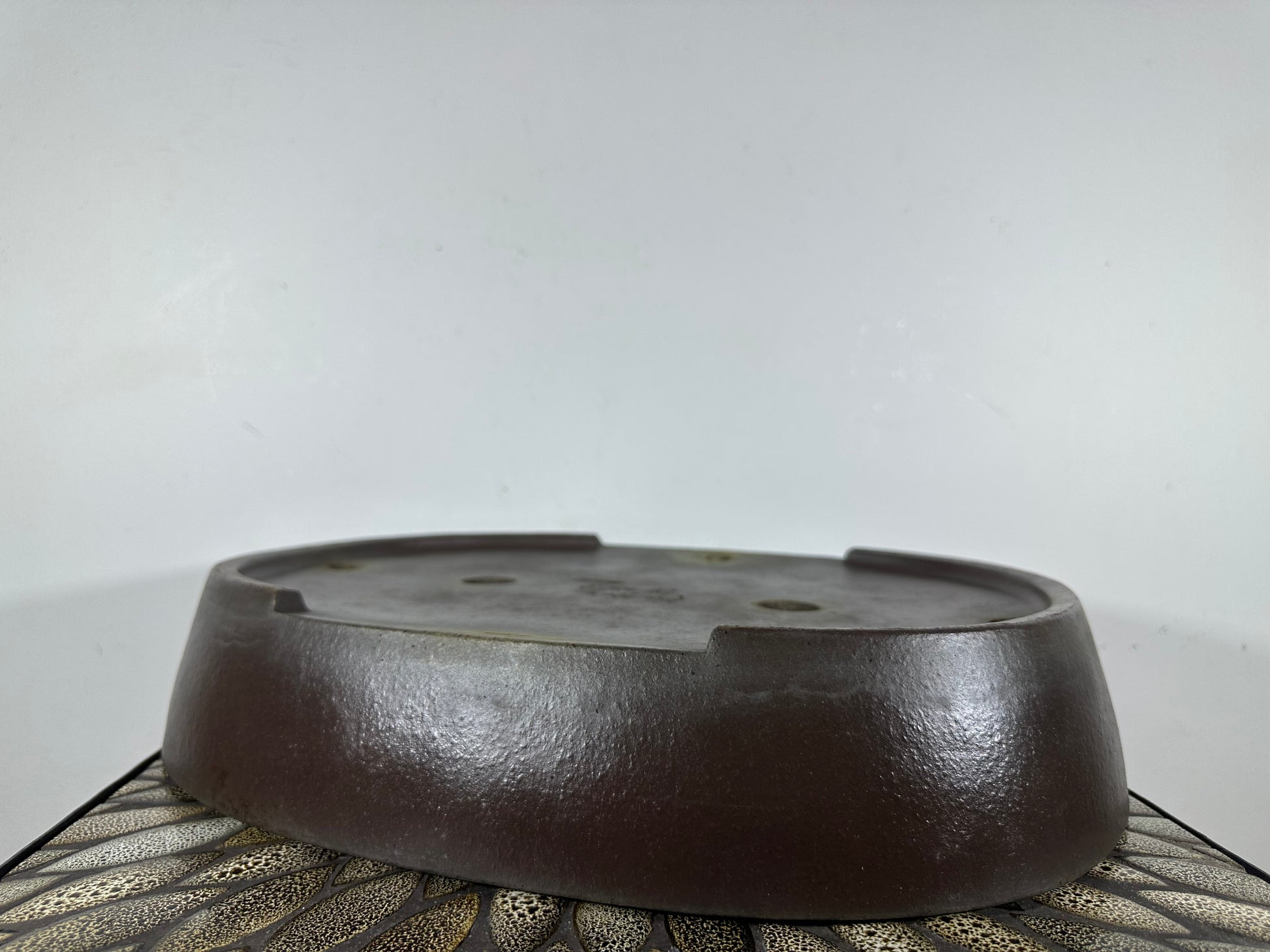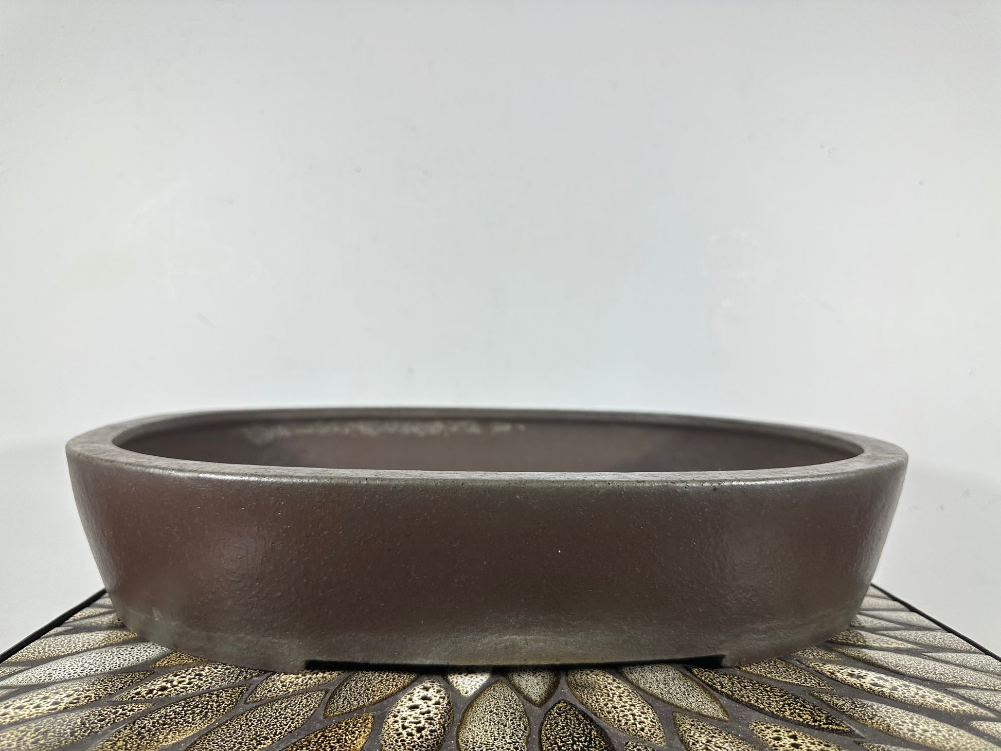 Preowned Japanese Tokoname Unglazed Oval Bonsai Pot Yamaaki - 16.75” By 13.25”