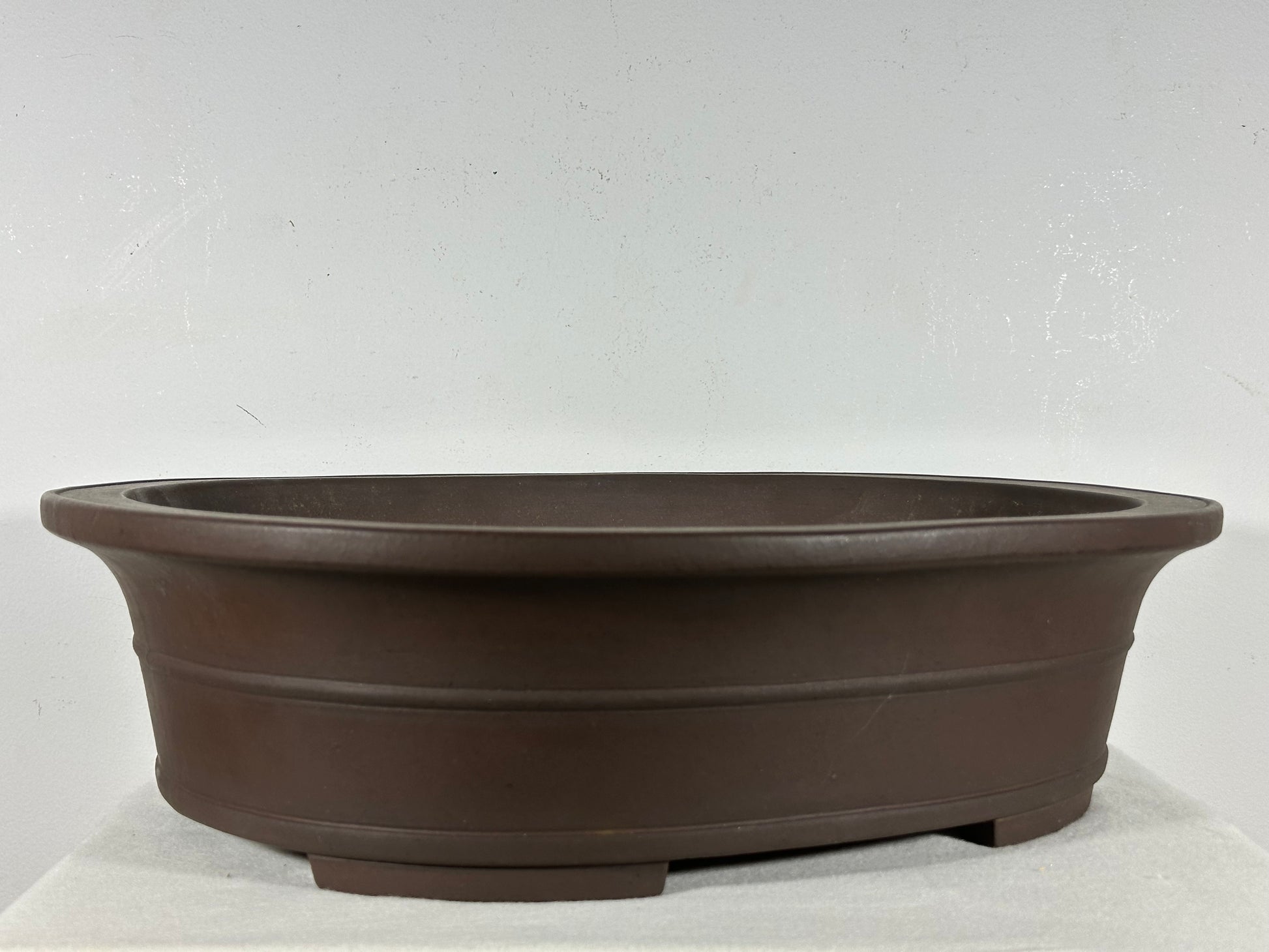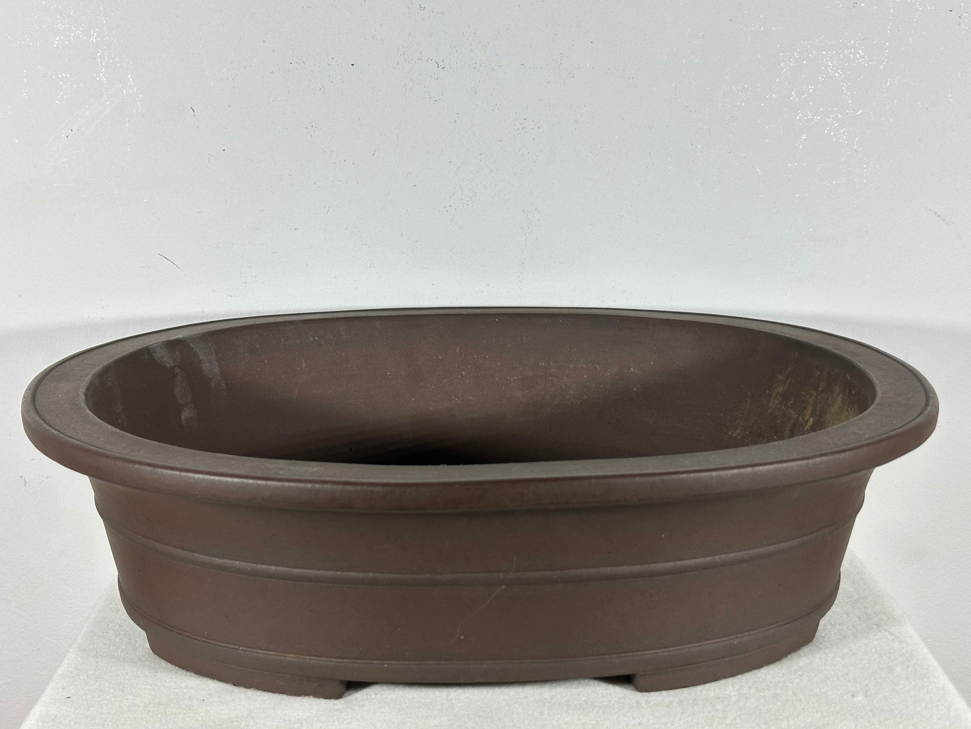 Preowned Japanese Tokoname Unglazed Oval Bonsai Pot Yamaaki - 18” By 14.5”