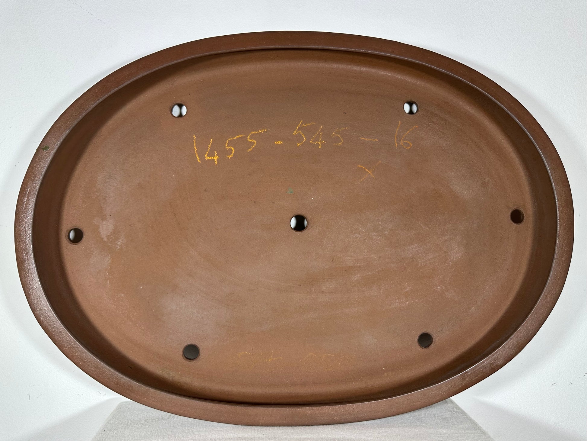 Preowned Japanese Tokoname Unglazed Oval Shallow Bonsai Pot Seizan - 25” By 17.5”