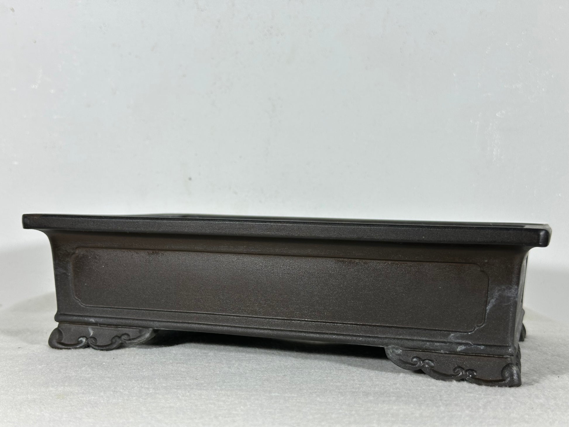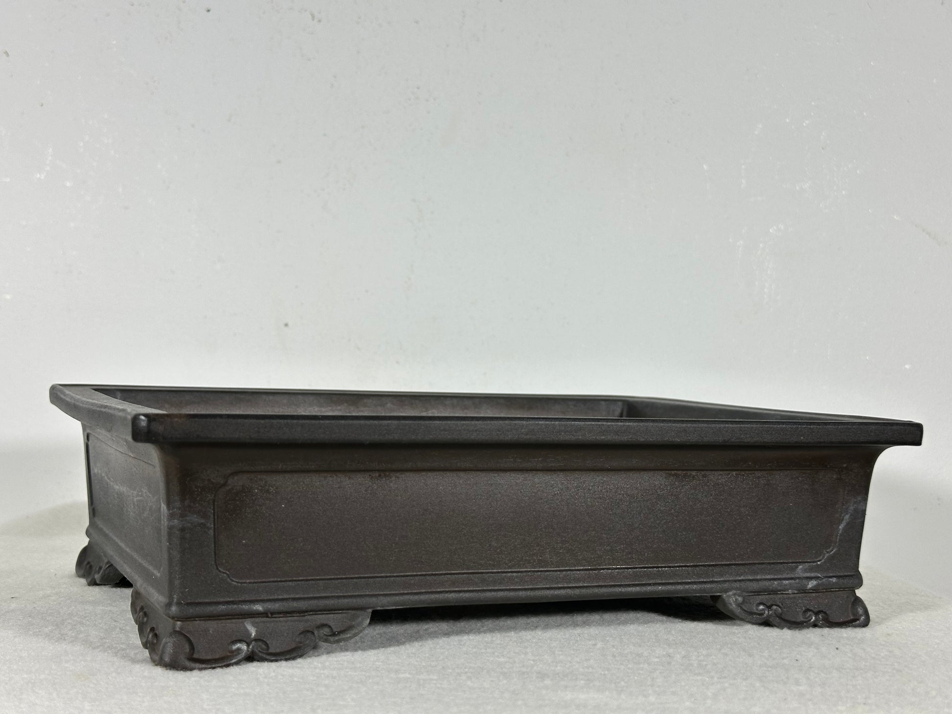 Preowned Japanese Tokoname Unglazed Rectangular Bonsai Pot has cloud foot and patina