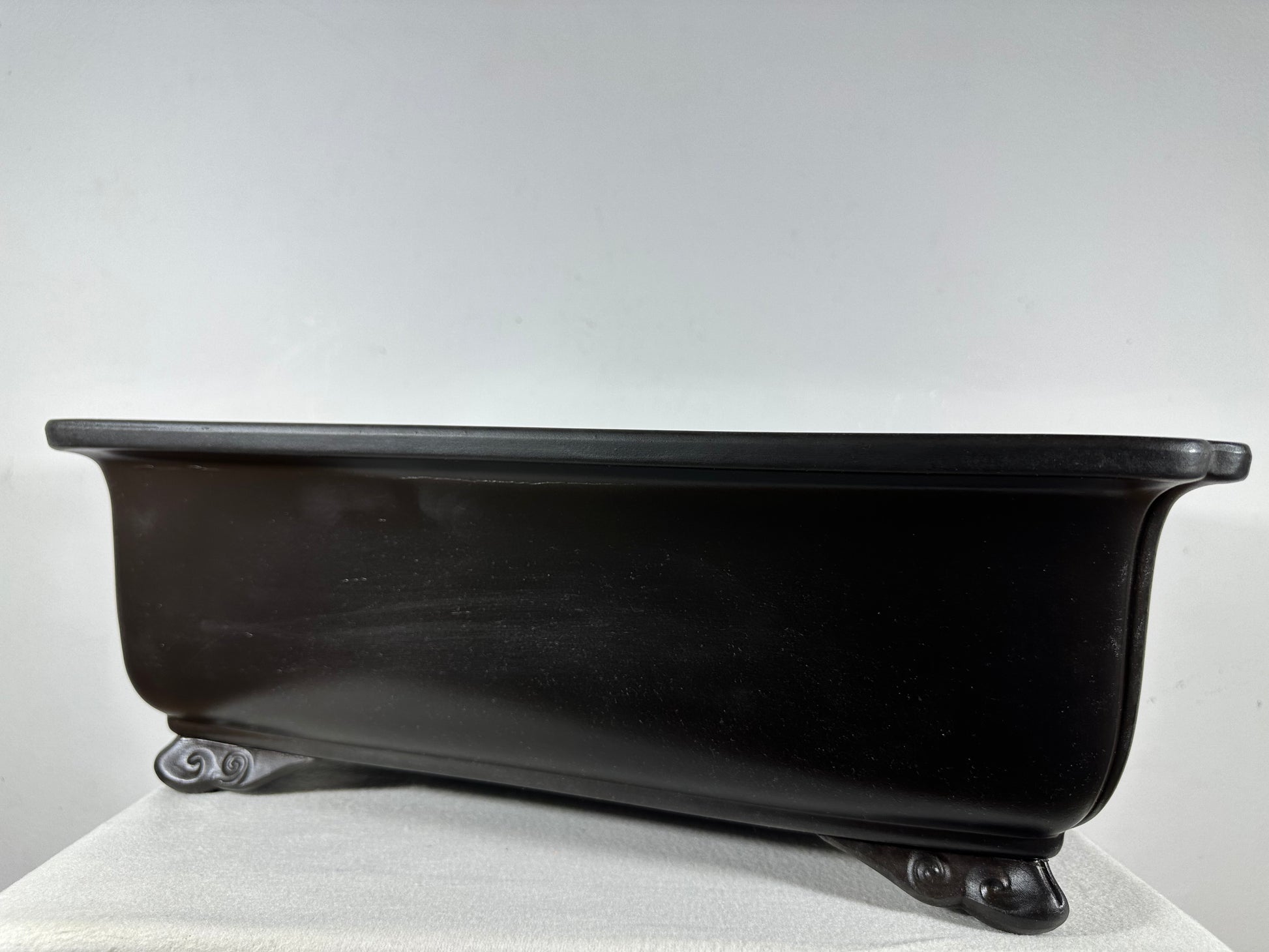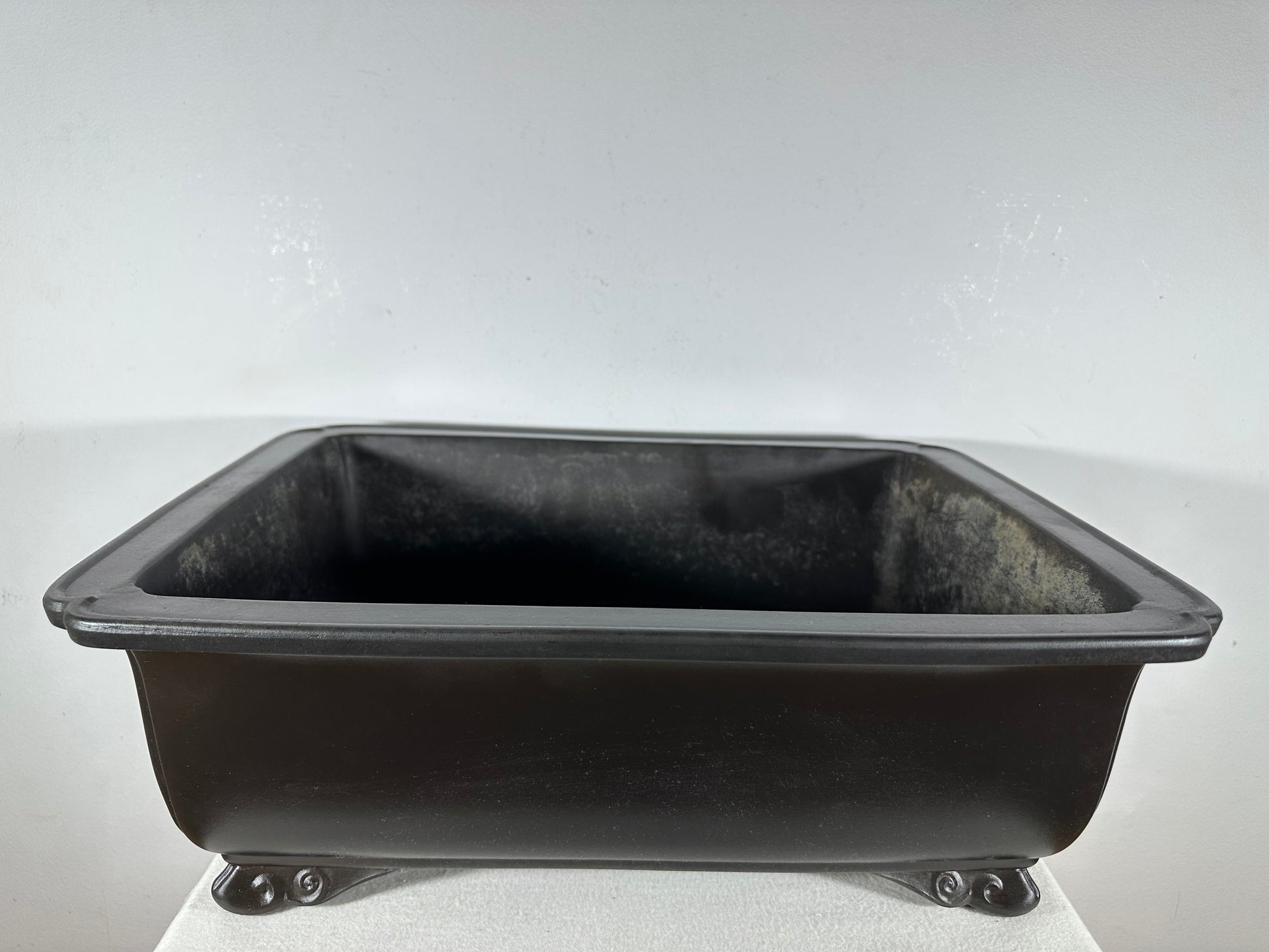 Preowned Japanese Tokoname Unglazed Rectangular Bonsai Pot Kaiyou, has Cloud foot