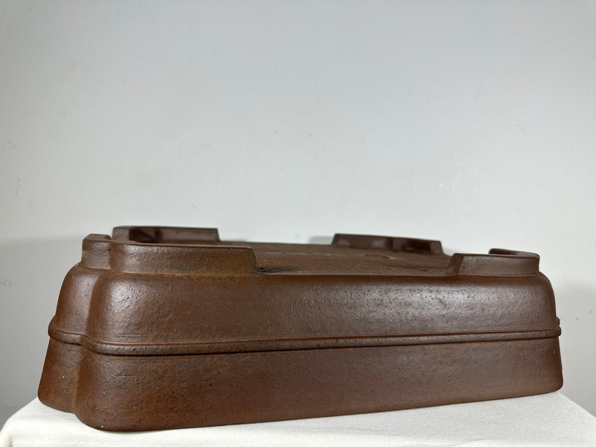 Preowned Japanese Tokoname Unglazed Rectangular Bonsai Pot Keizan - 18.5” By 14”