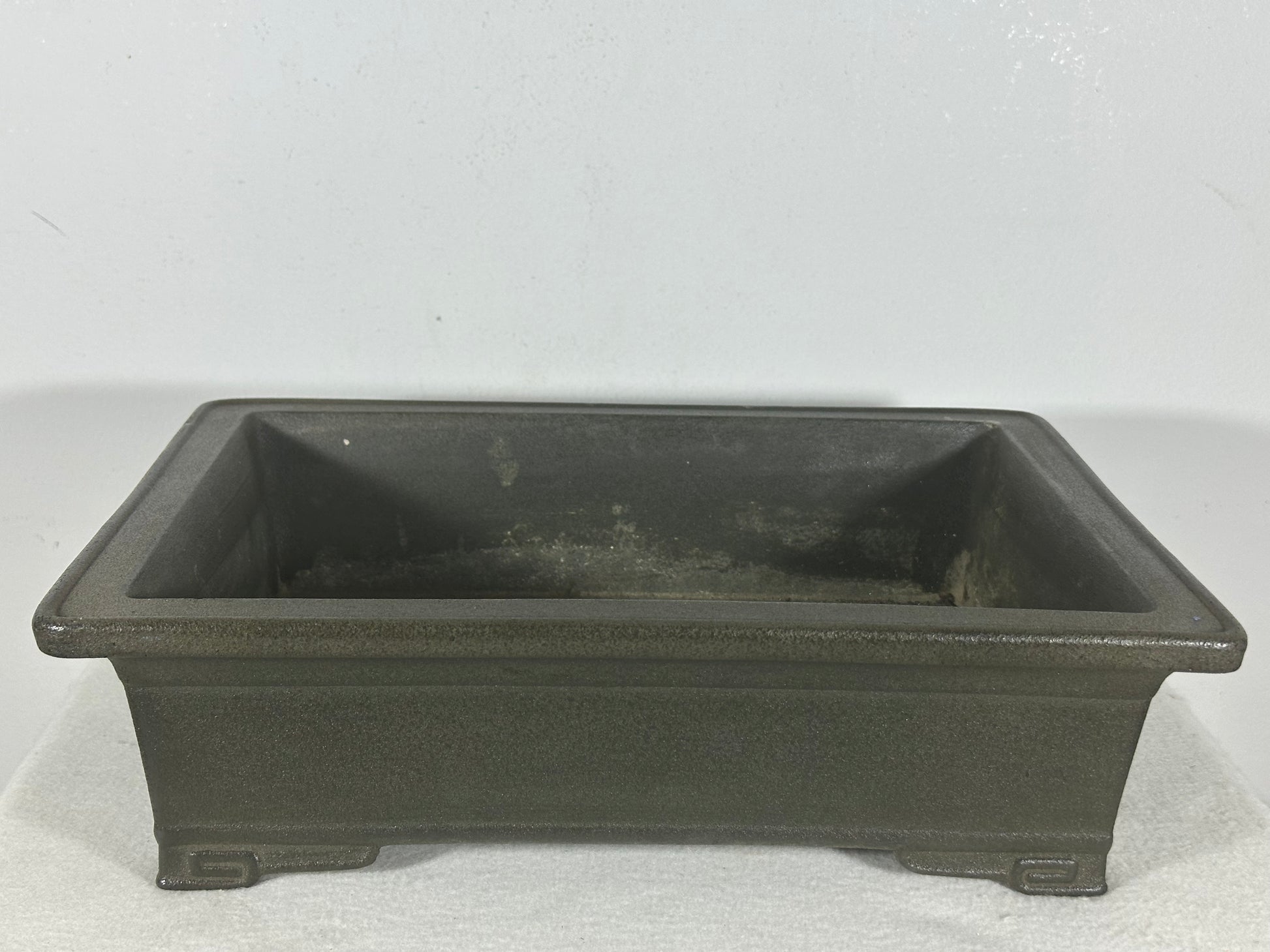 Preowned Japanese Tokoname Unglazed Rectangular Bonsai Pot with Stamp - 13.25” By 9.5”