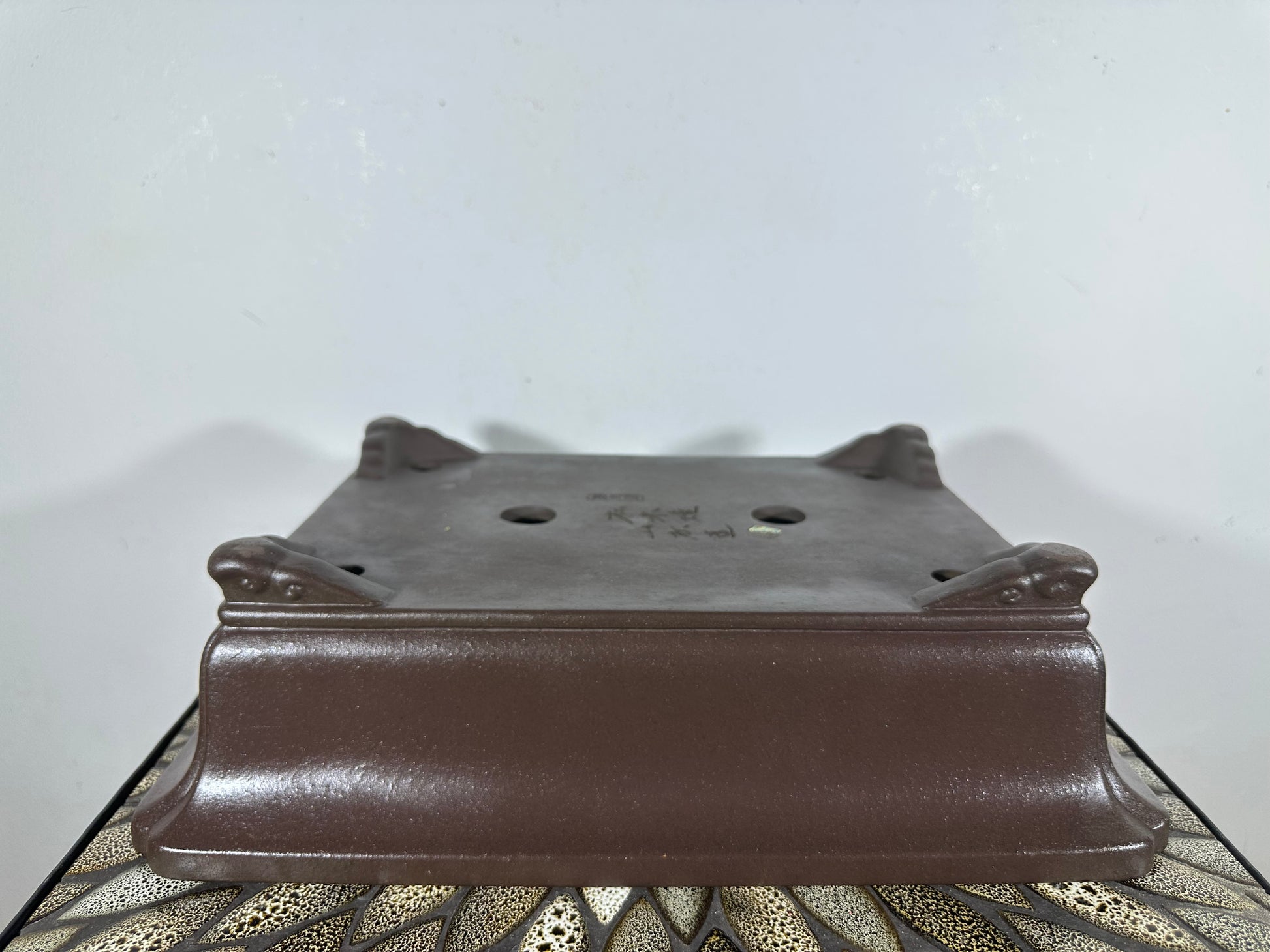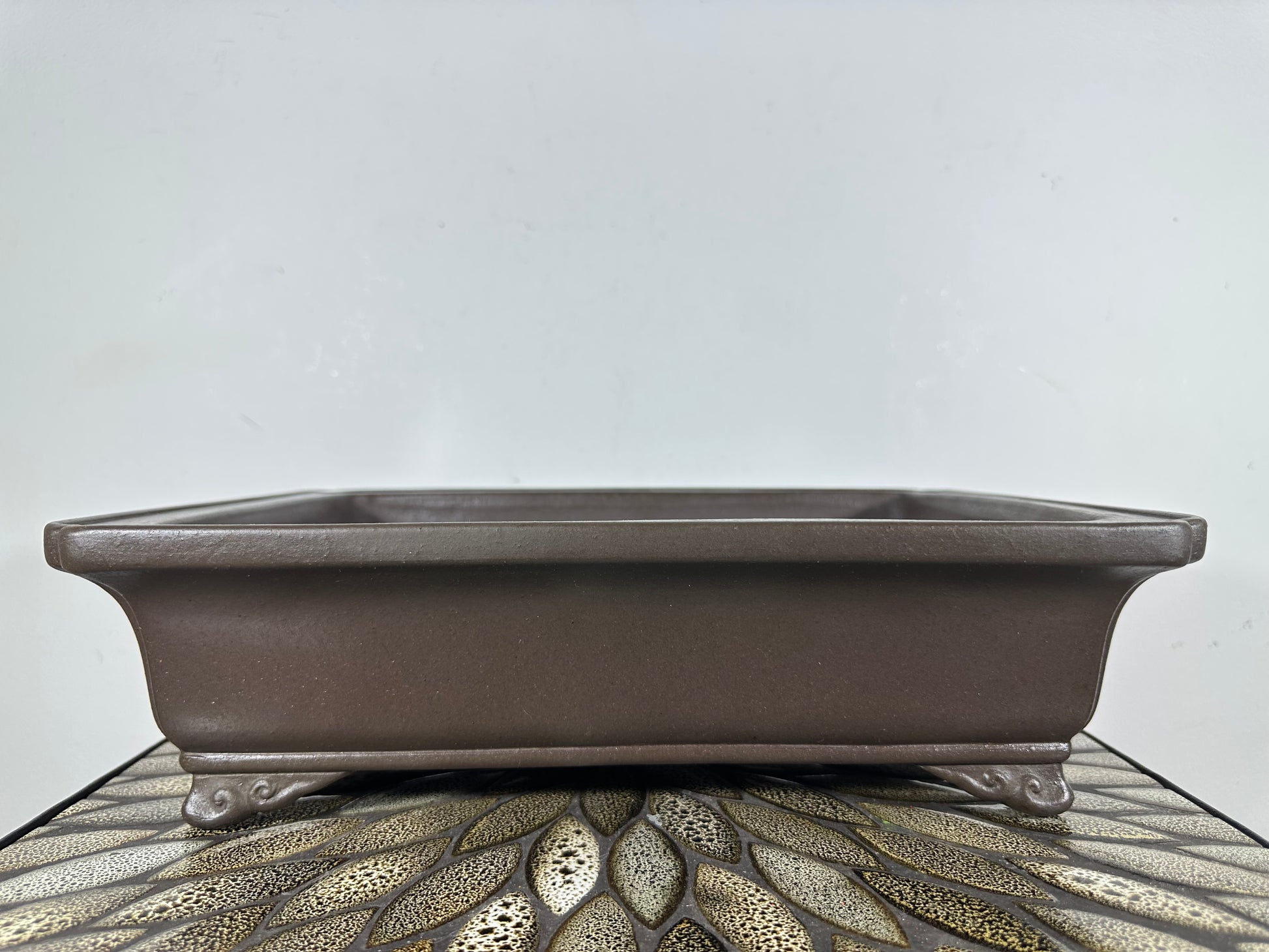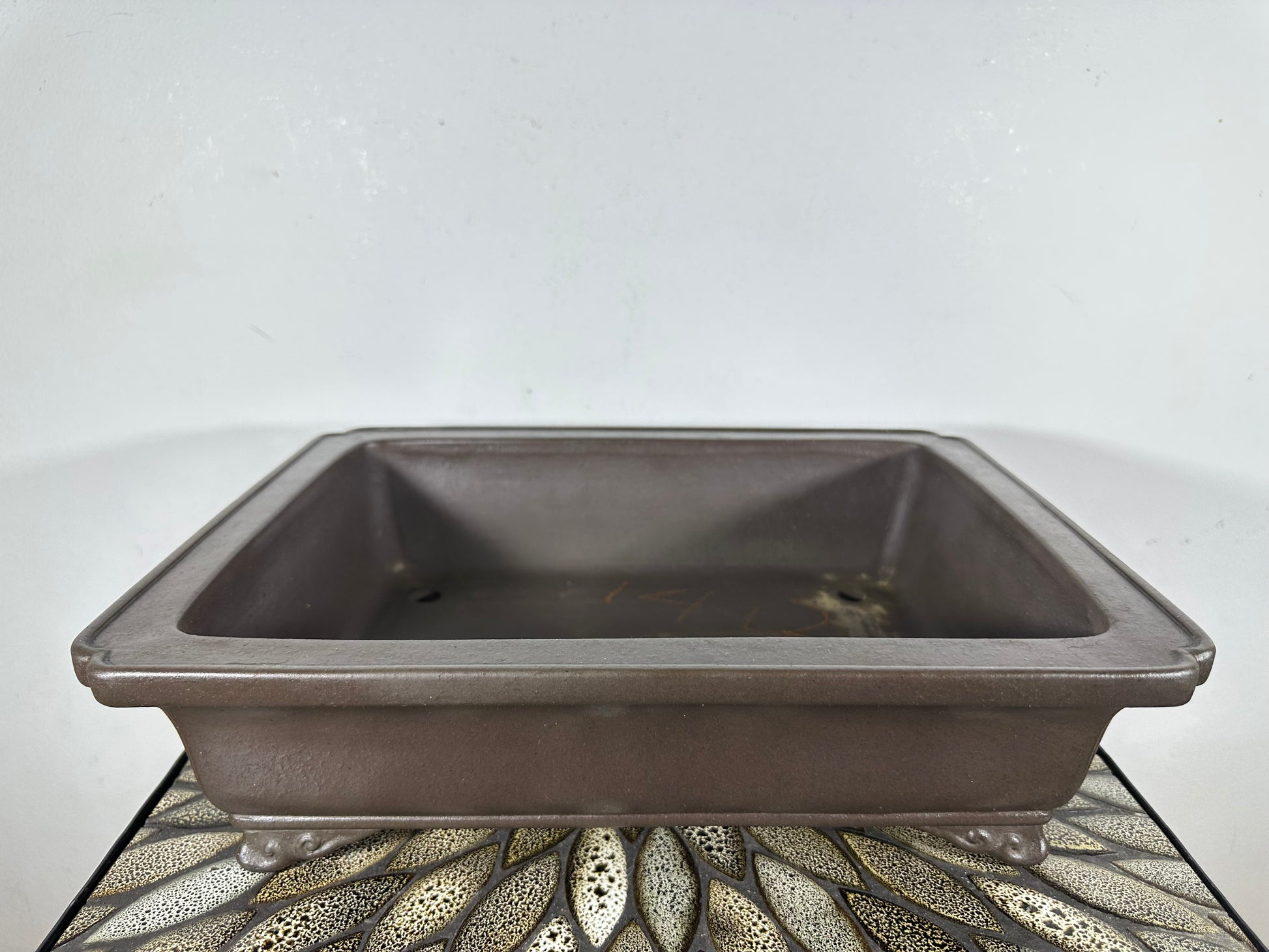 Preowned Japanese Tokoname Unglazed Rectangular Bonsai Pot Yamaaki with cloud foot and corner cut
