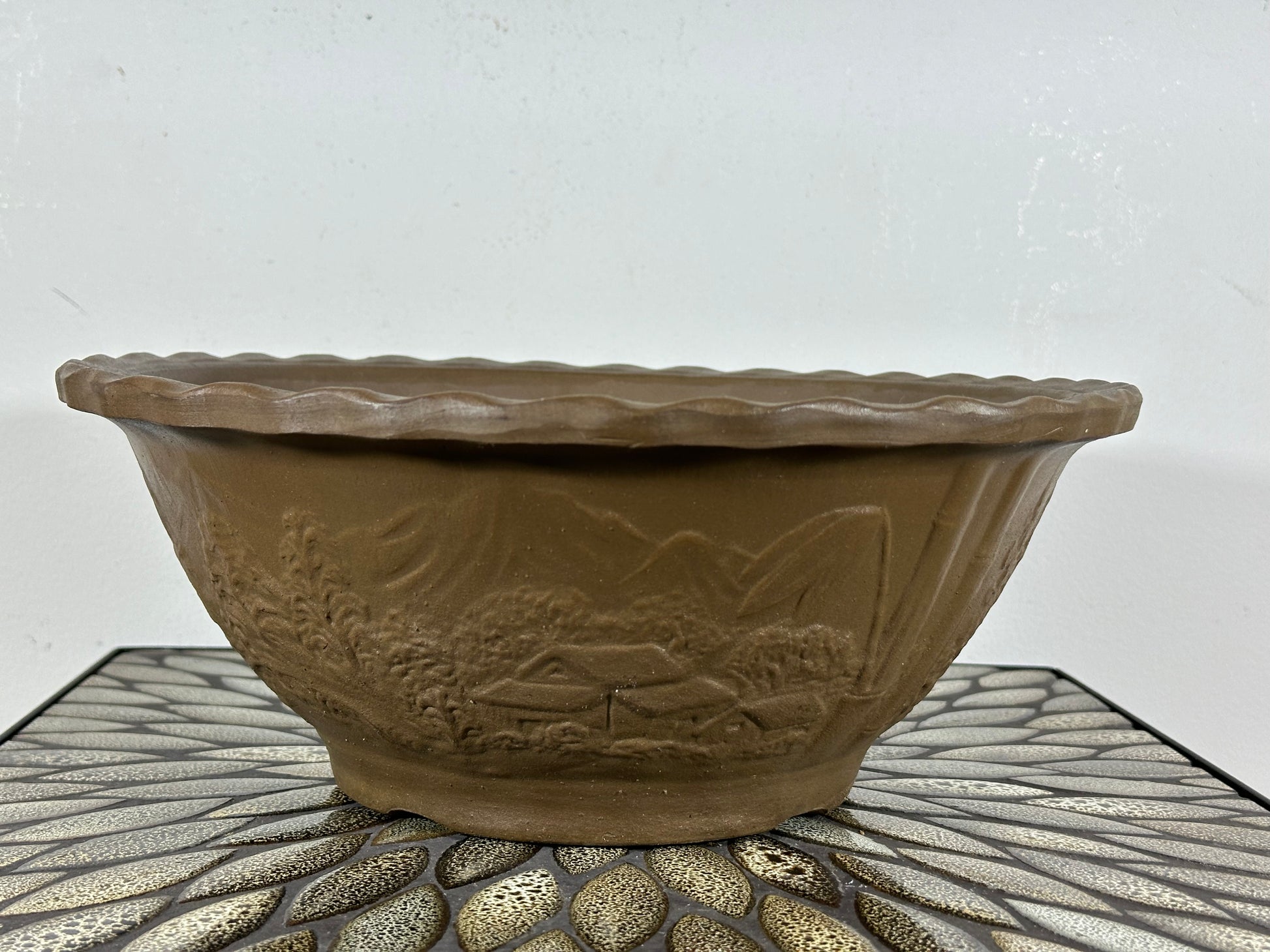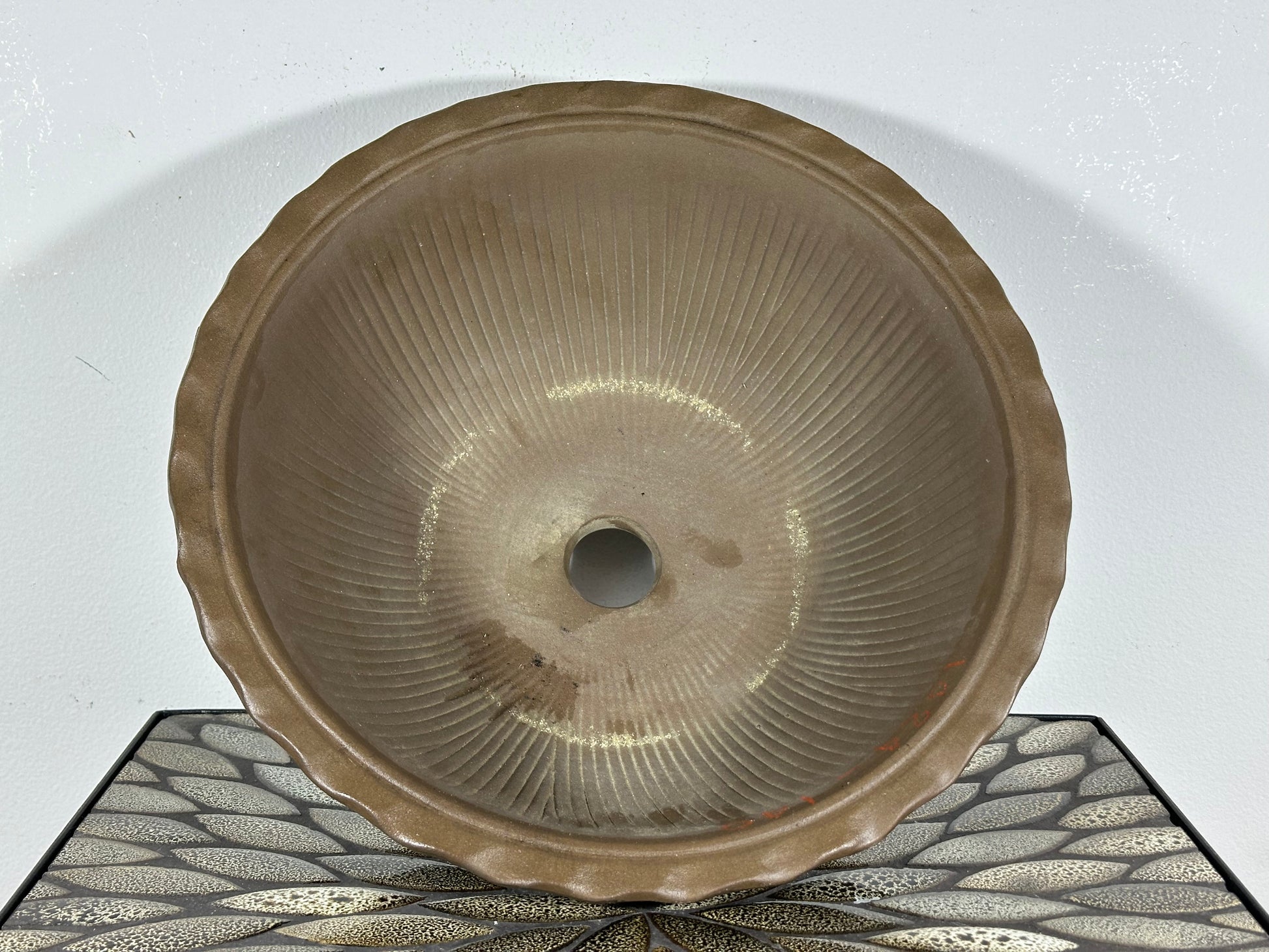 Preowned Japanese Tokoname Unglazed Round Bonsai Pot - 12.5” By 5”