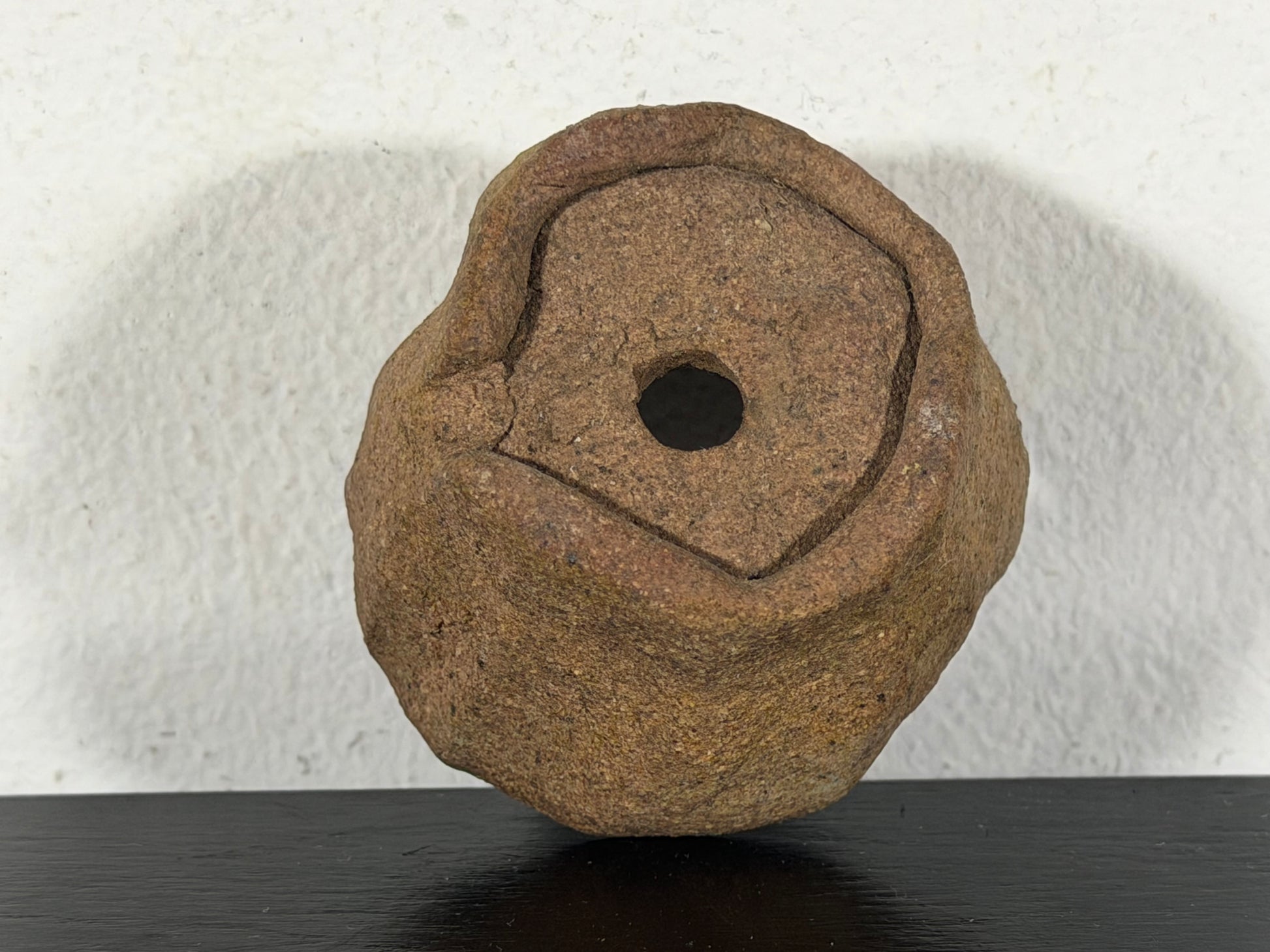 Preowned Japanese Tokoname Unglazed Round Bonsai Pot has Stamp - 2” By 1 1/8”