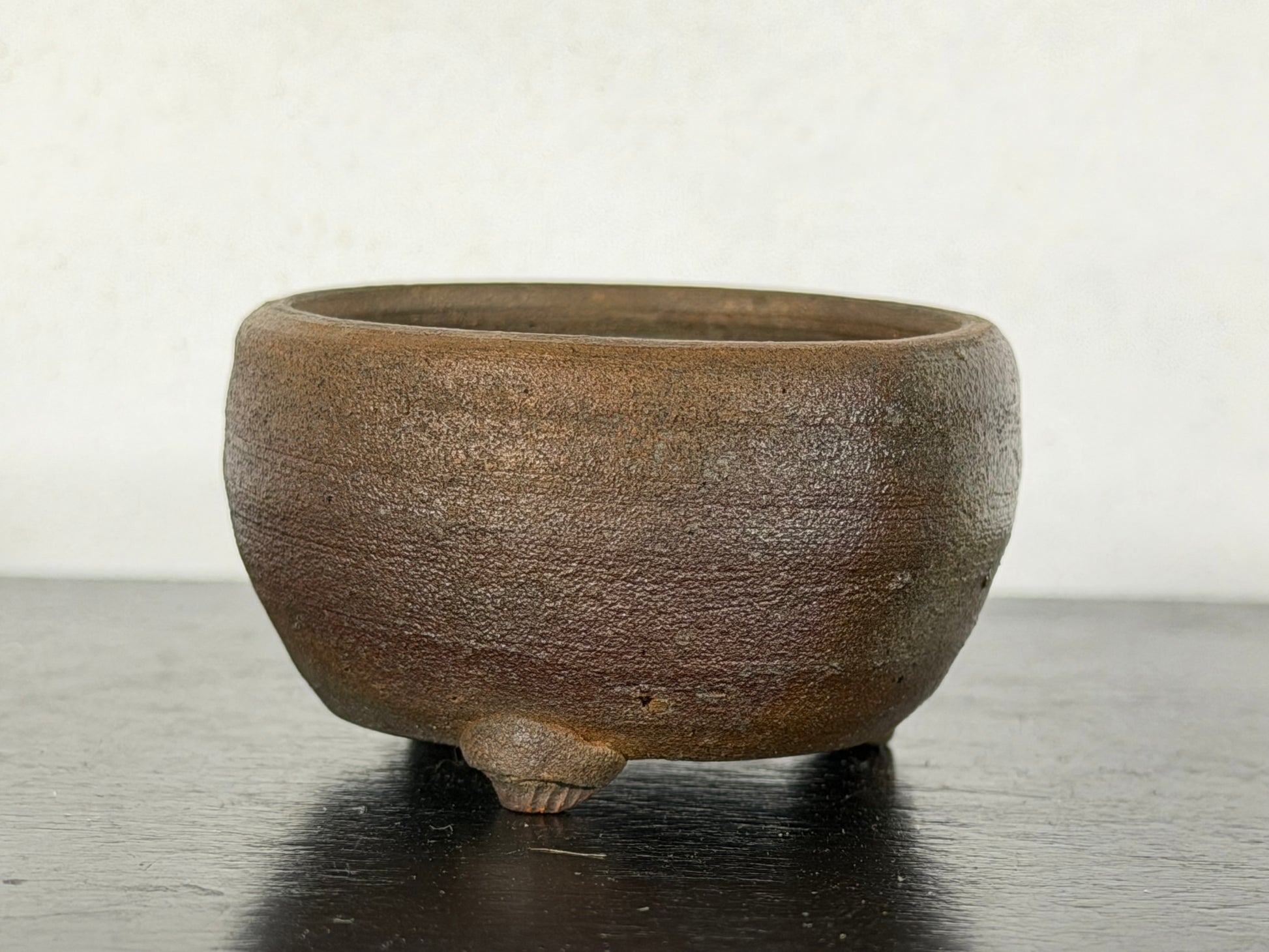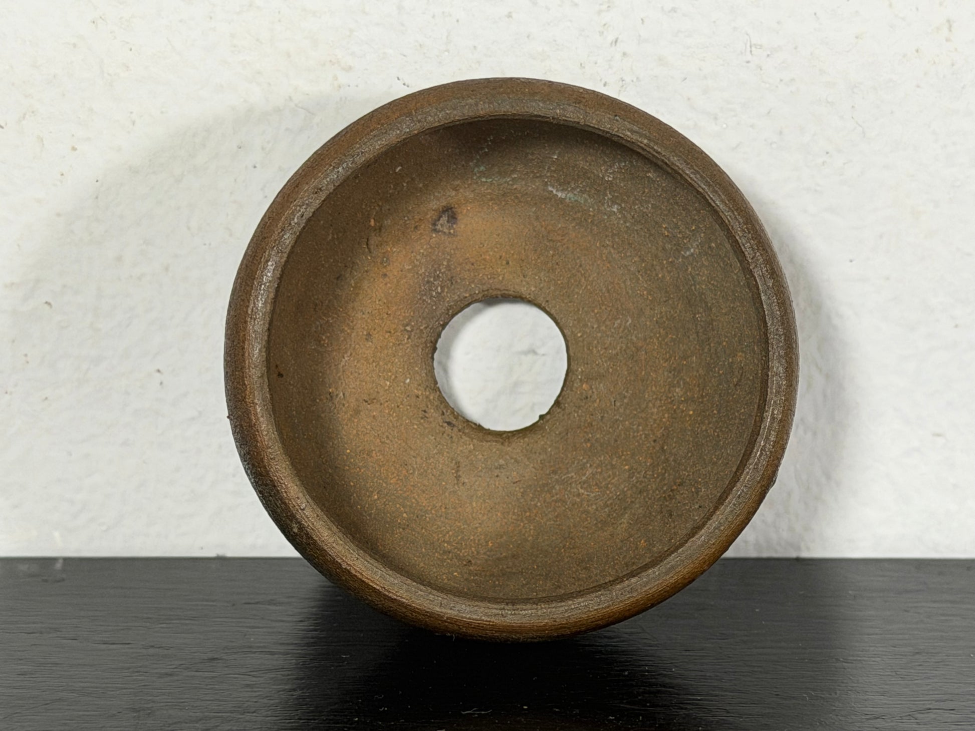 Preowned Japanese Tokoname Unglazed Round Bonsai Pot With Stamp
