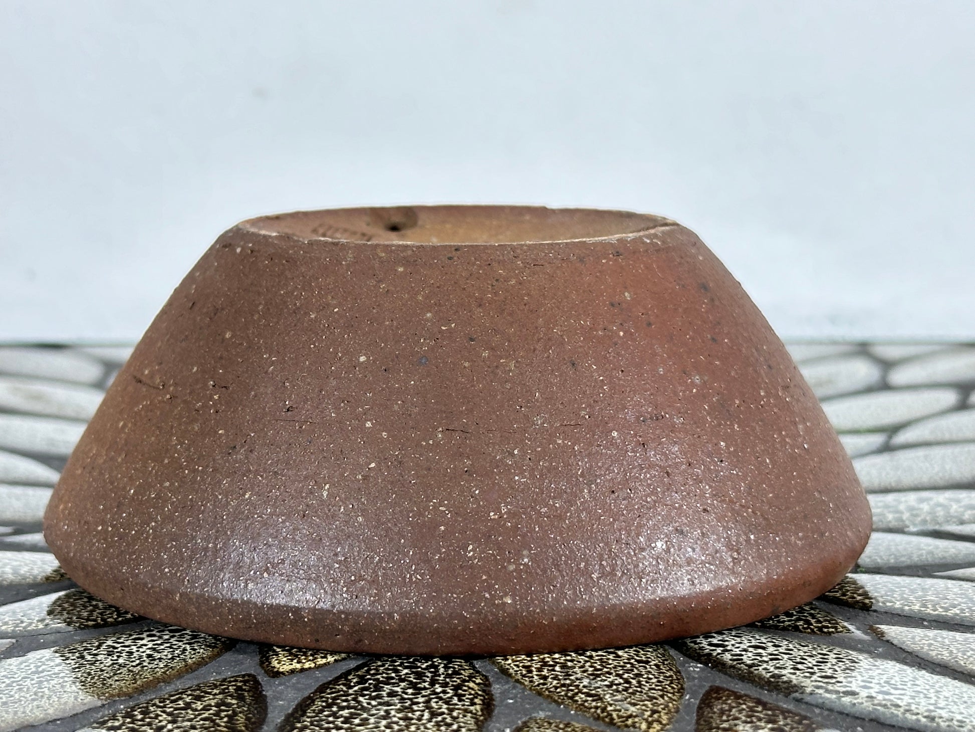 Preowned Japanese Tokoname Unglazed Round Bonsai Pot with Stamps