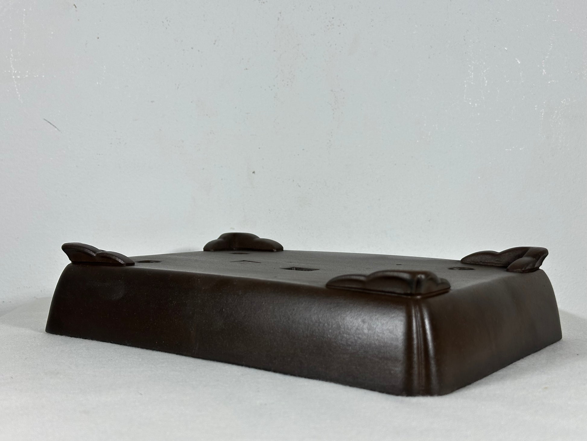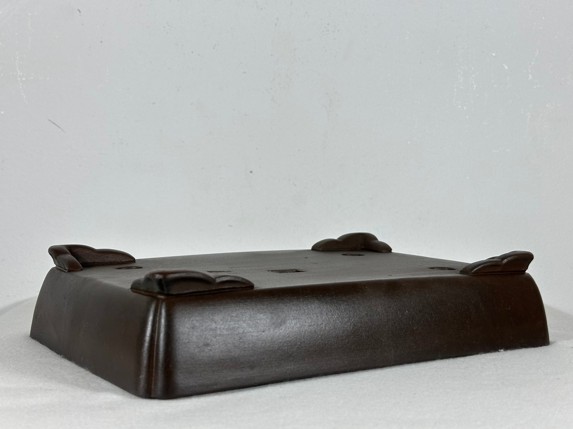 Preowned Japanese Tokoname Unglazed Shallow Rectangular Bonsai Pot with Stamp