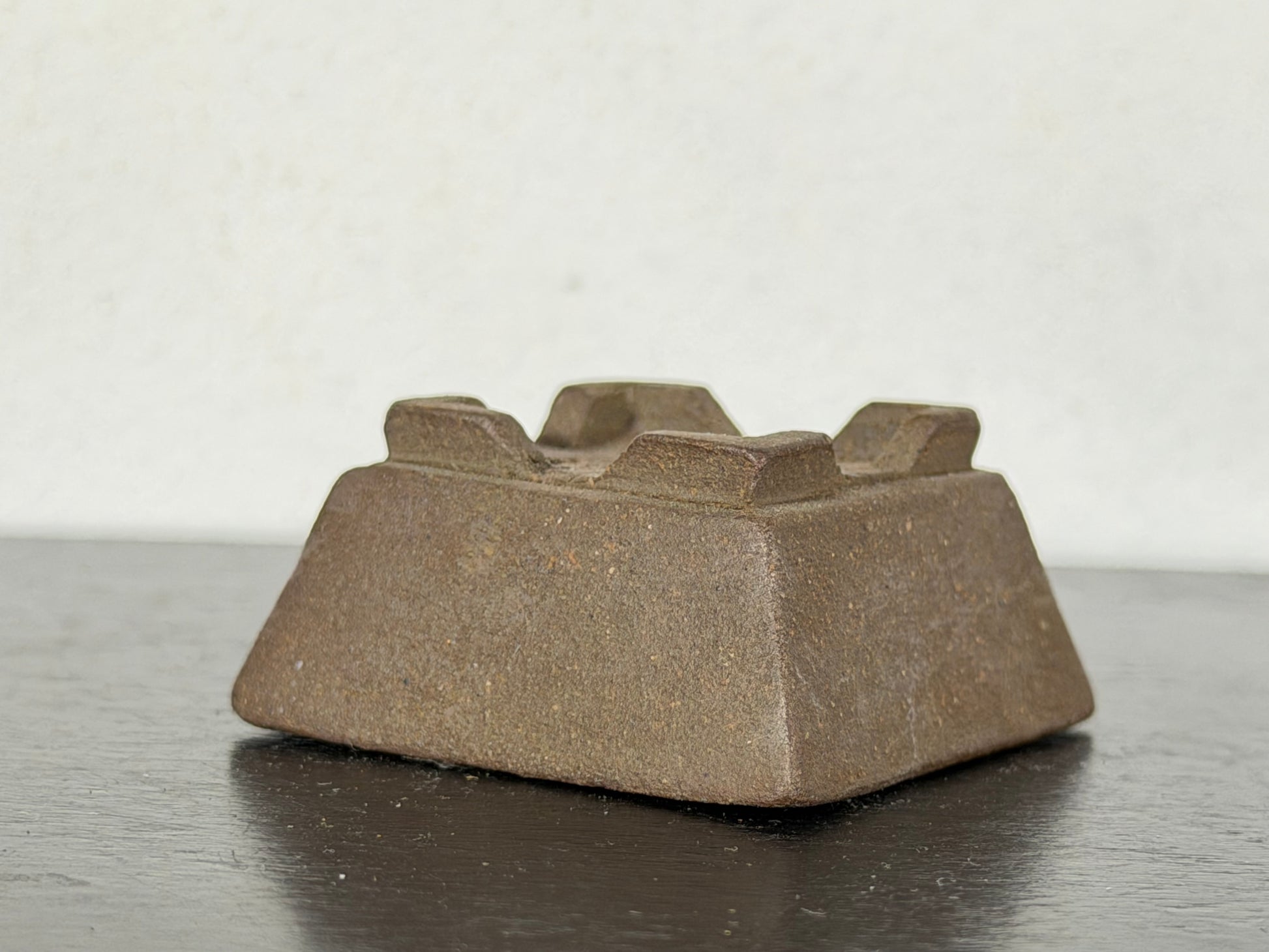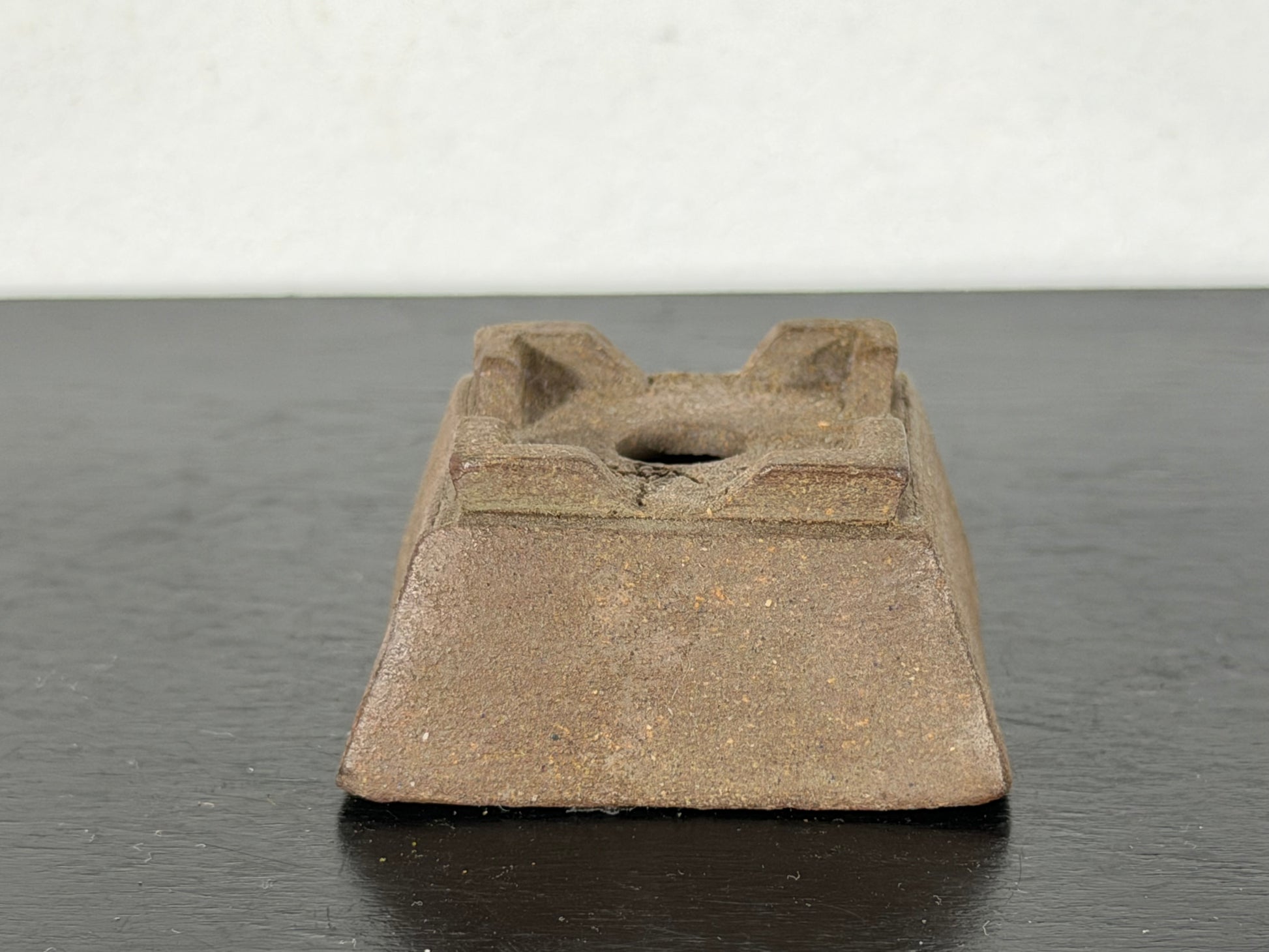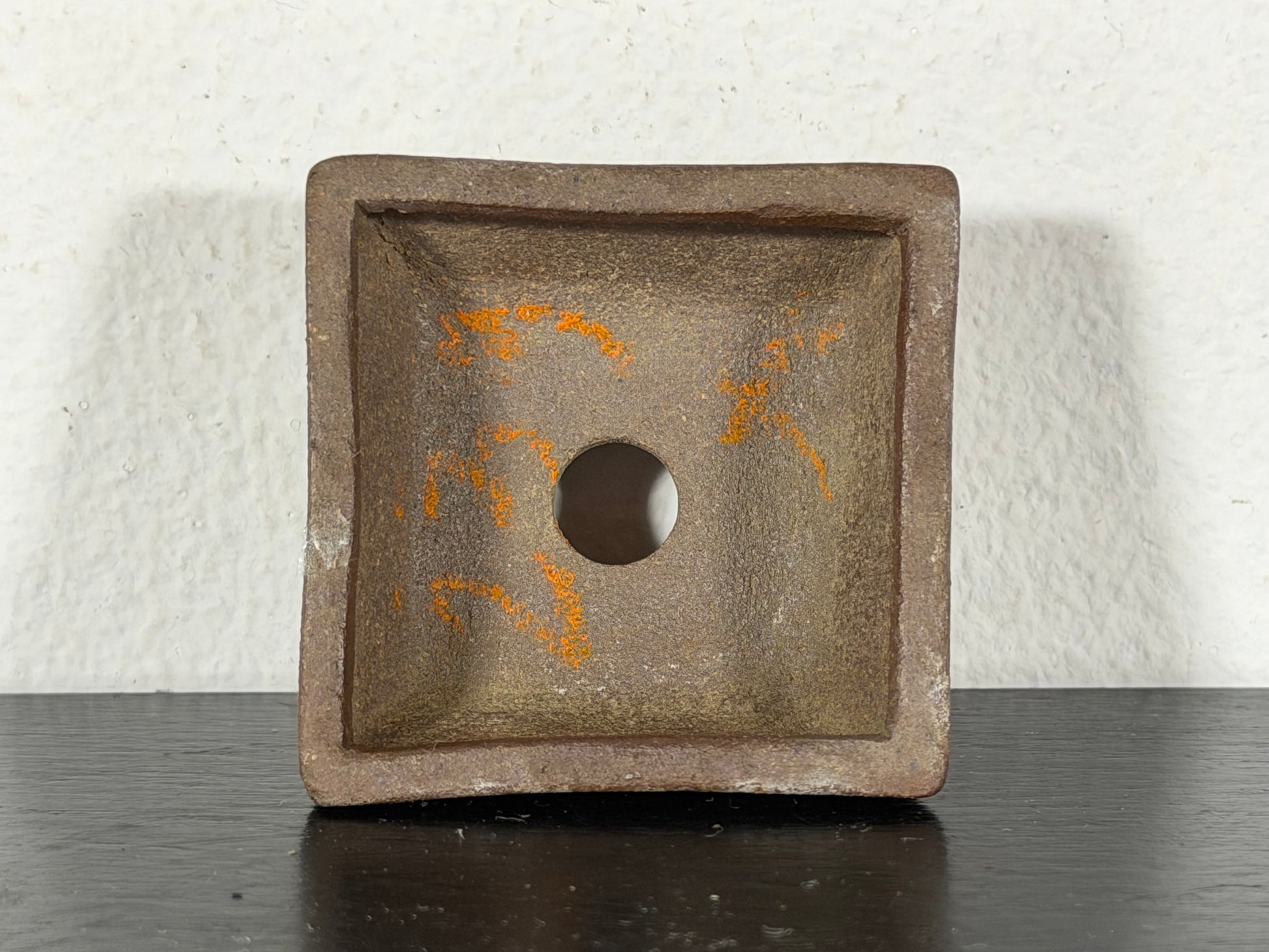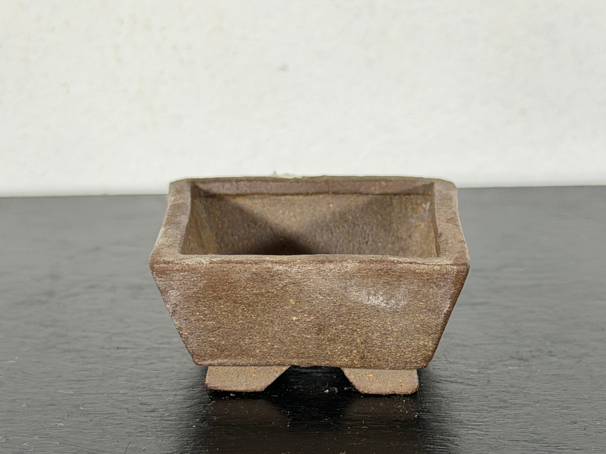 Preowned Japanese Tokoname Unglazed Square Bonsai Pot With Stamp - 1 5/8” By 0.75”
