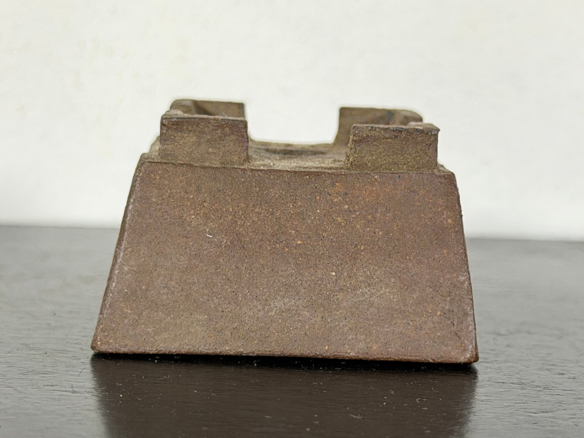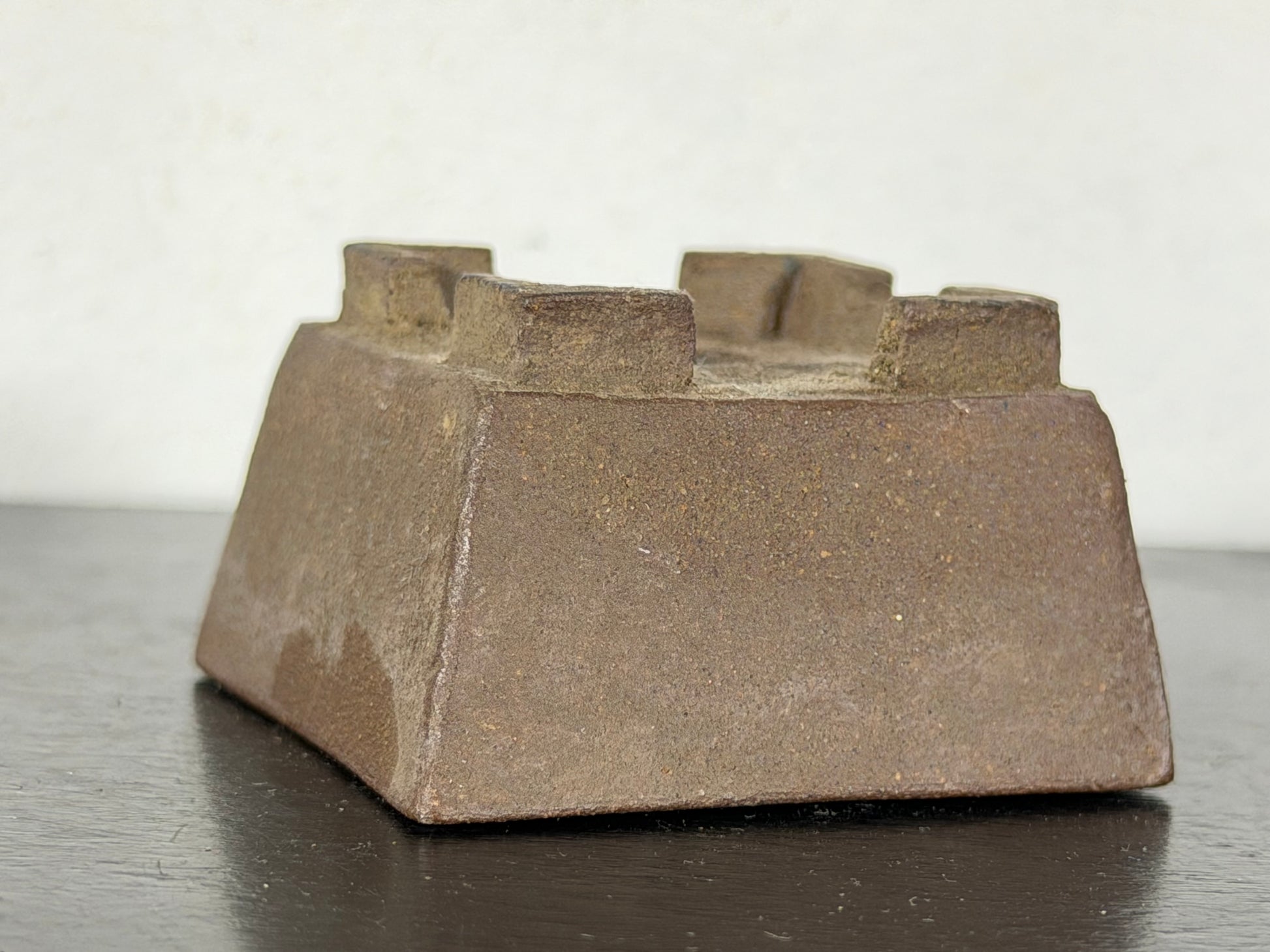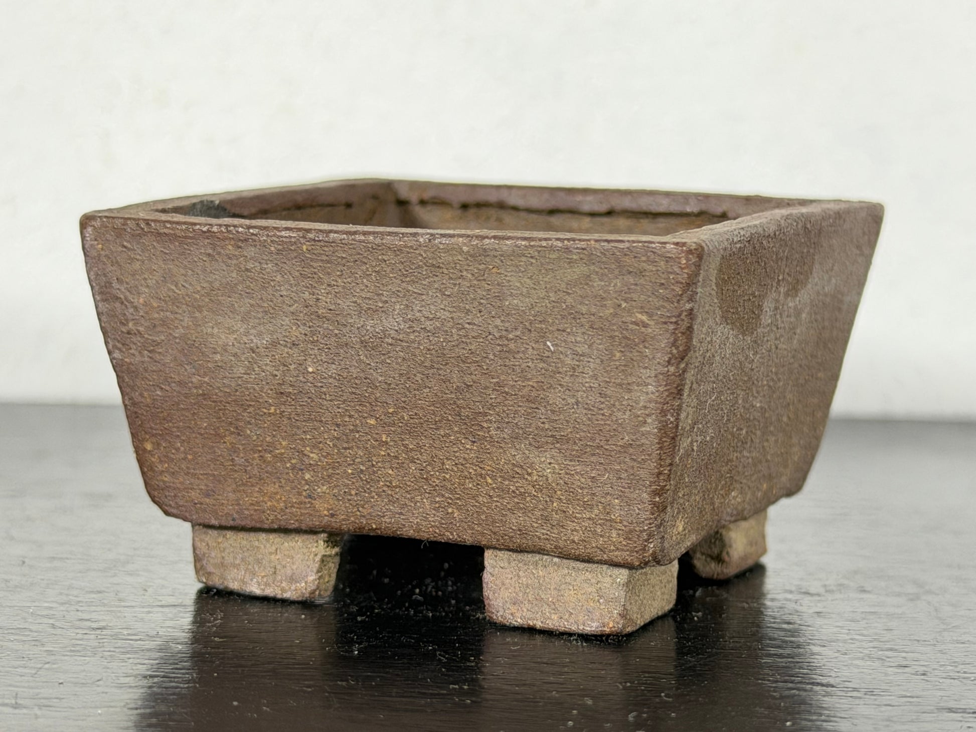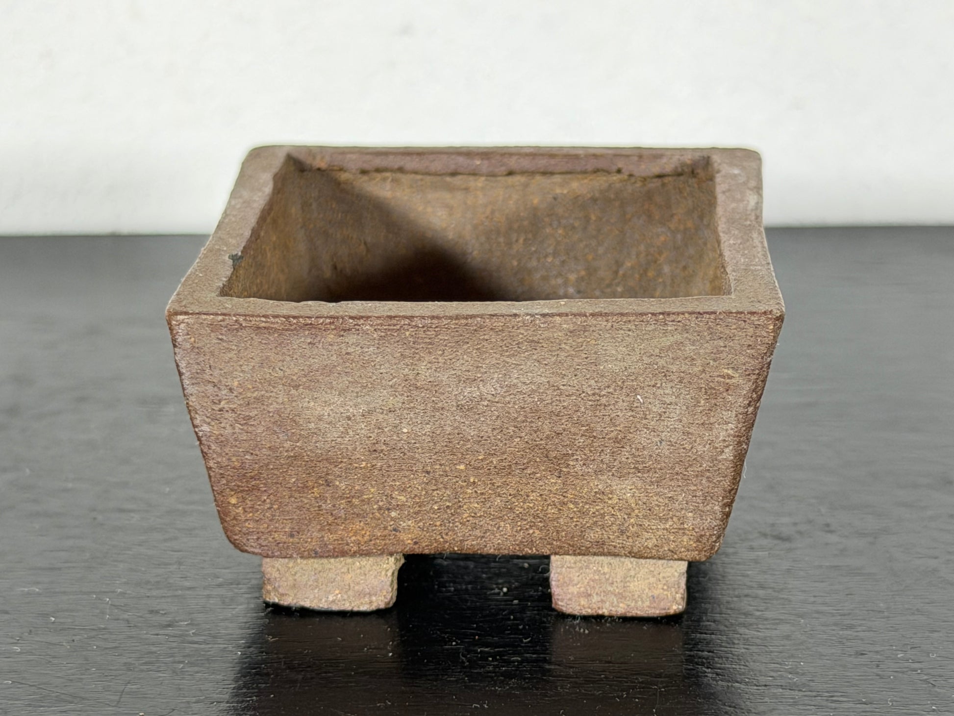 Preowned Japanese Tokoname Unglazed Square Bonsai Pot With Stamp - 1.75” By 1”