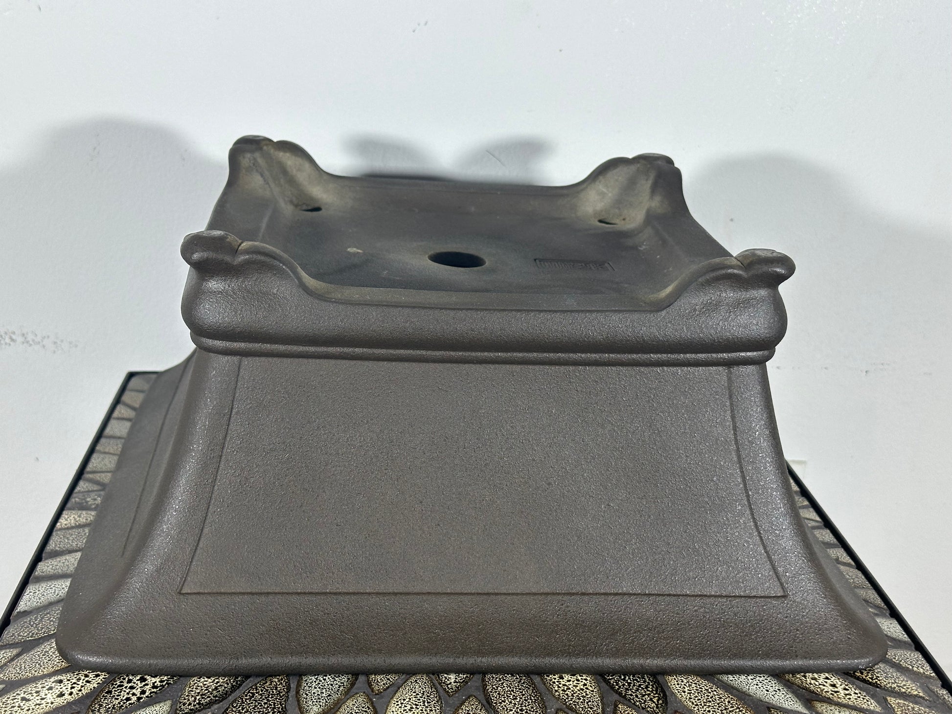 Preowned Japanese Tokoname Unglazed Square Semi Cascade Bonsai Pot Yamaaki - 14.25” By 6.75”