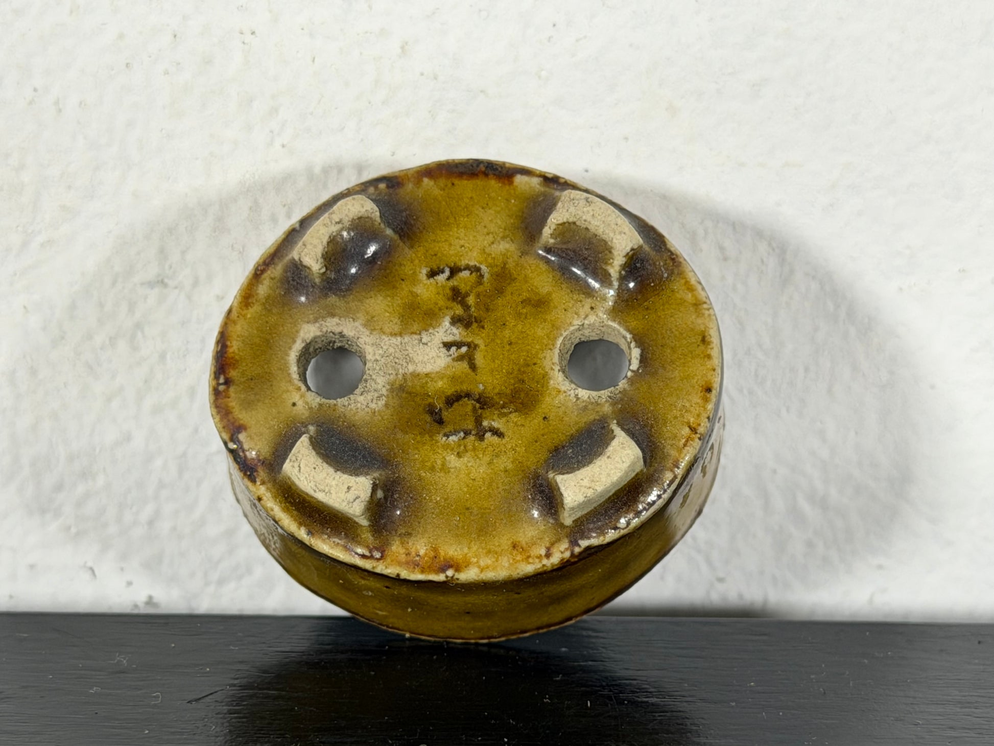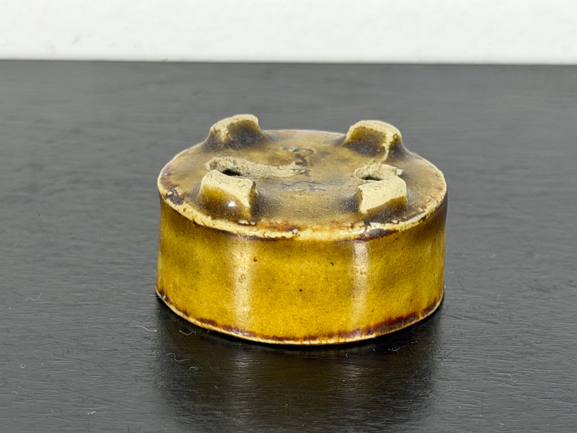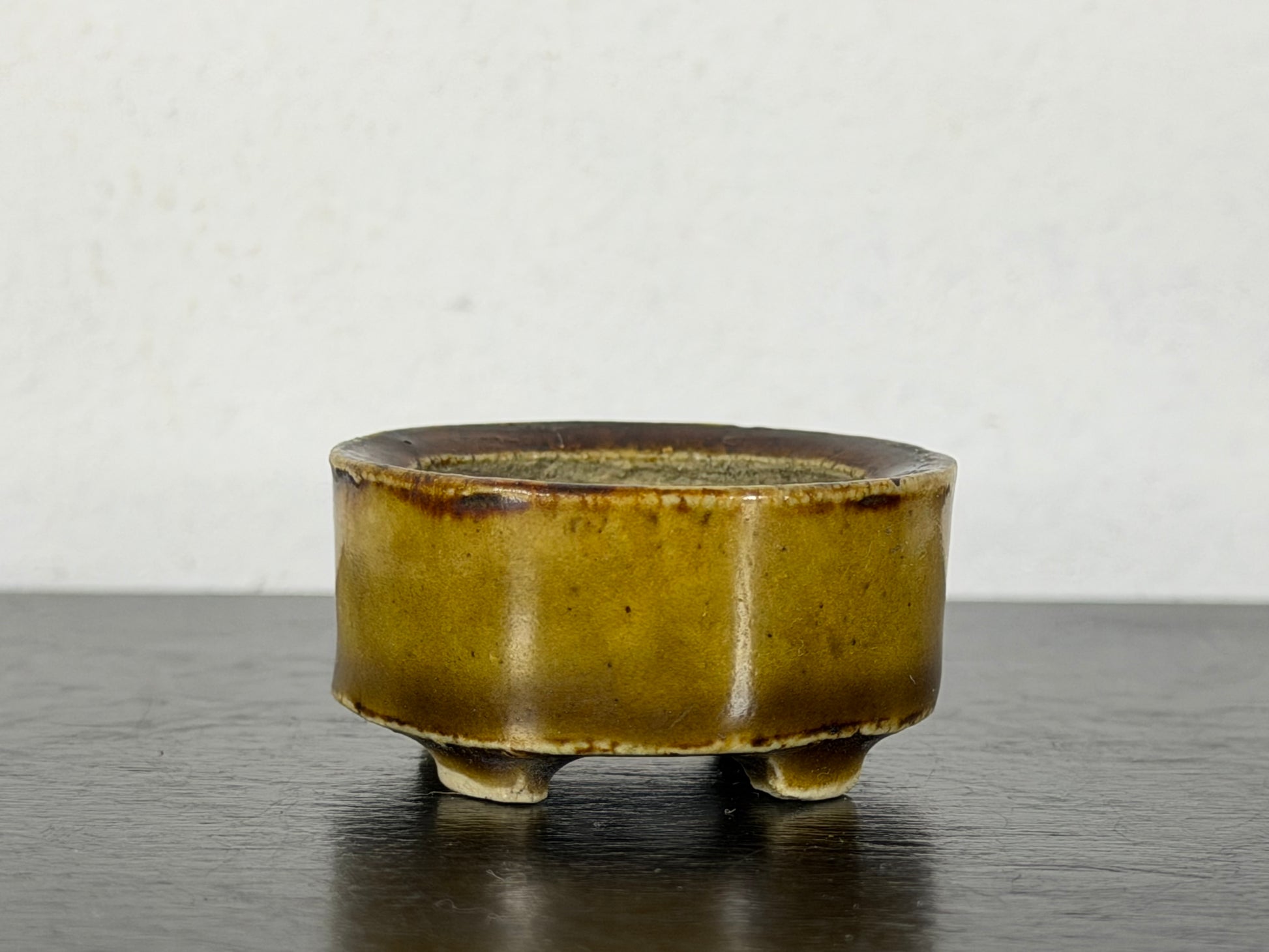 Preowned Vintage Japanese Tokoname Glazed Oval Bonsai Pot Mutou - 1.5” By 1.25”