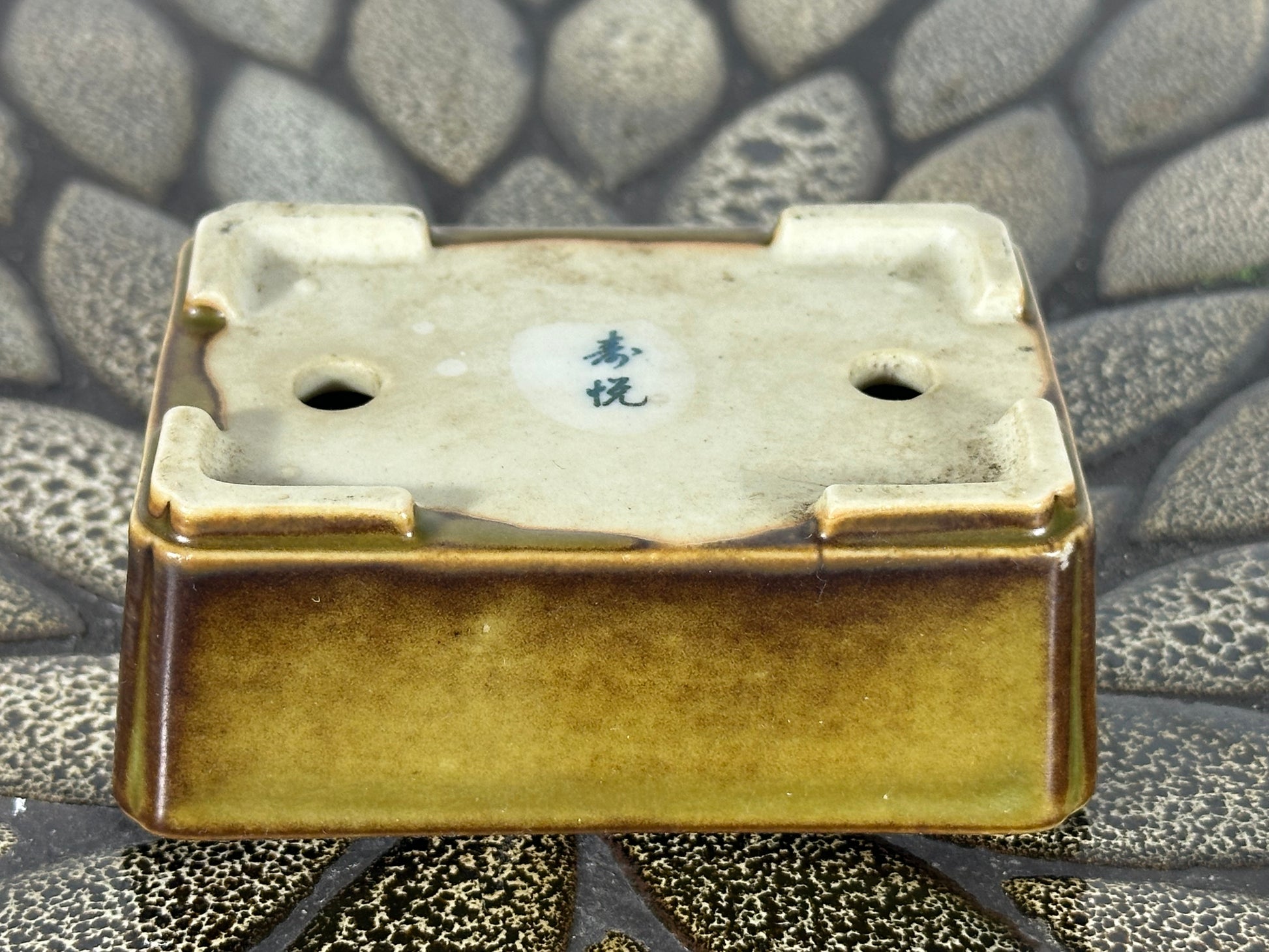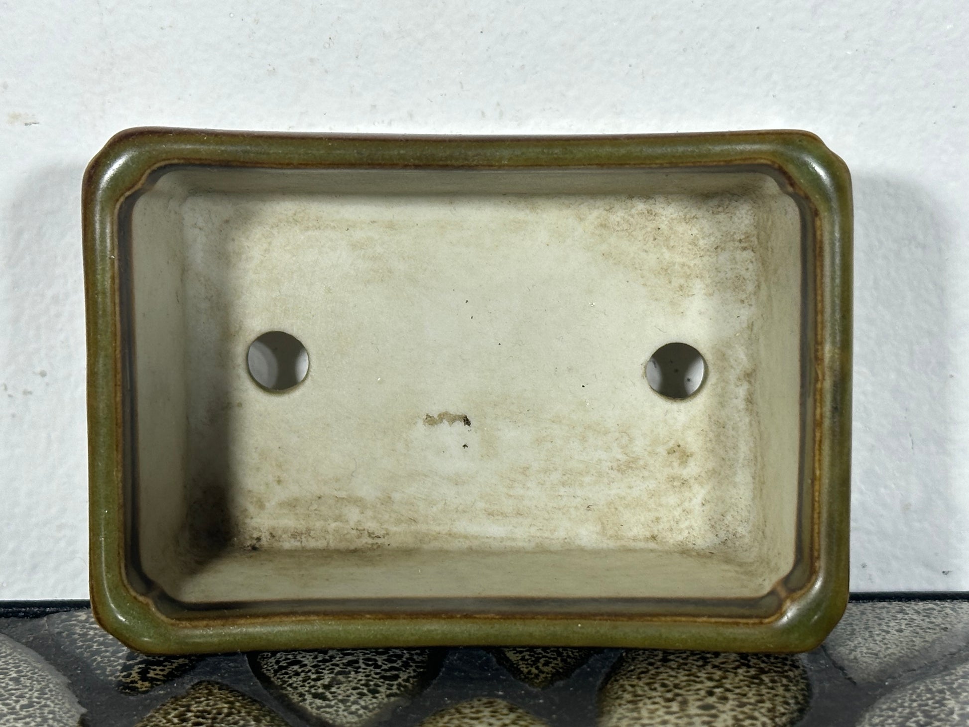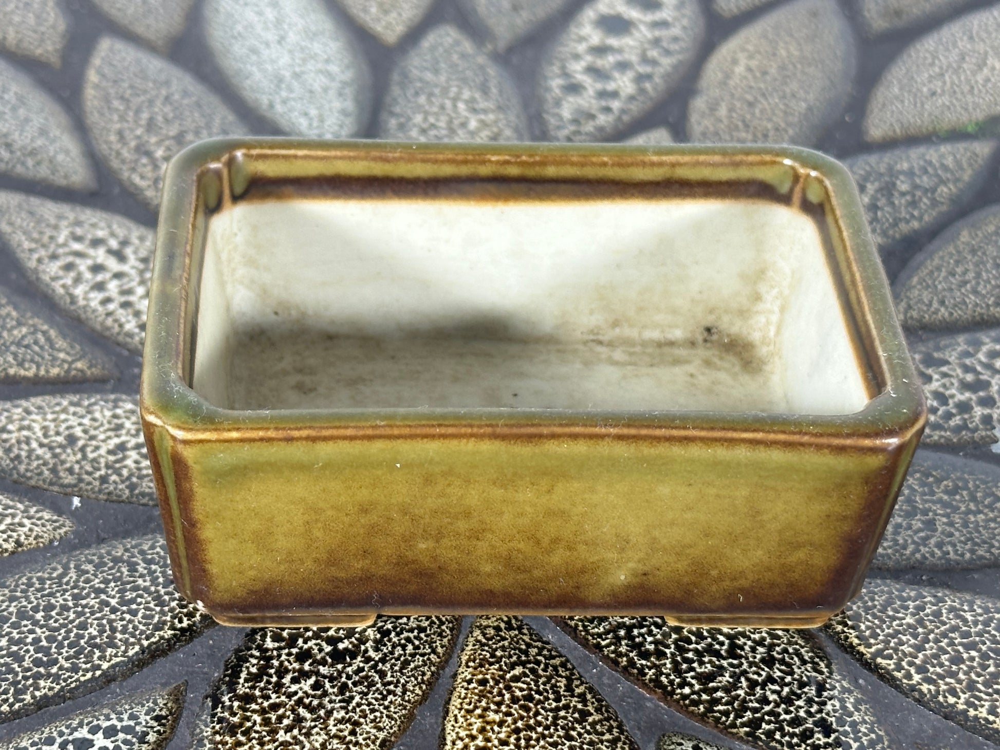 Preowned Vintage Japanese Tokoname Glazed Rectangular Bonsai Pot Jyuetu - 3 3/8” By 2.25”