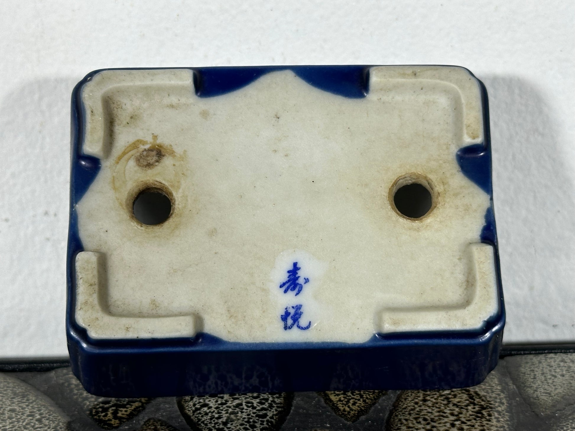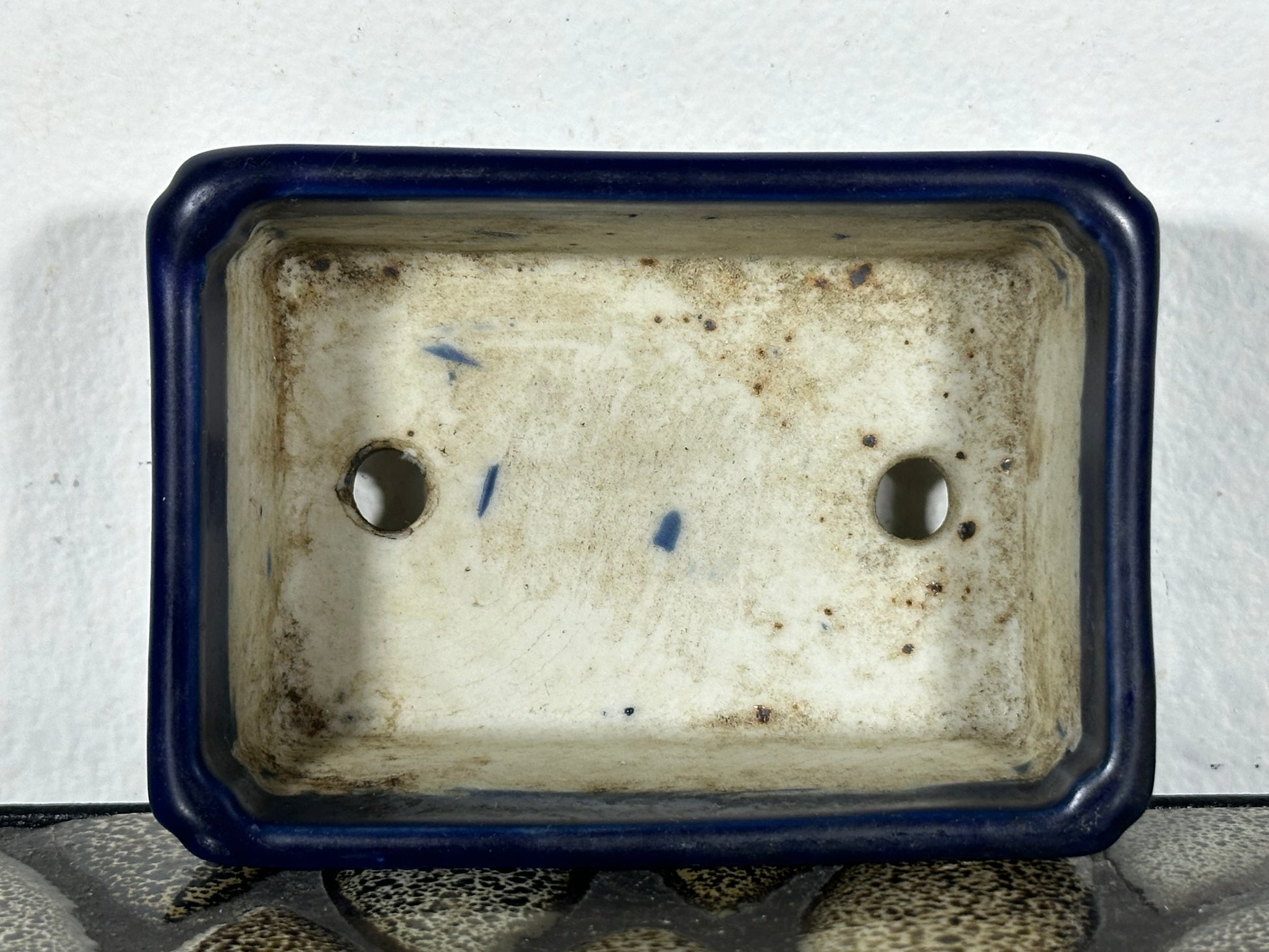 Preowned Vintage Japanese Tokoname Glazed Rectangular Bonsai Pot Jyuetu - 3.25 By 2.25”