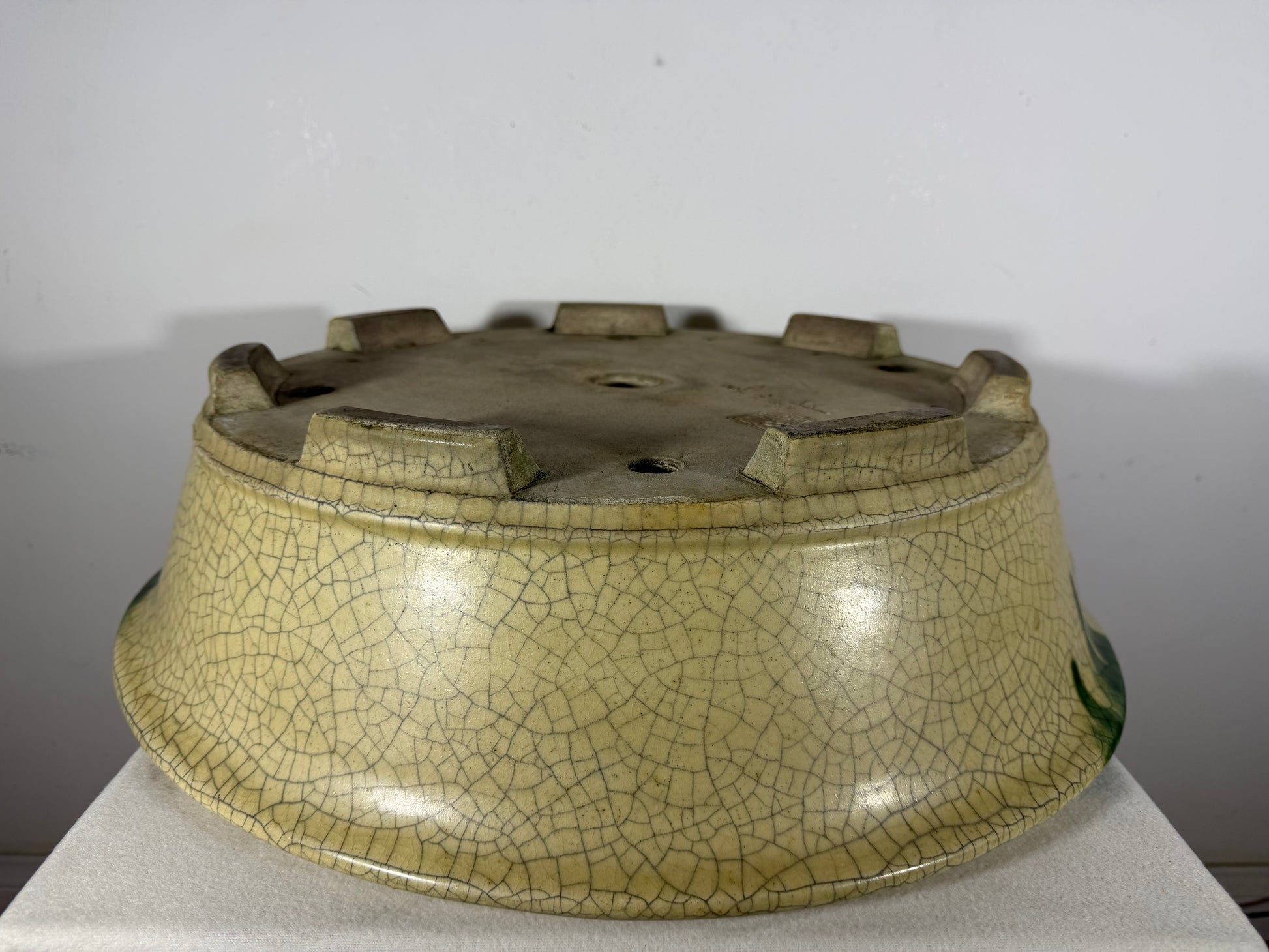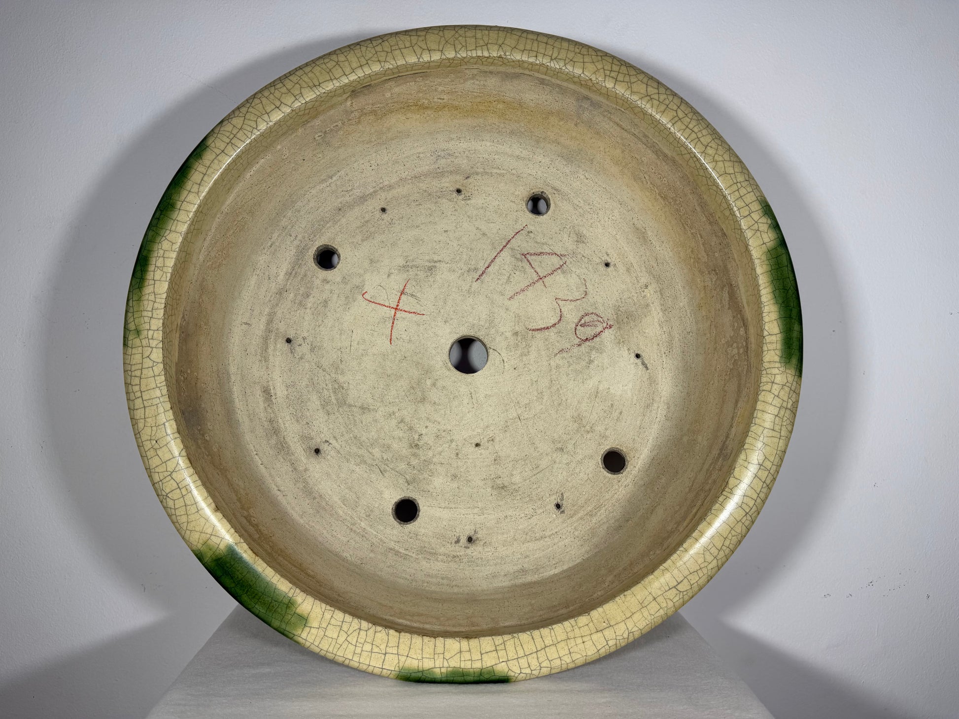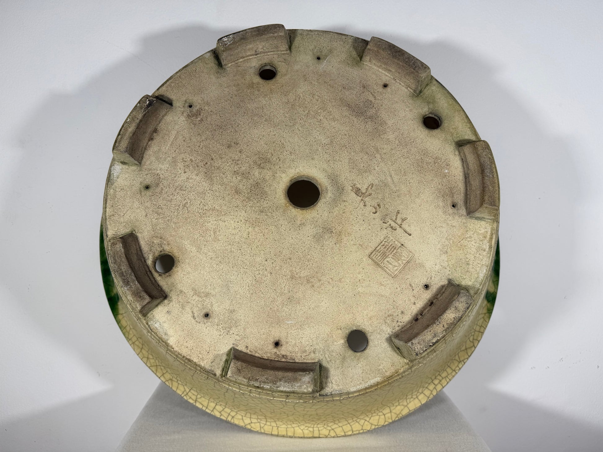 Preowned Vintage Japanese Tokoname Glazed Round Bonsai Pot Mazan Terahata - 20.75” By 6.25”