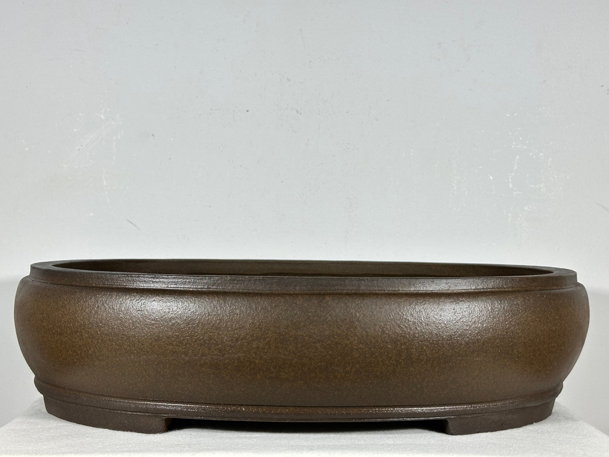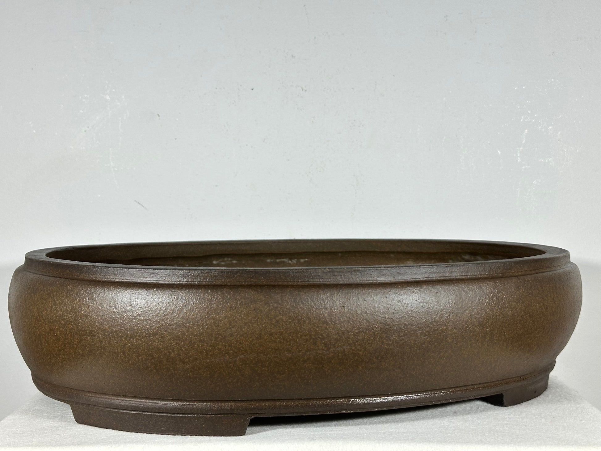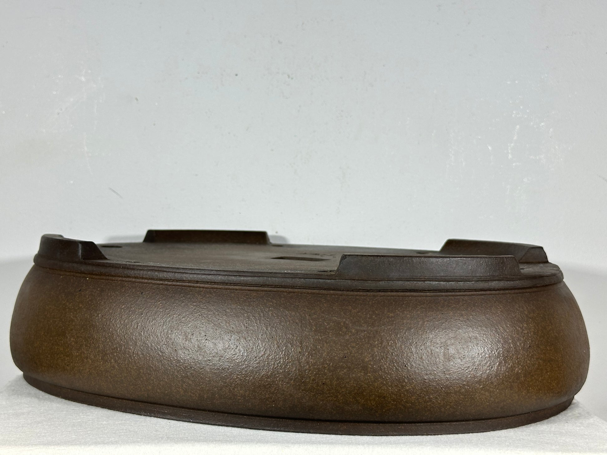 Preowned Vintage Japanese Tokoname Unglazed Oval Bonsai Pot Mazan Terahata - 18” By 15”